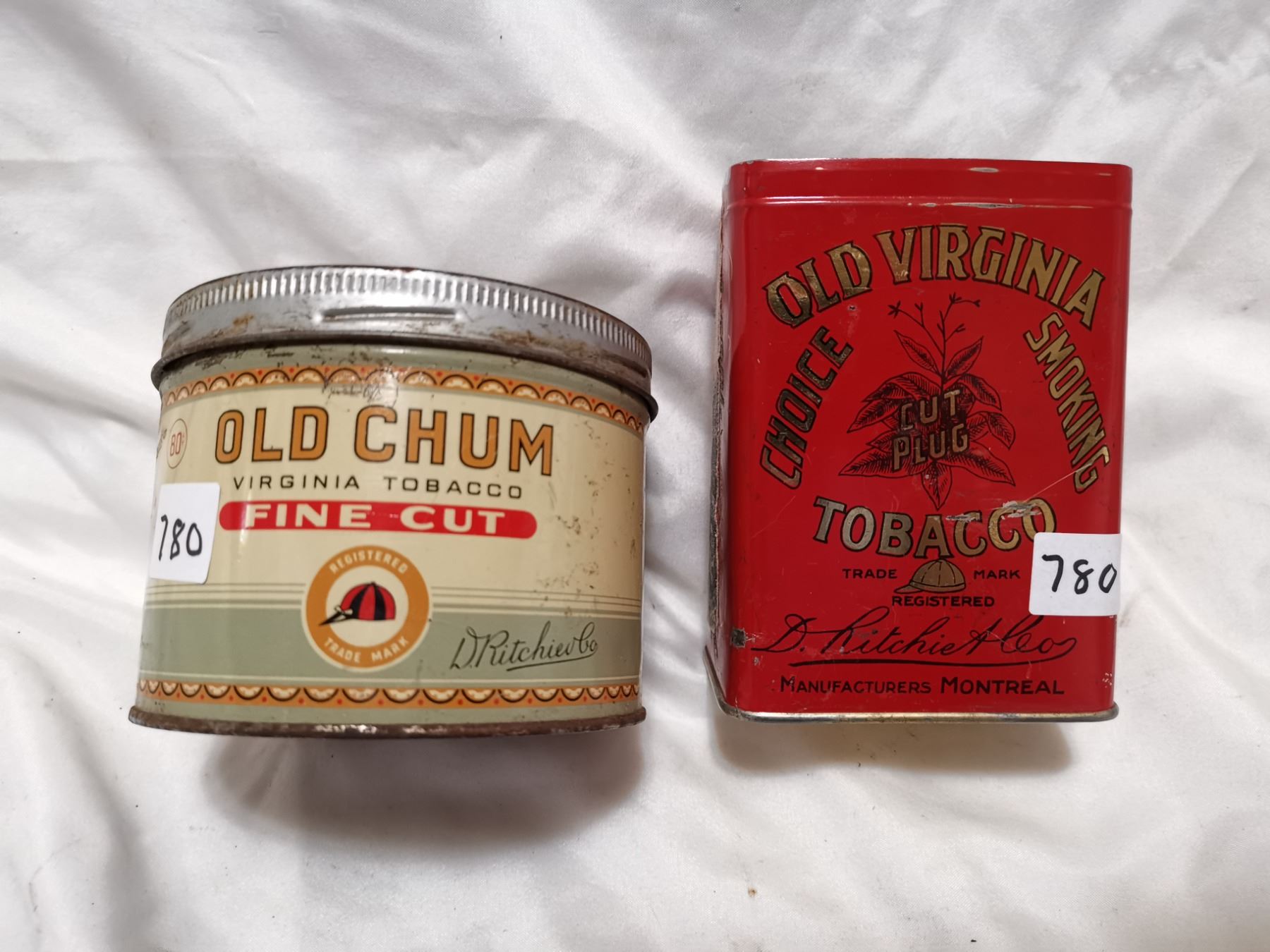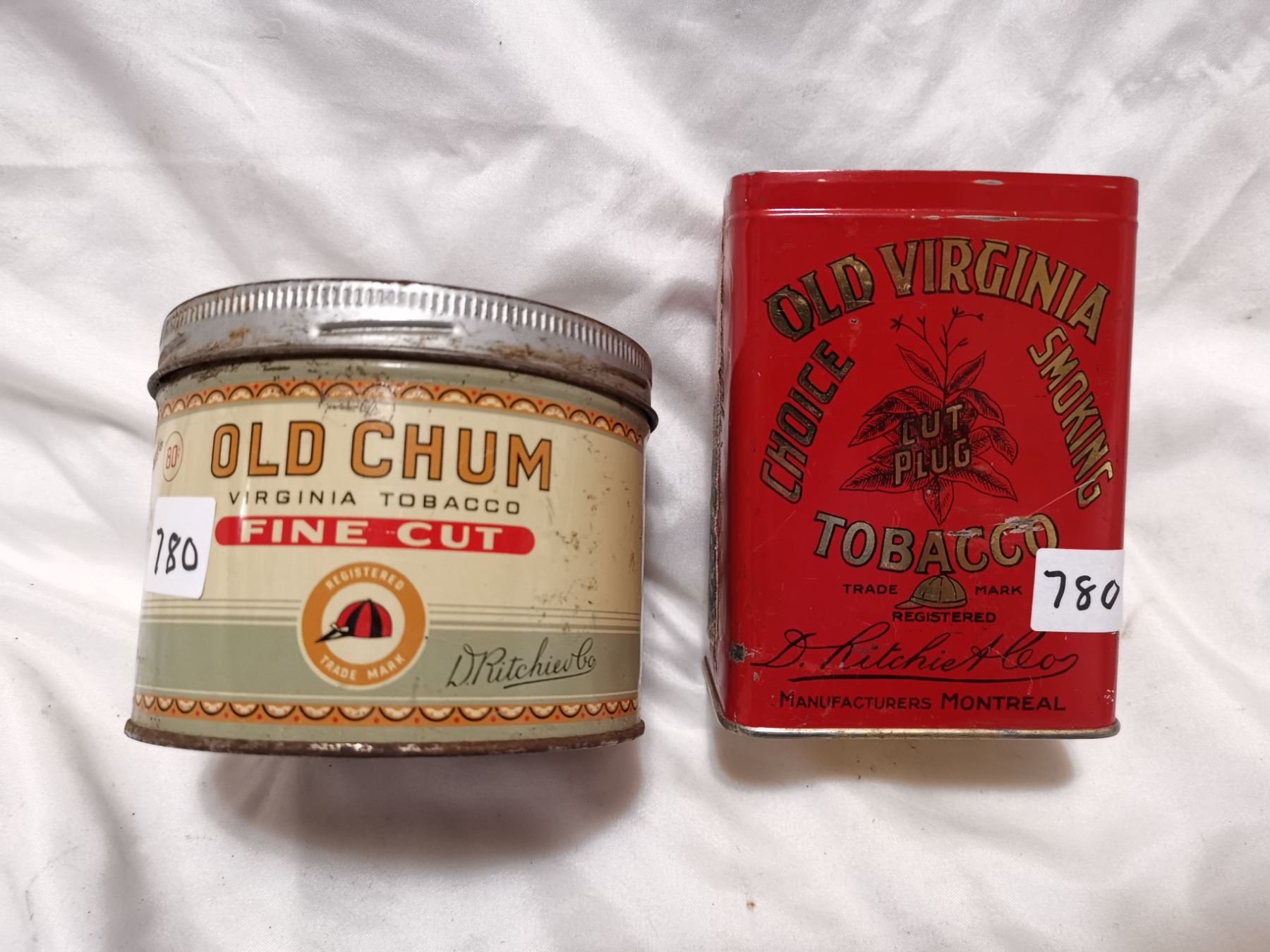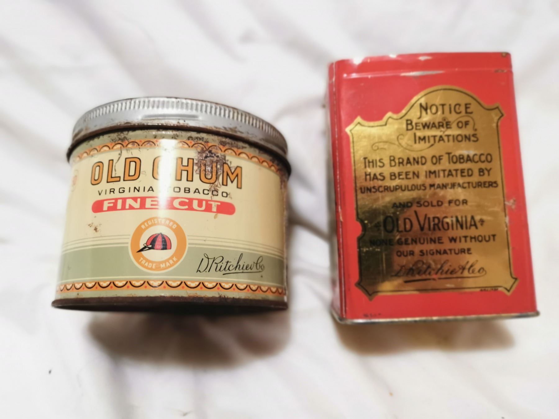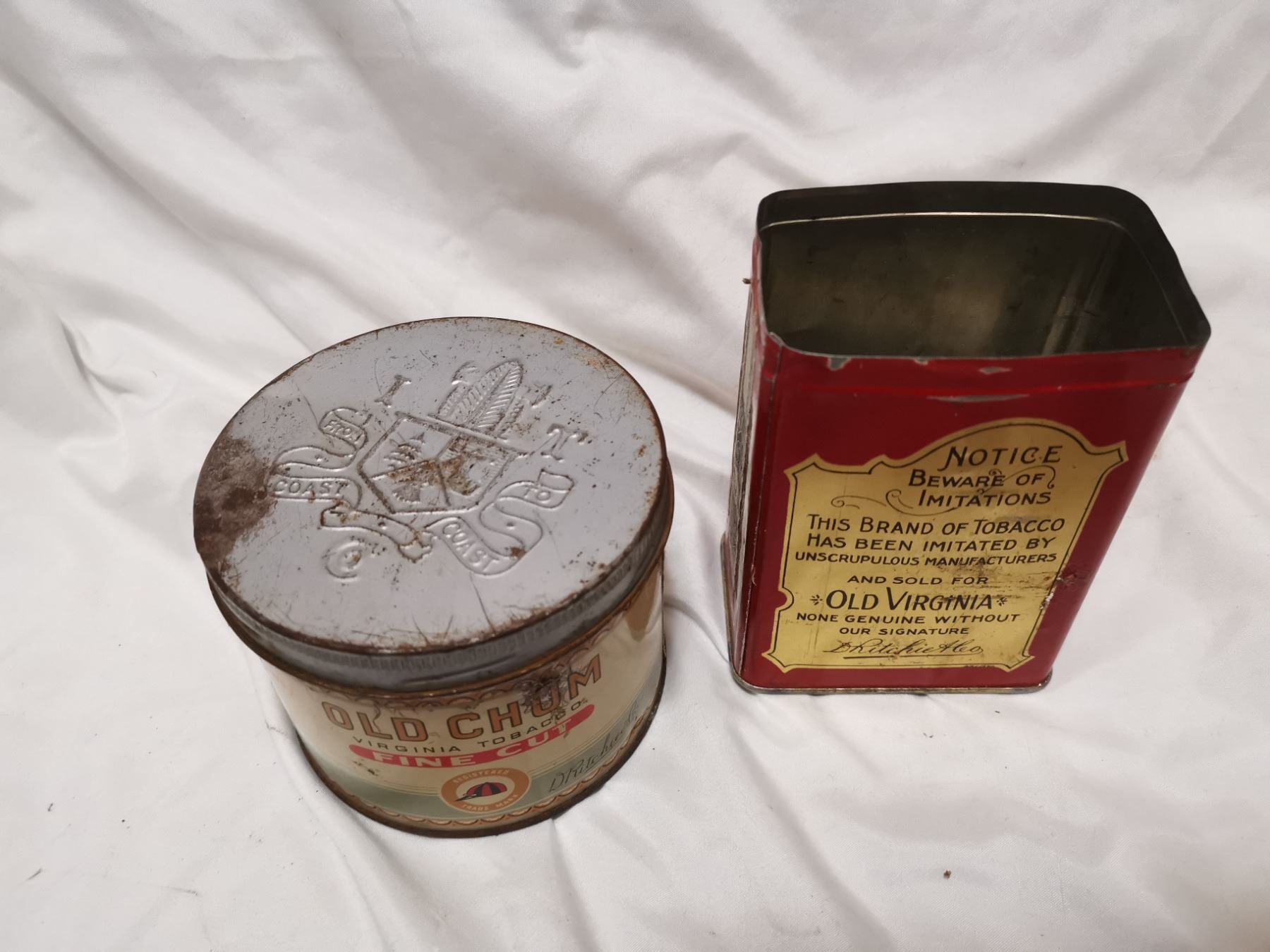 Old Chum and Old Virginia tobacco cans