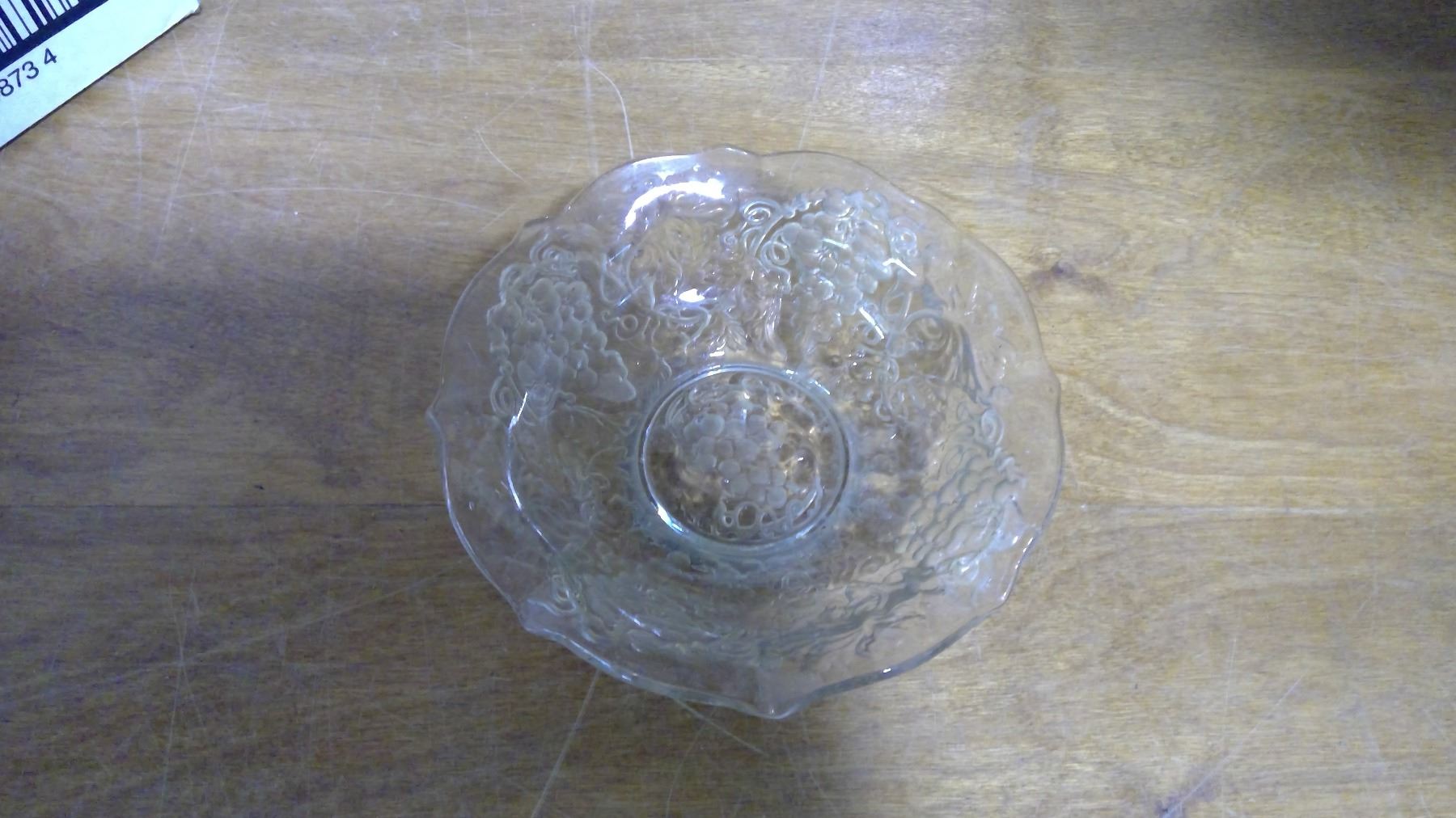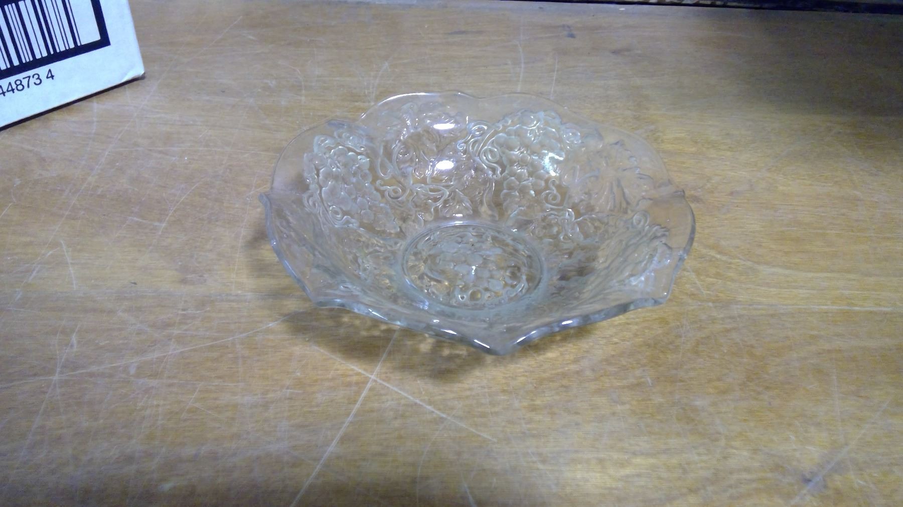 Old Clear Candy Dish With Grapes Designs