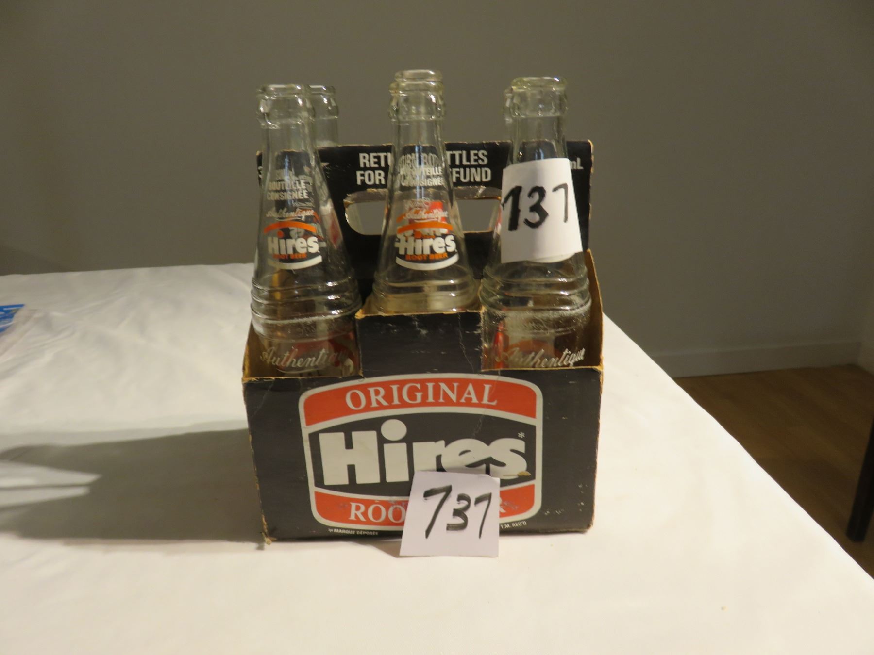 Old cartoon six pack Hires Root Beer, 4 root beer bottles, 1 Dr. Pepper, 1 Old Colony