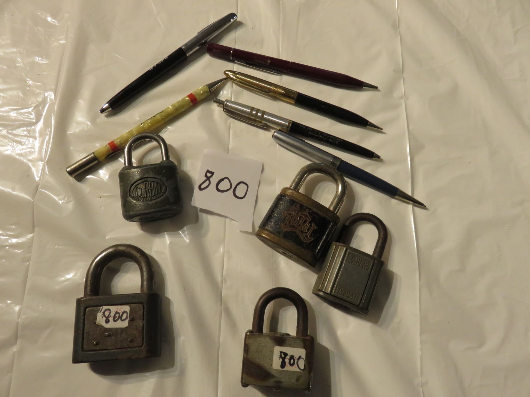 Old locks - Yale, Total, 5 disc & old pencil pens (Sheaffer etc.)