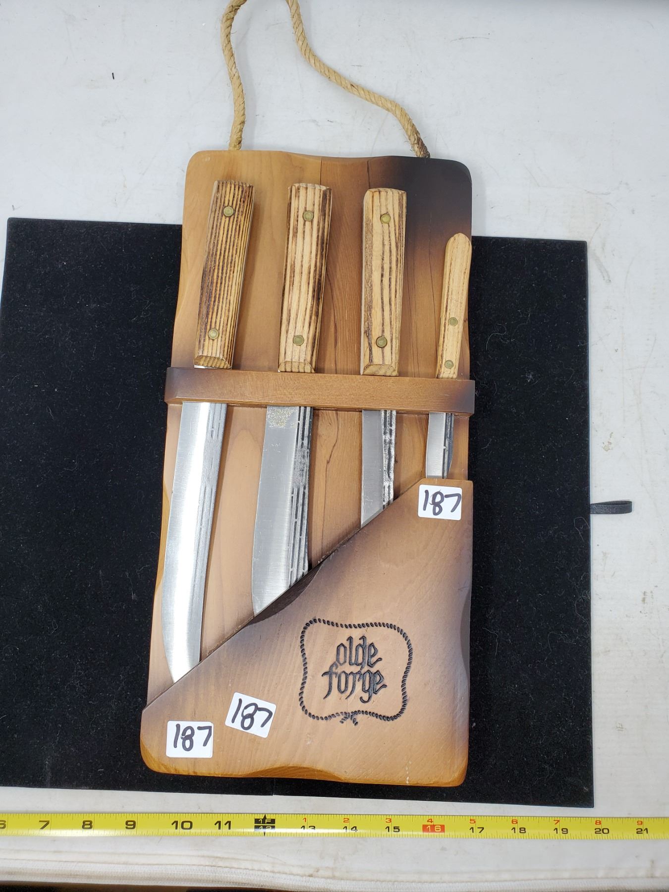 Olde Fargo Imperial Hi-carbon 4 pcs knife set & wall hanger