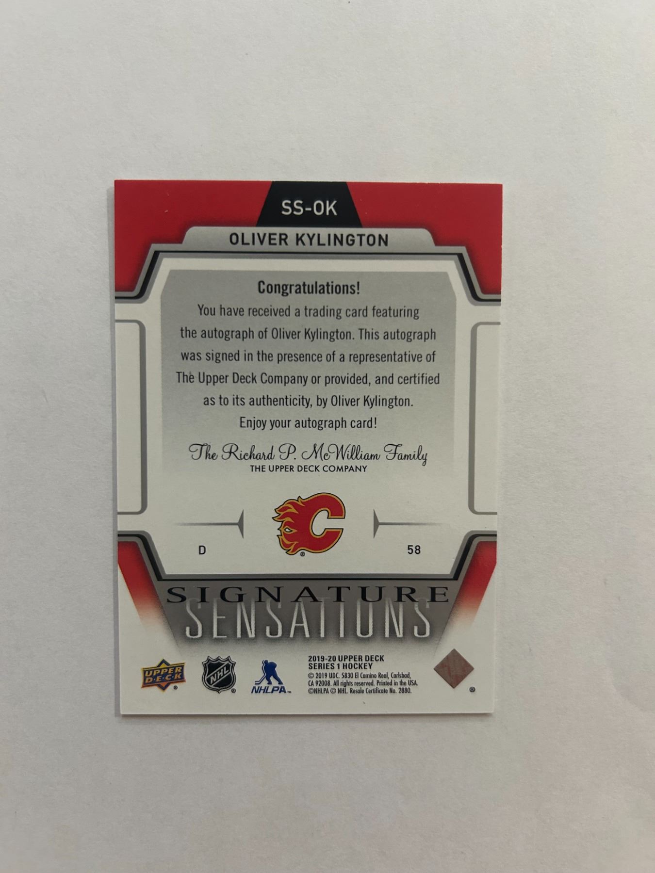 Oliver Kylington - Signature Sensations Hockey Card