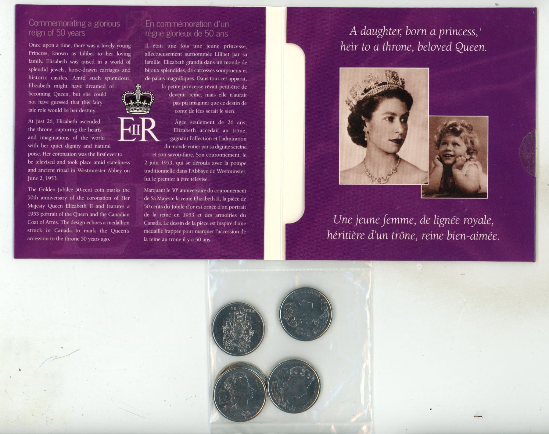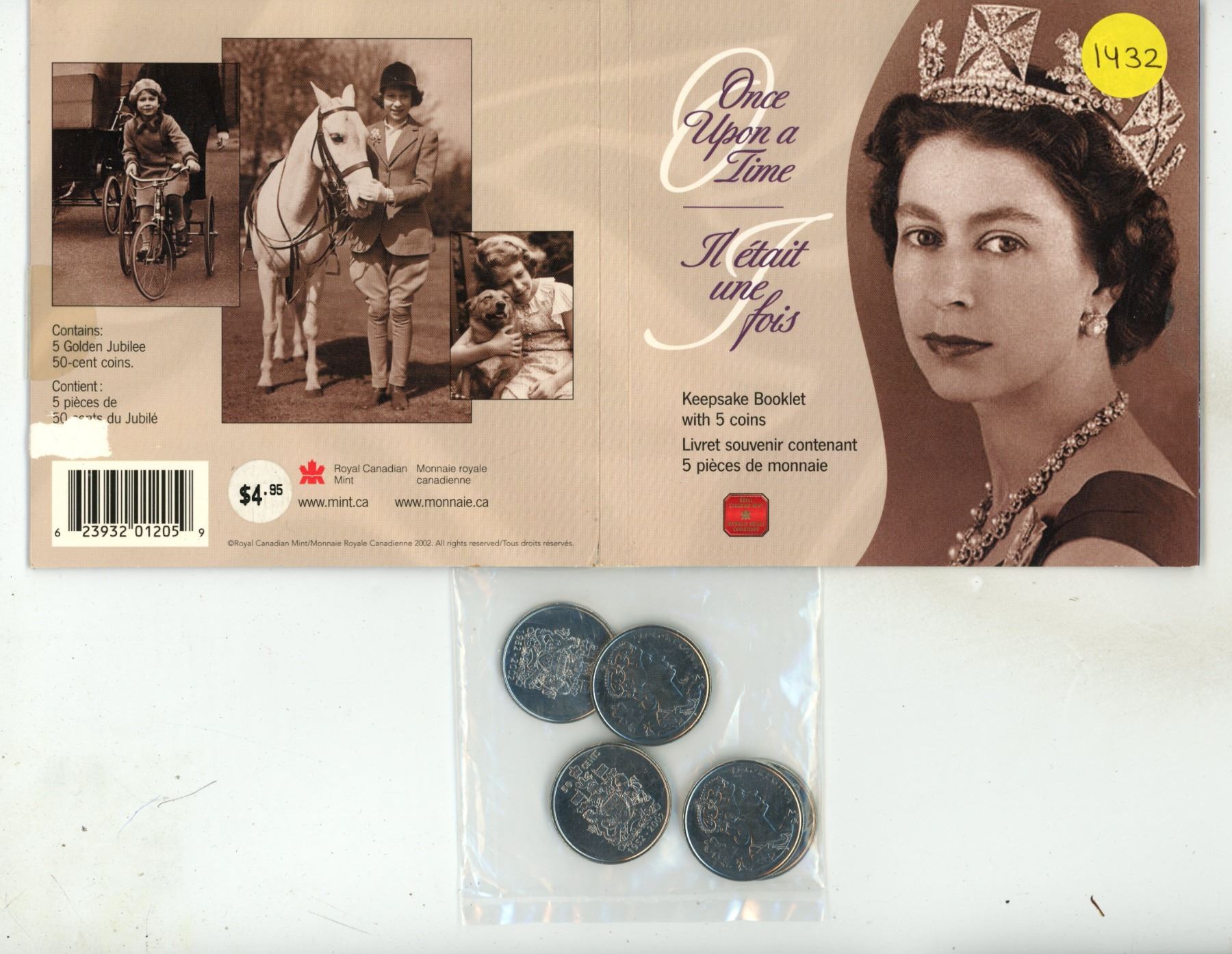Once Upon a Time. Keepsake Booklet with 5 Canadian commemorative 50 Cents that commemorate the 50th Anniversary of Queen Elizabeth.