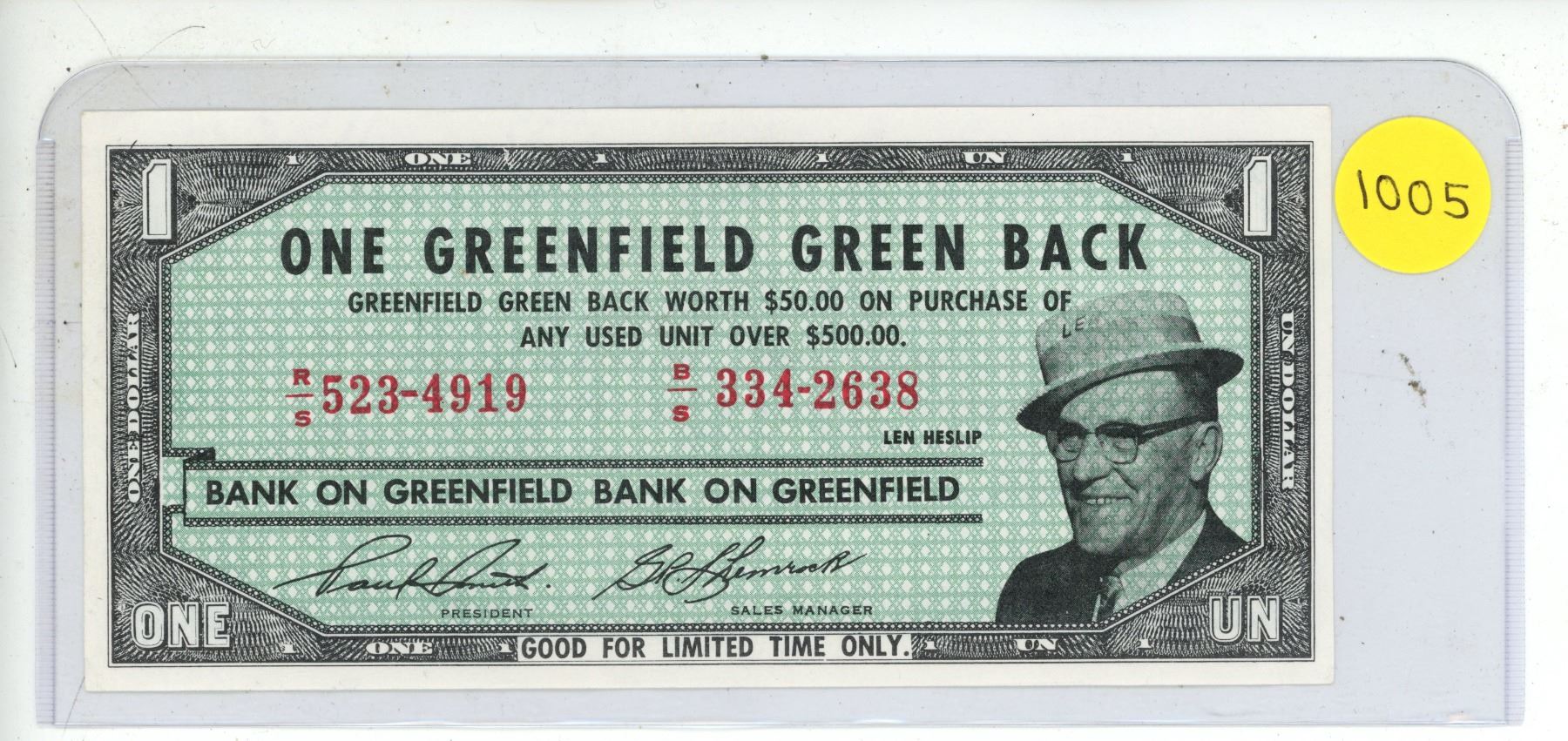 One Greenfield Green Back