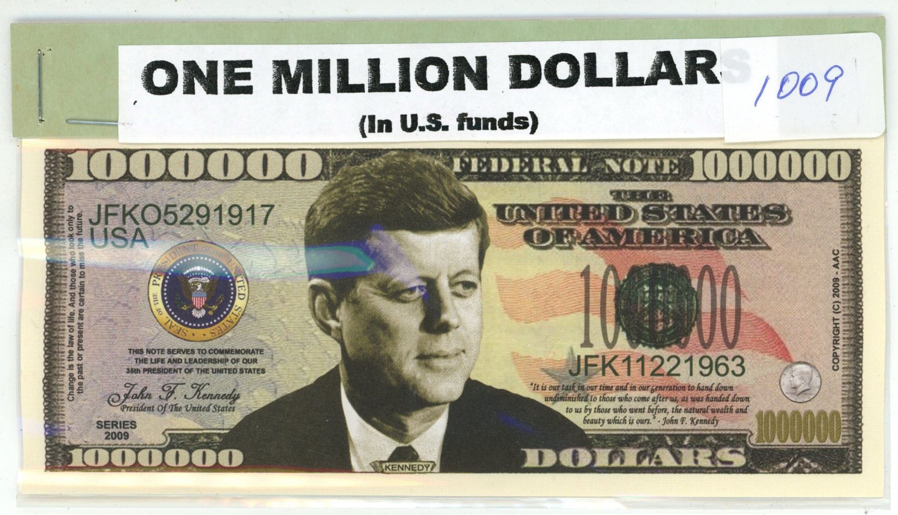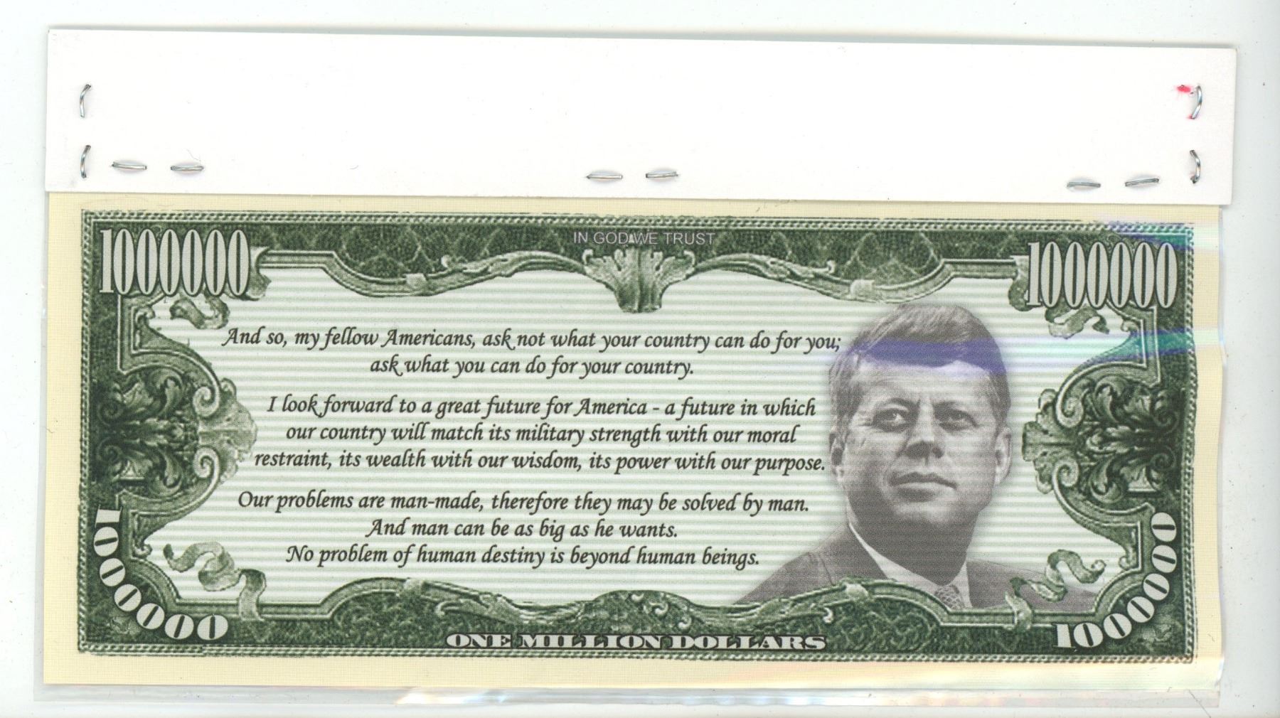 One Million note of JOHN F. KENNEDY depicting his 3 famous quotes