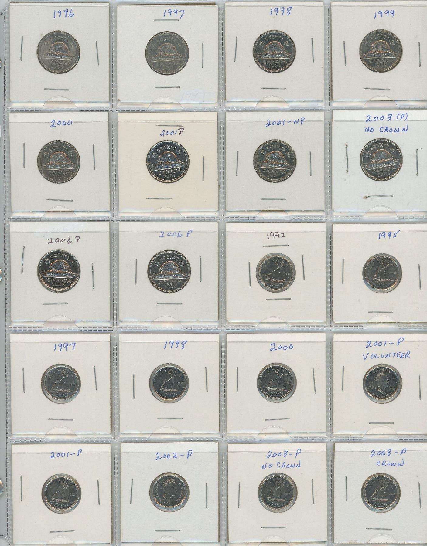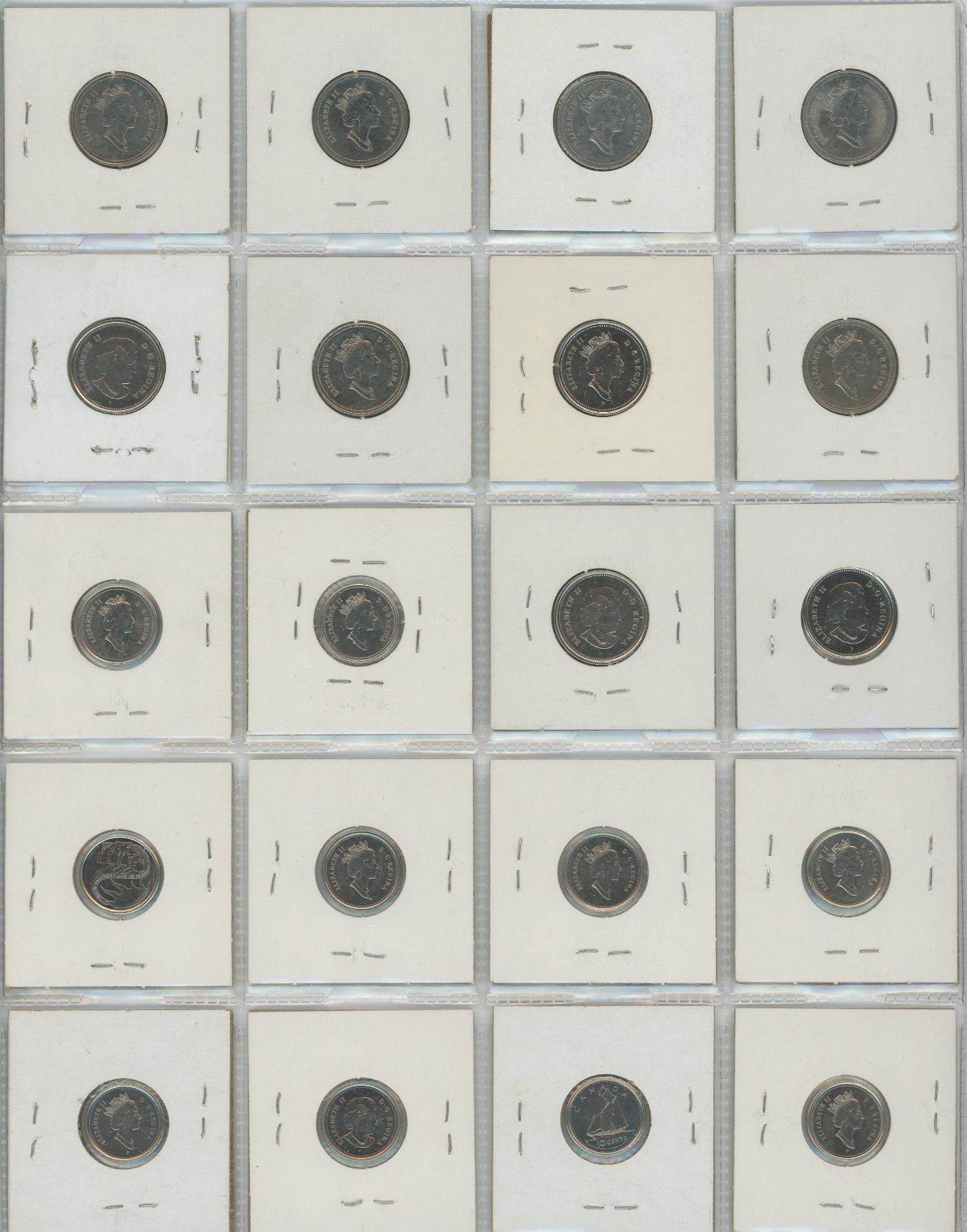 One Sheet of Canadian Five & Ten Cent Coins - Various Dates