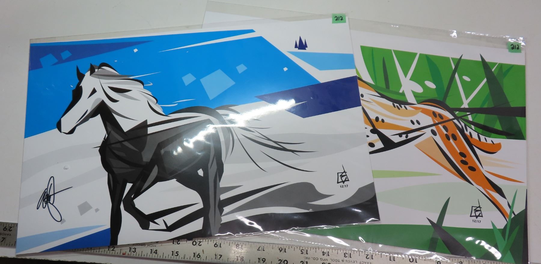 One of a kind premium art prints 11"x17" winter horse & cheetah by canadian artish signed electric impression.com