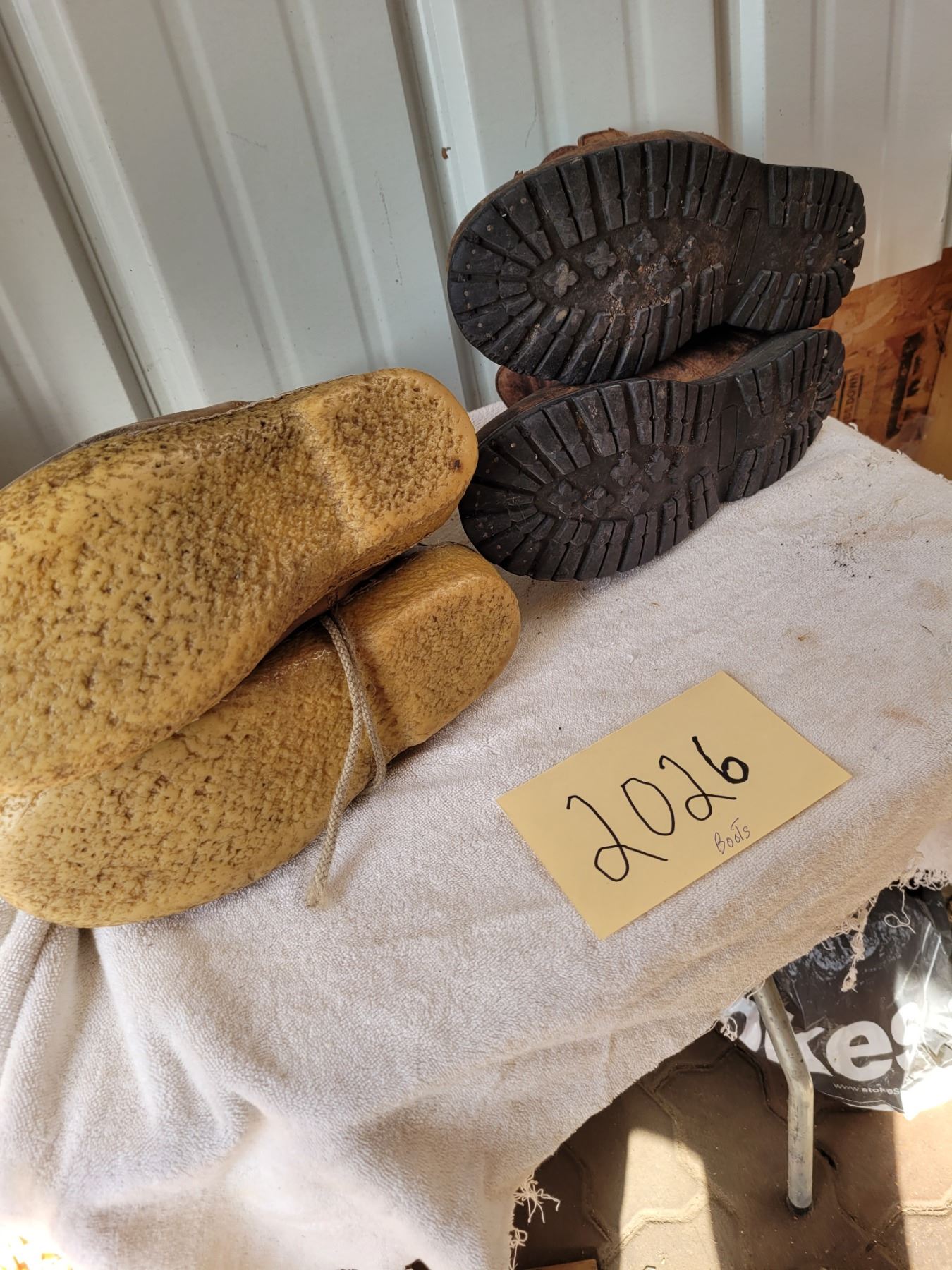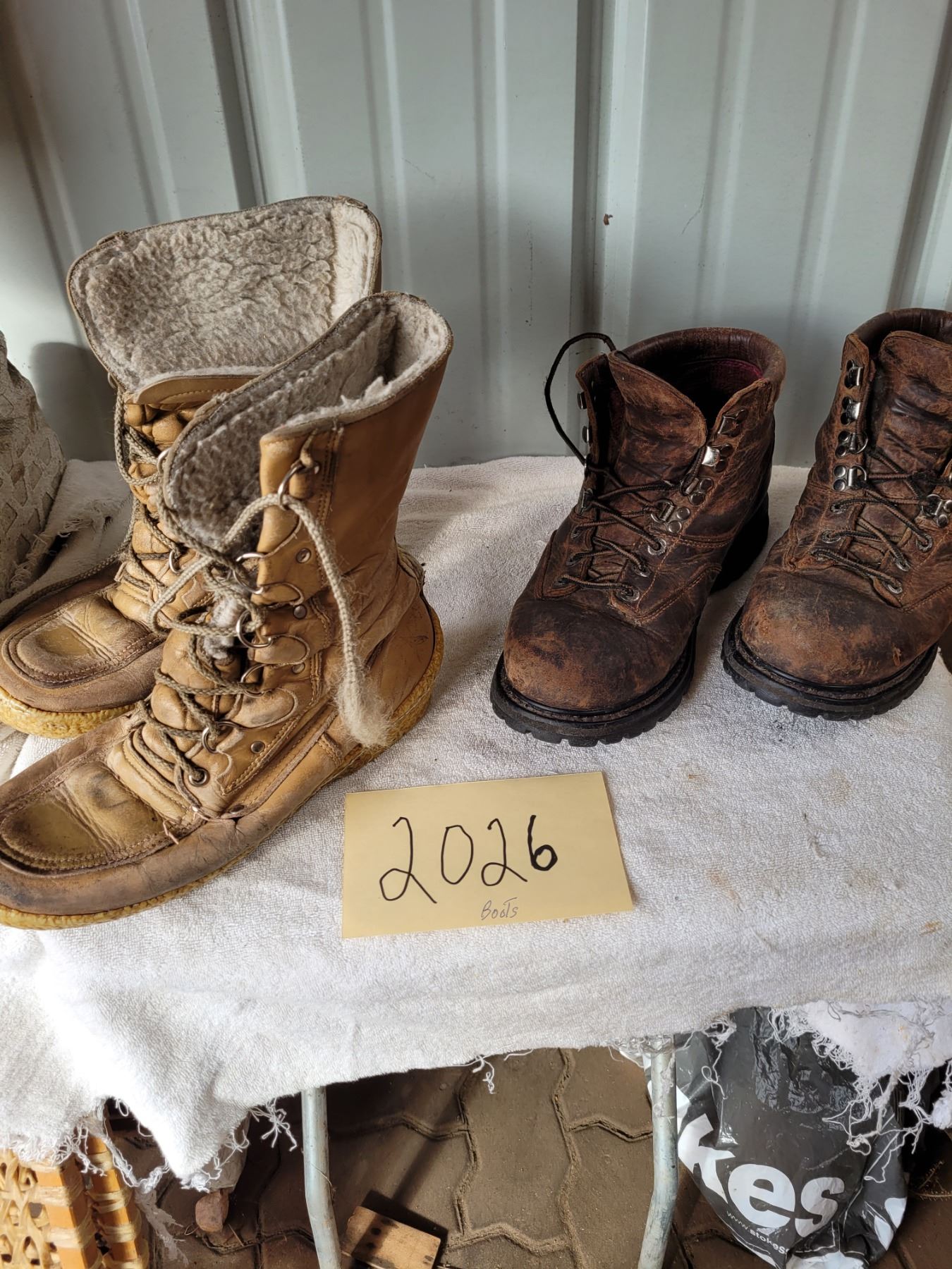 One pair of hiking boots, sz 10, Gore-Tex protection, one pair Moccasin boots sz 10