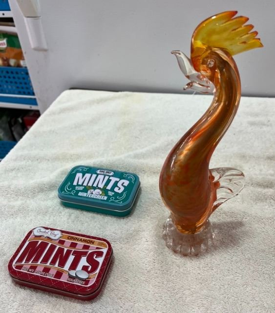 Orange Bird Art Glass, 2 Candy Mint Tins