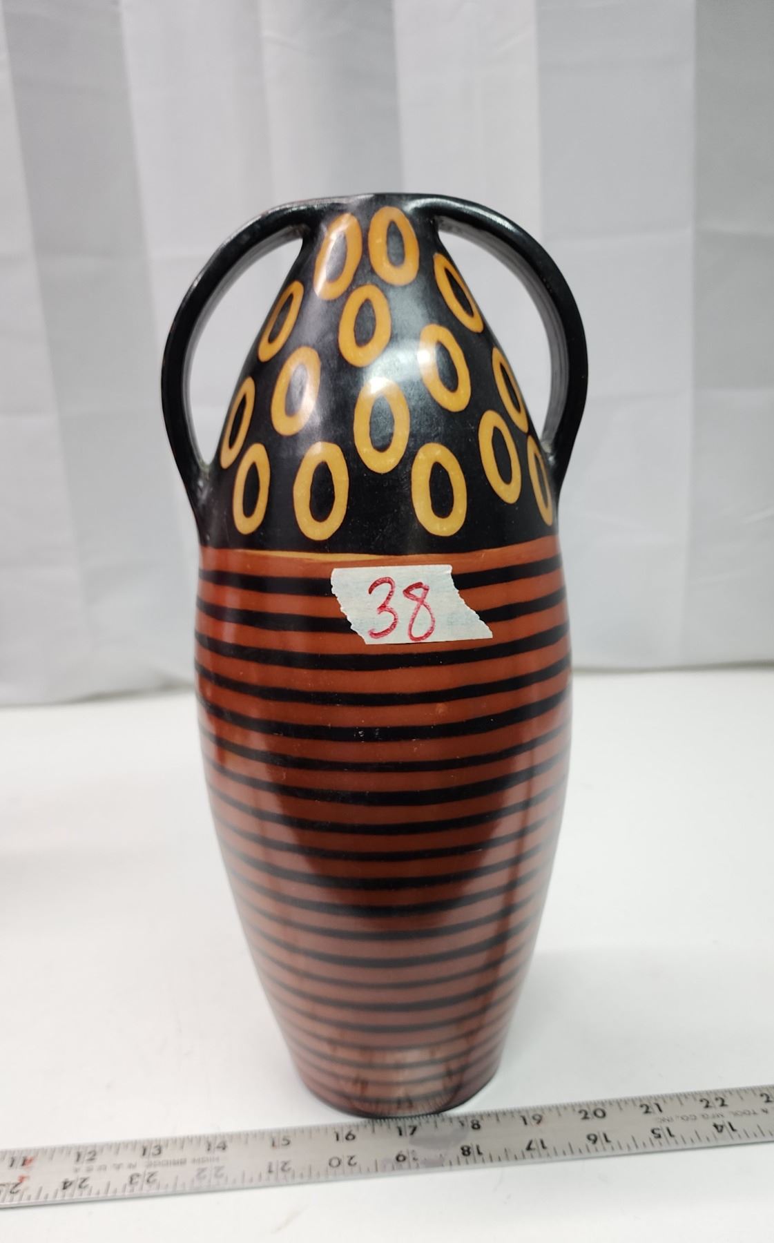 Orange striped porcelain/clay gourd - 14"H