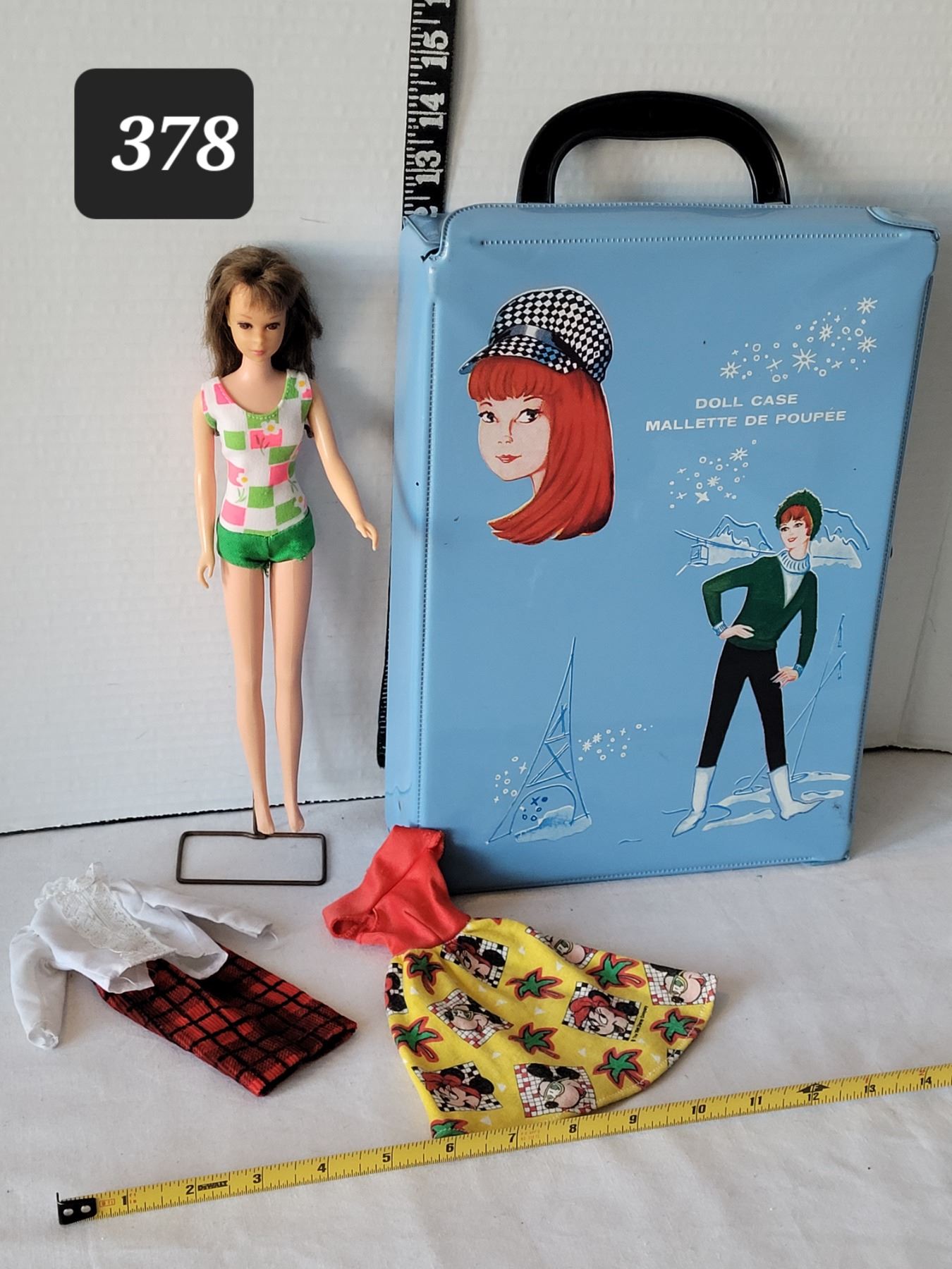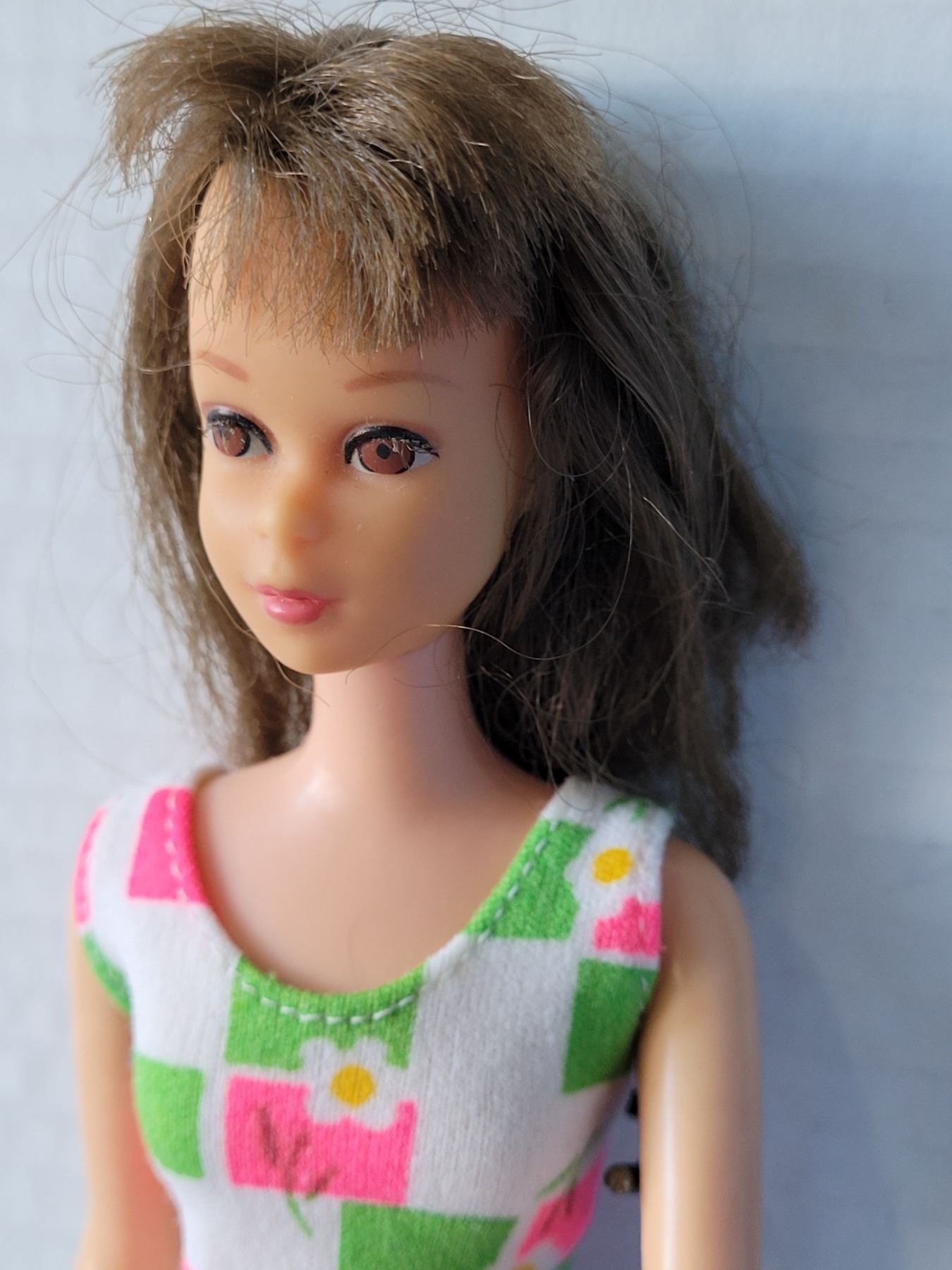 Original 1960's Brunette Mod Francie barbie doll, attire, stand & case. Bendable legs, one owner.