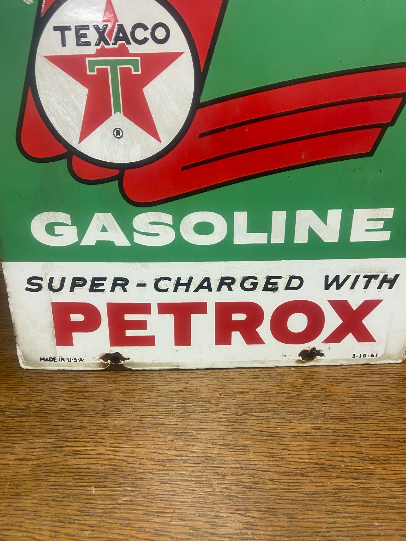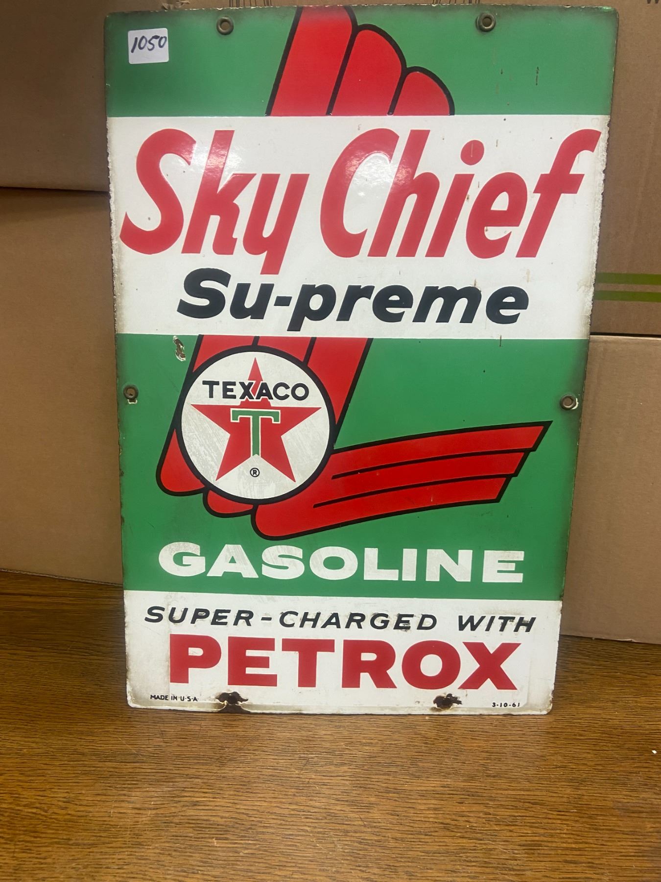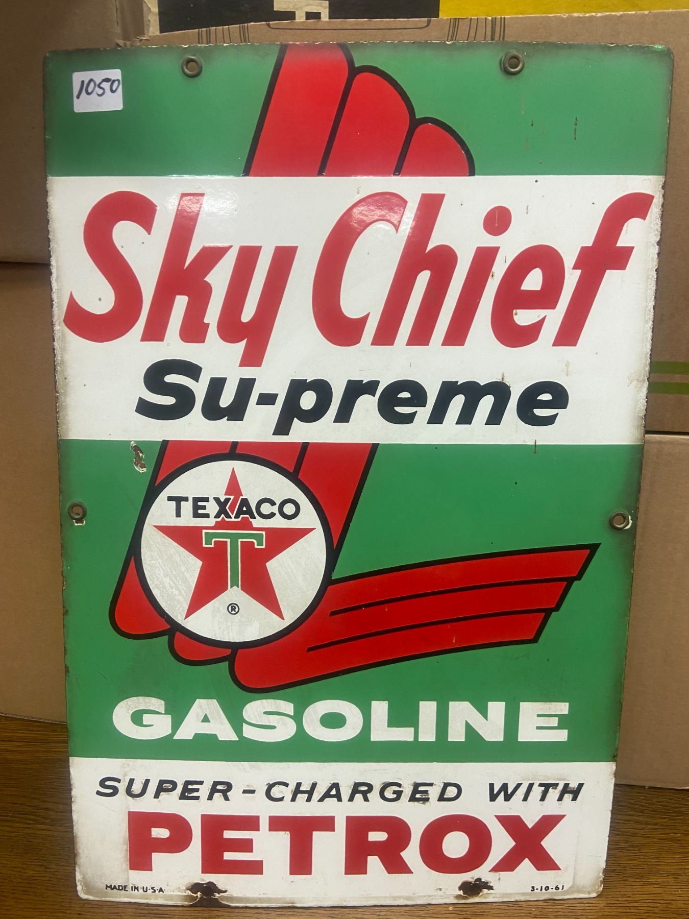 Original 1961 Texaco Sky Chief porcelain sign 12"x18"