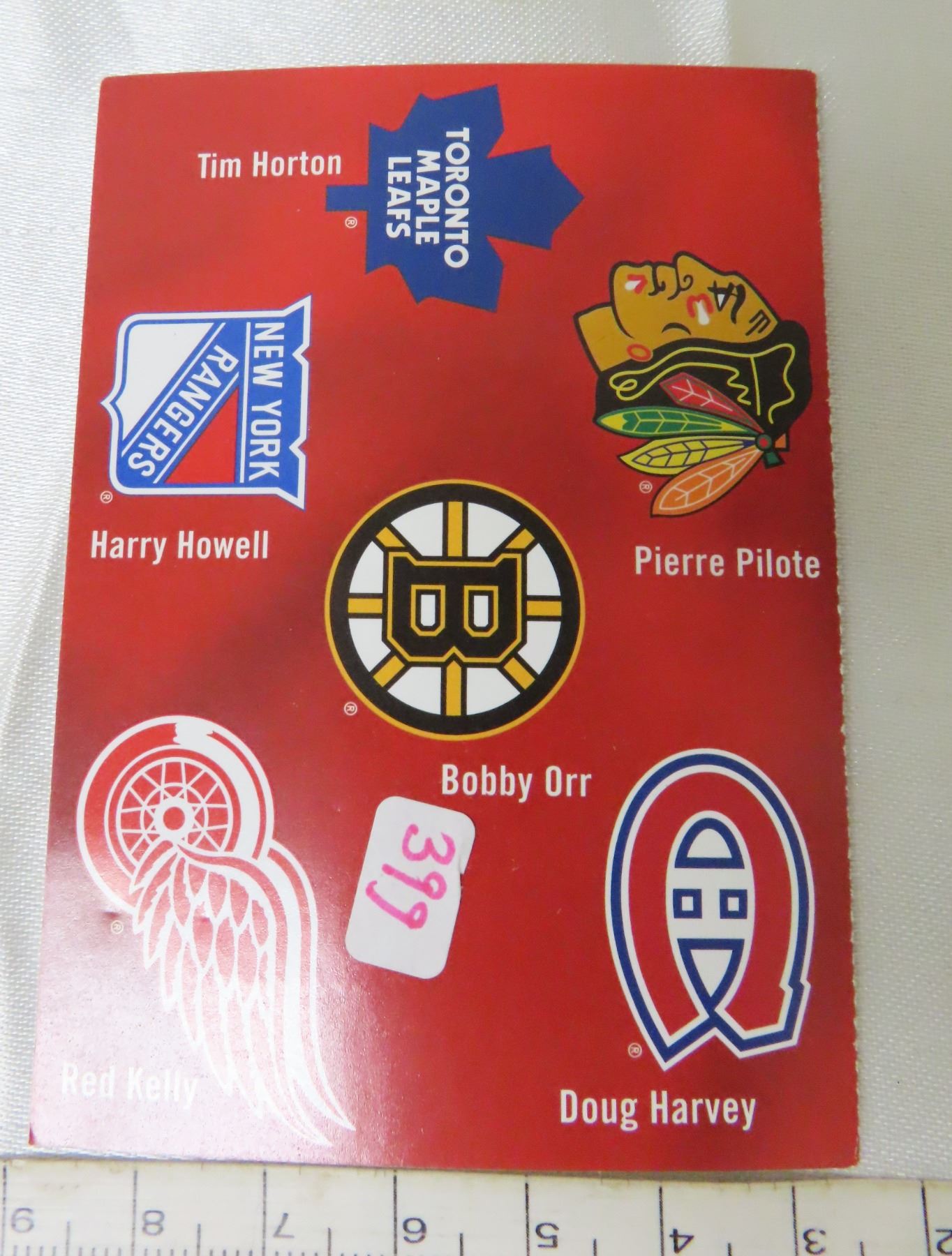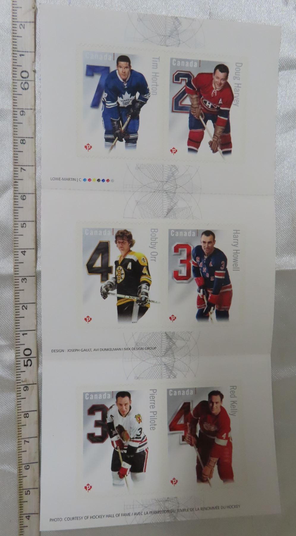 Original 6 NHL Hockey Stamps. Includes Tim Horton, Doug Harvey, Bobby Orr, Harvey Howell, Pierre Pil