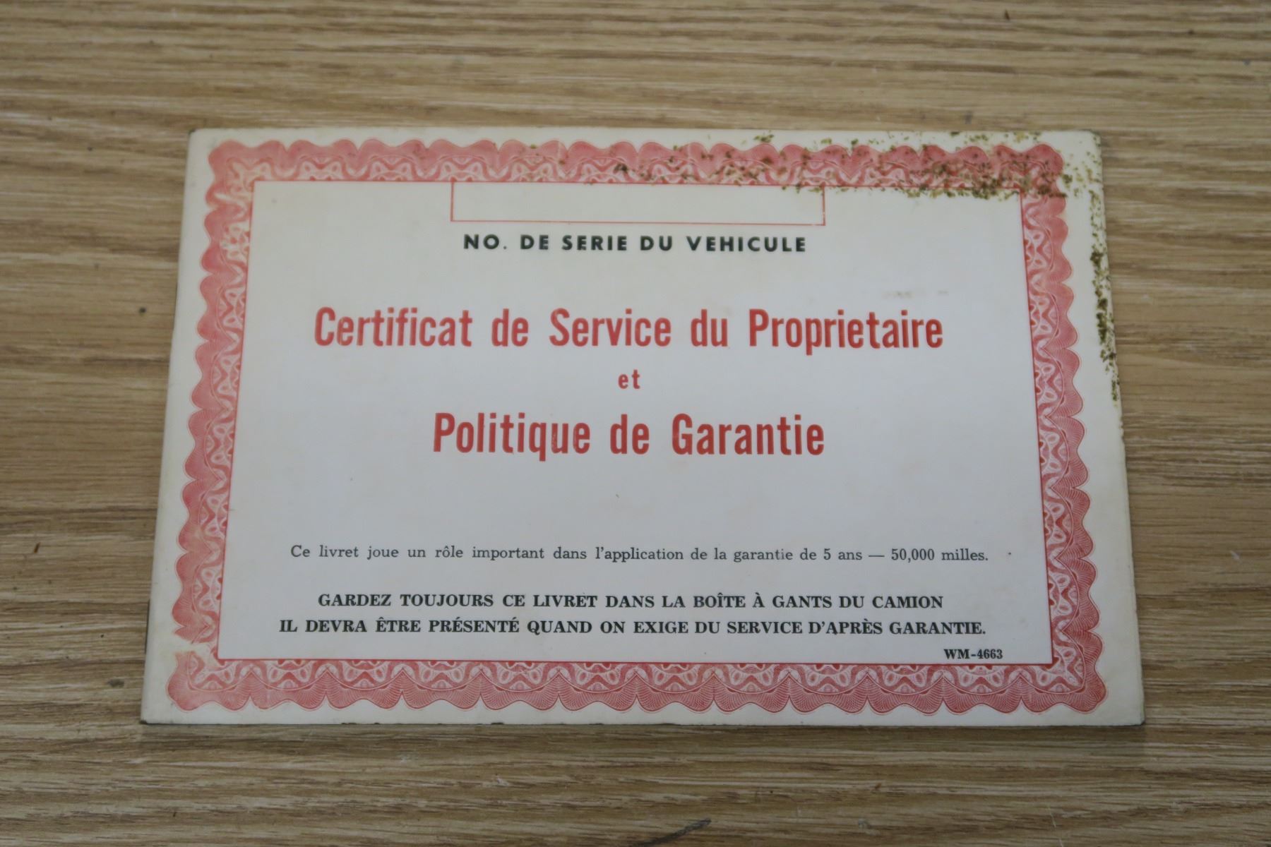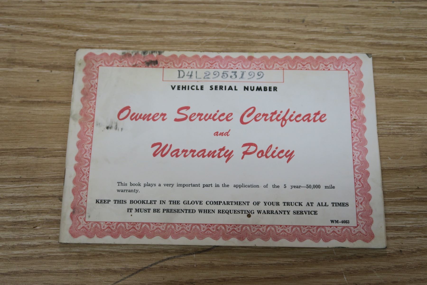 Original Chryco Owner Service Certificate & Warranty Policy