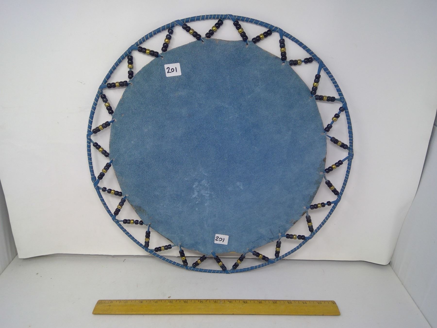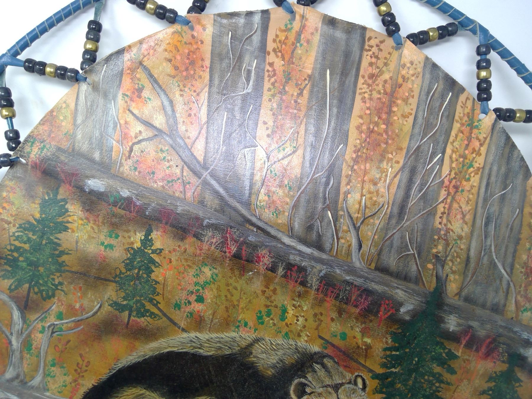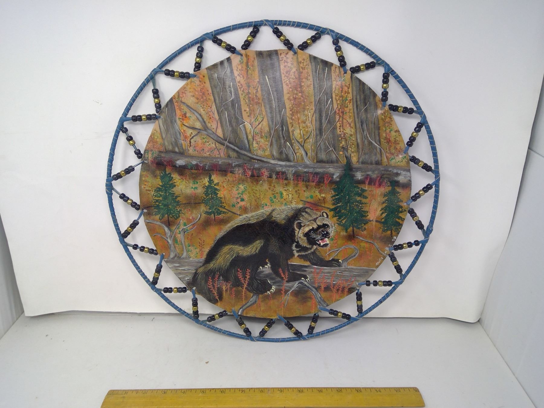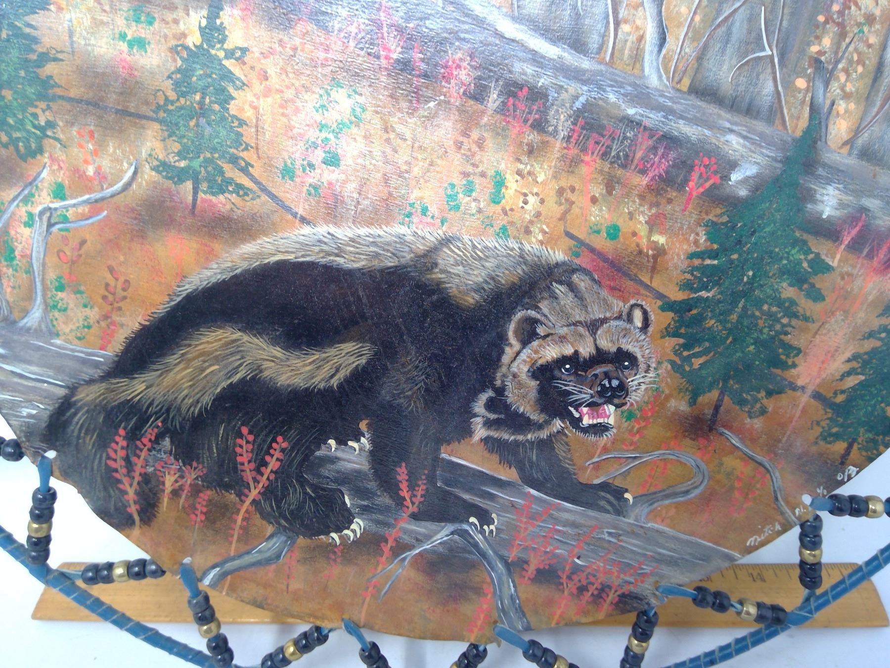 201 Original painting on leather “Wolverine” by Mitch N., 2013. Diameter: 18”.
