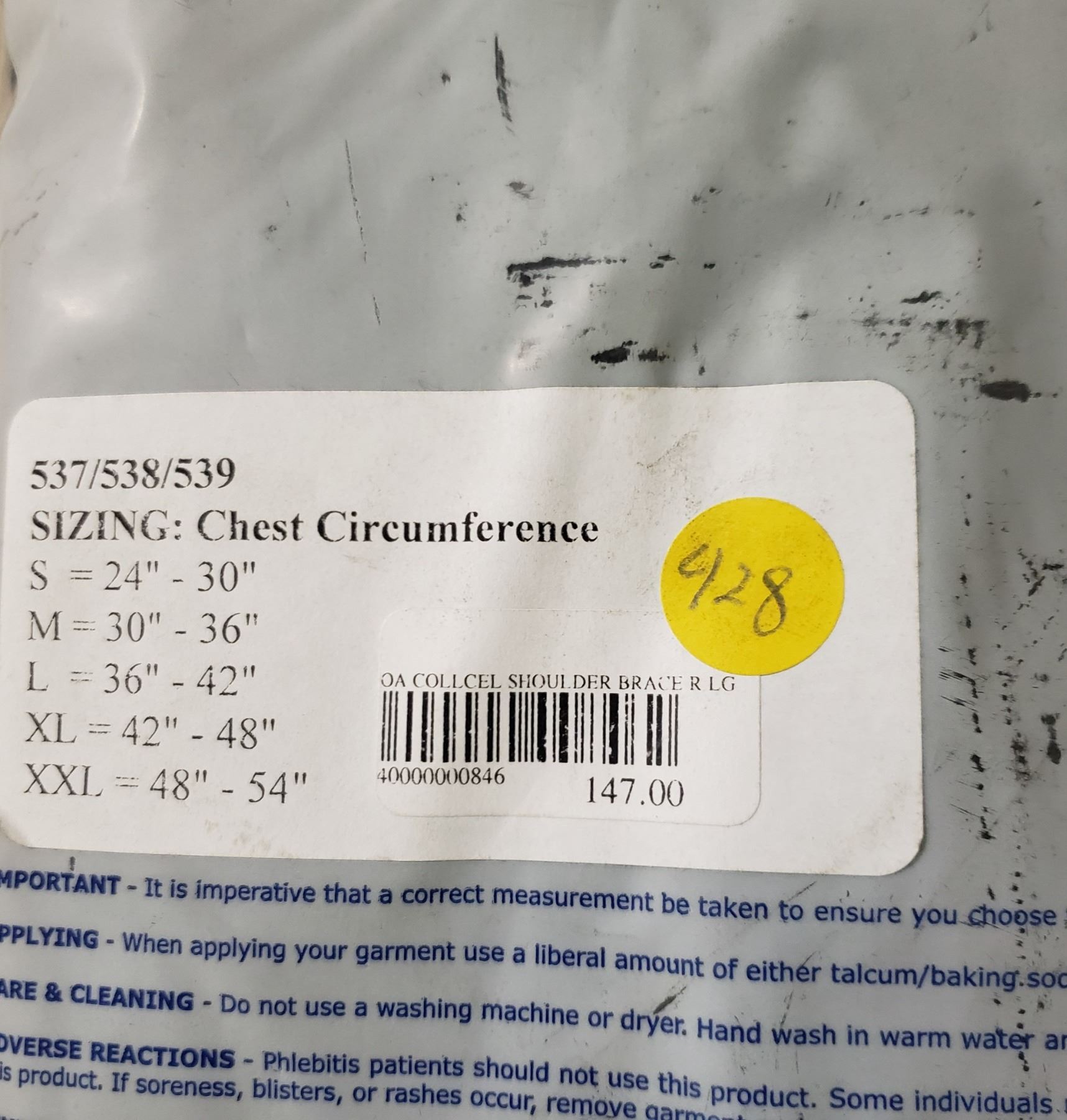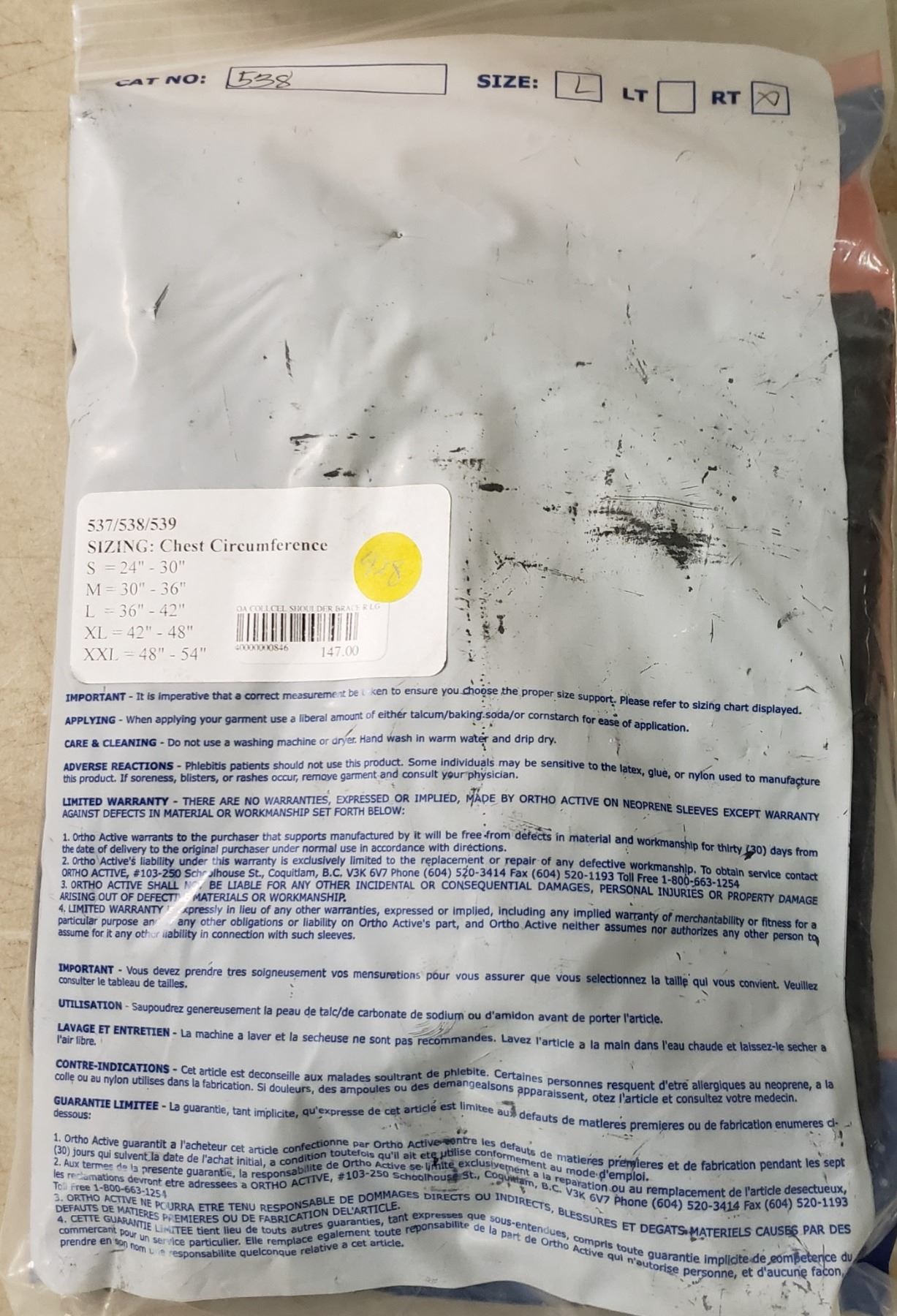 Ortho Active Collcel Shoulder Brace R LG SRP $147.00
