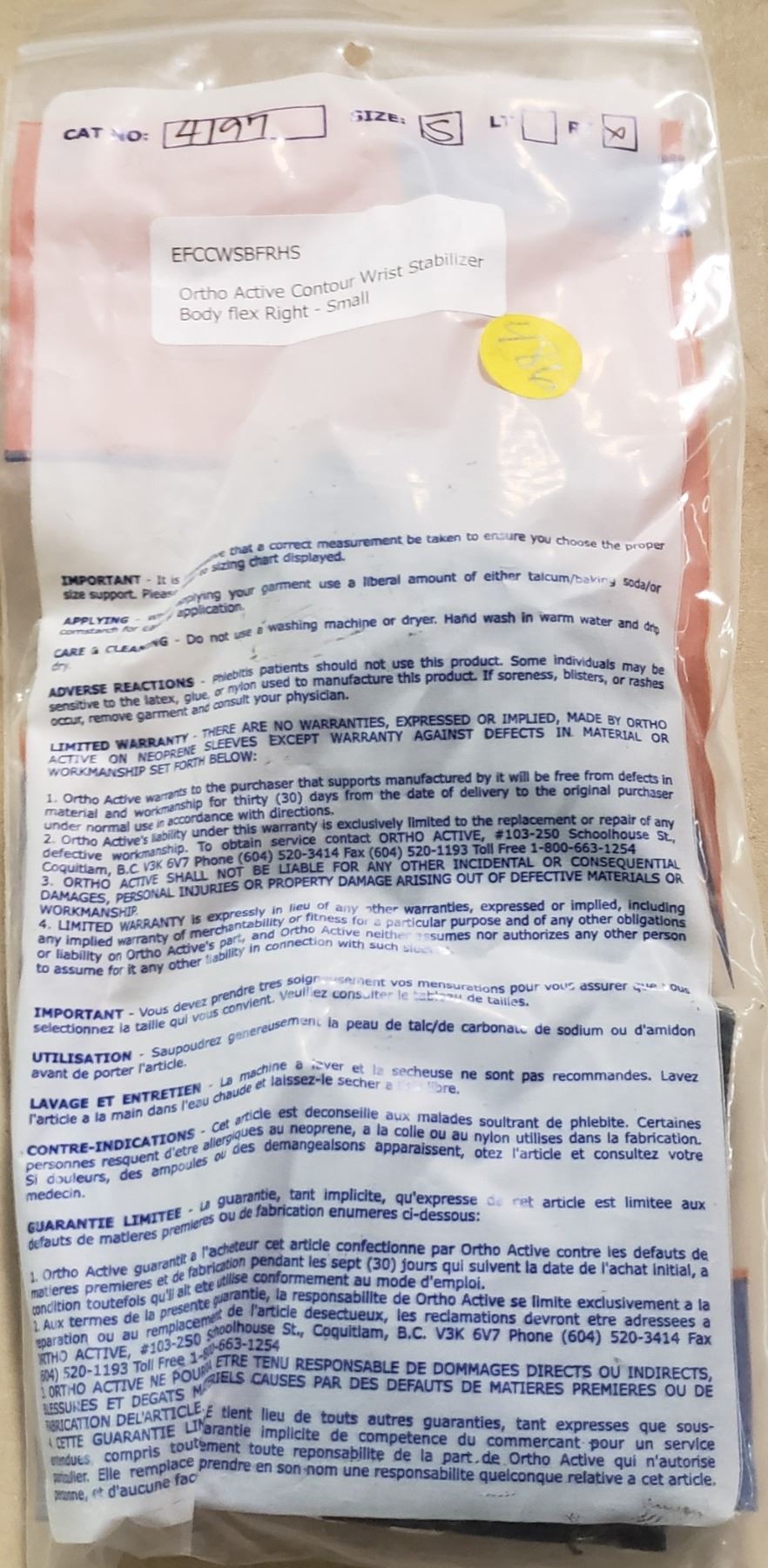 Ortho Active Contour Wrist Stablilizer Body flex Right - Small