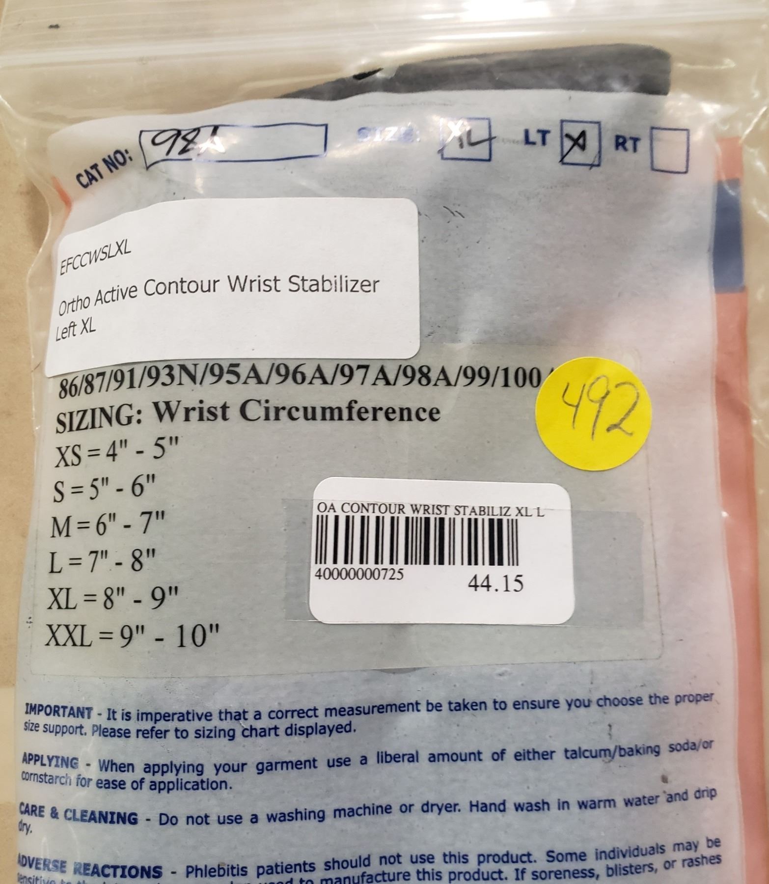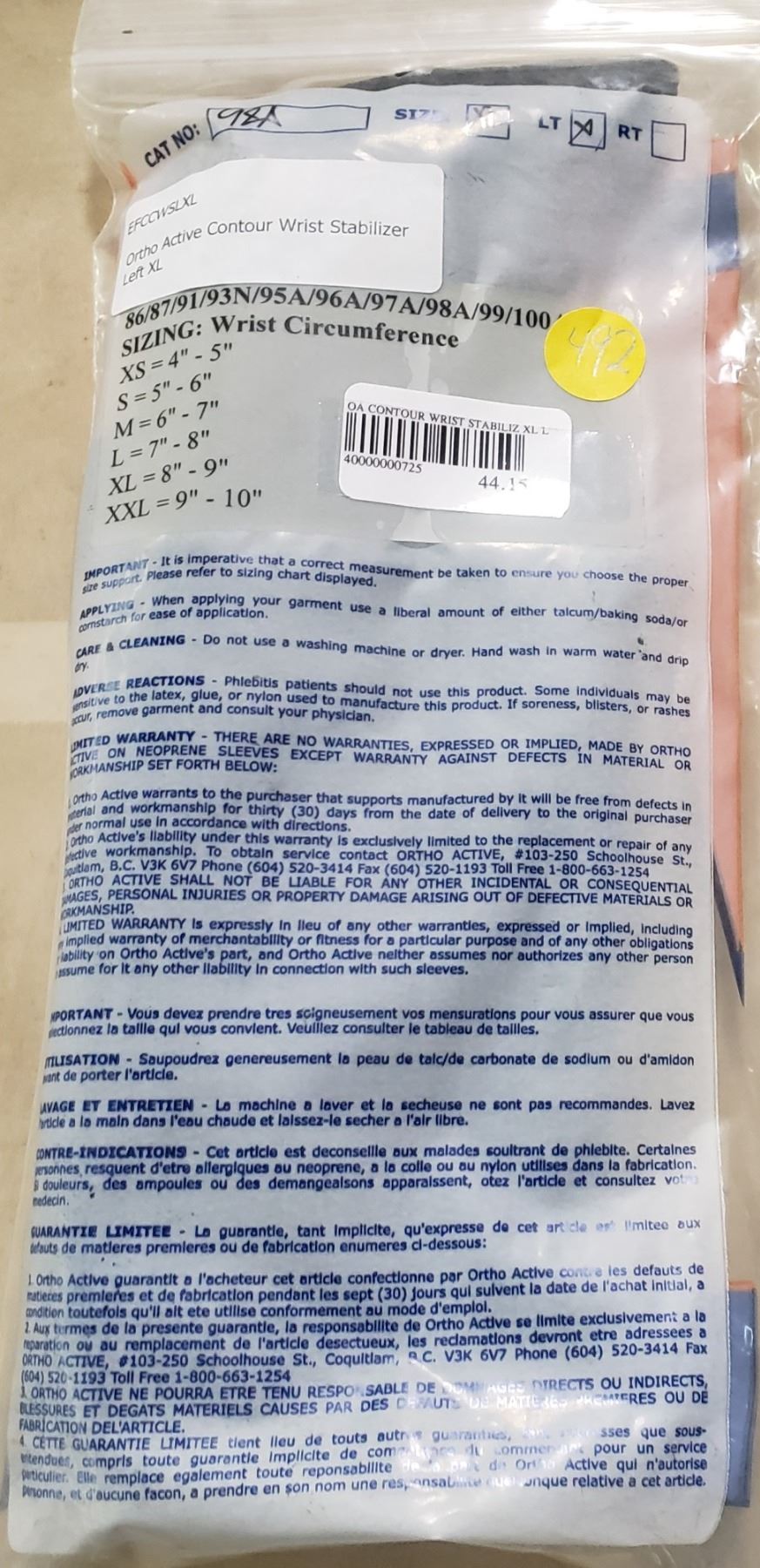 Ortho Active Contour Wrist Stablilizer XL L SRP $44.15