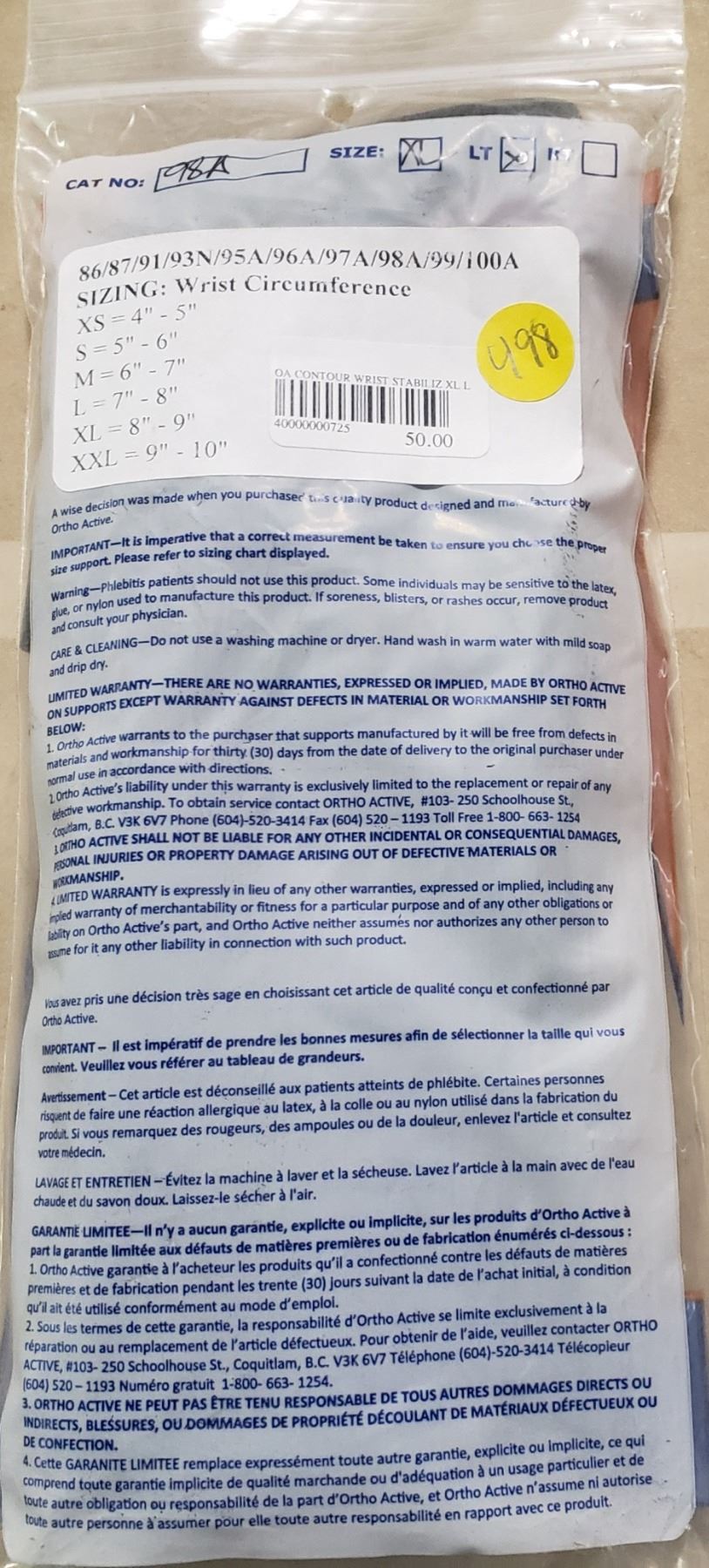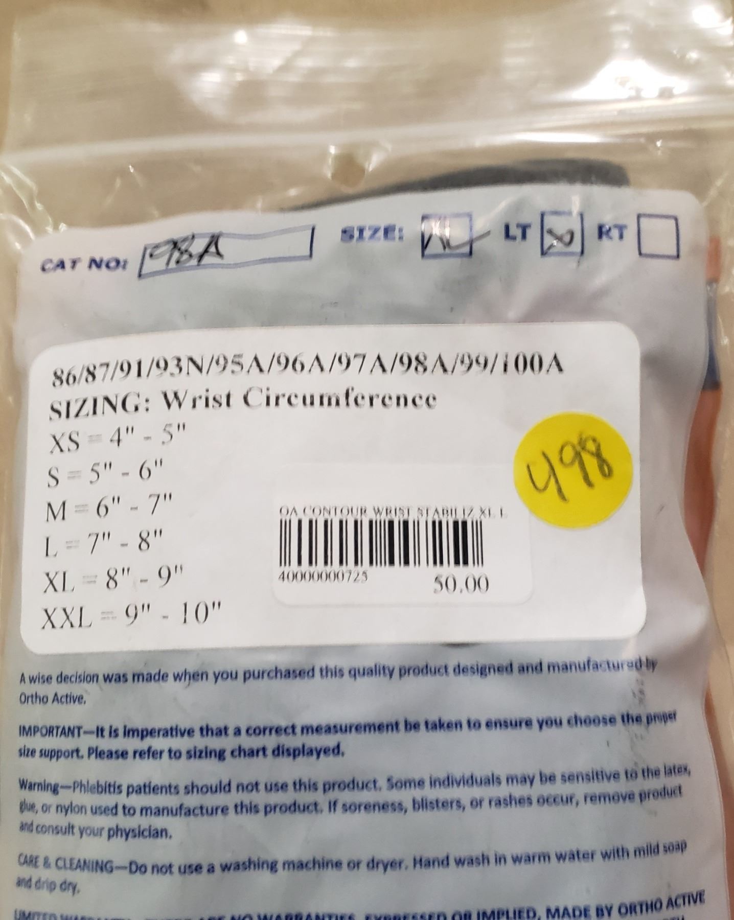 Ortho Active Contour Wrist Stablilizer XL Left SRP $44.15
