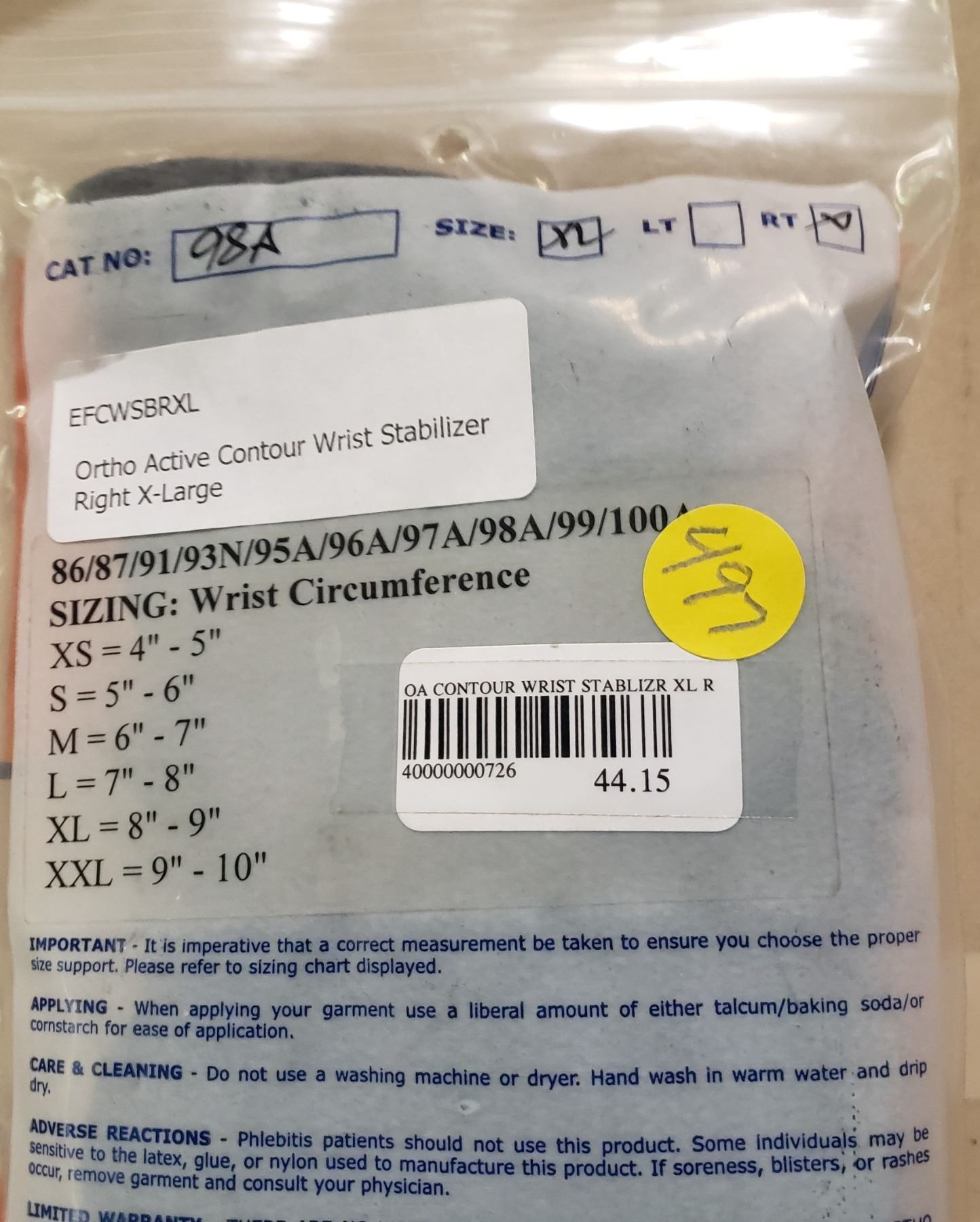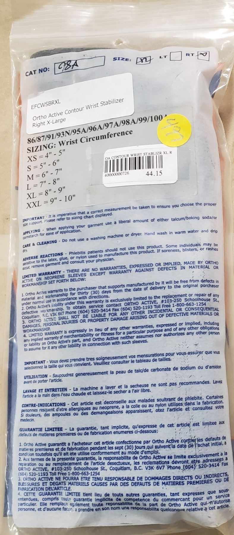 Ortho Active Contour Wrist Stablilizer XL Right SRP $44.15