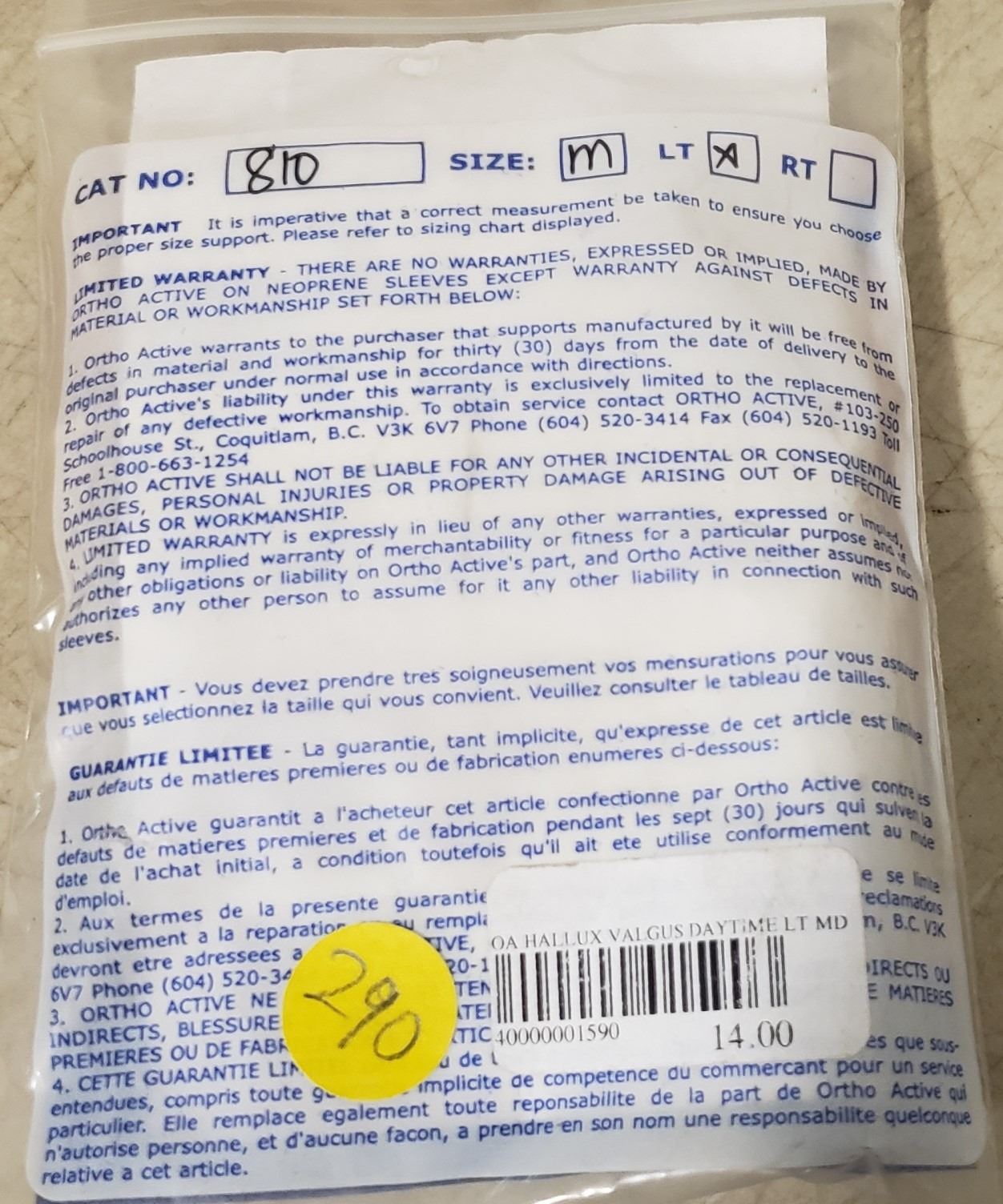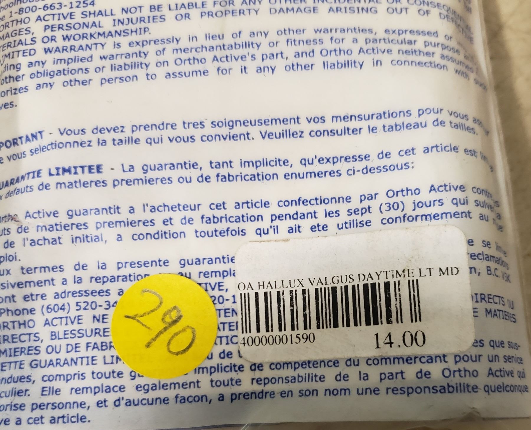 Ortho Active Hallux Valgus Daytime Splint LT MD SRP $14.00