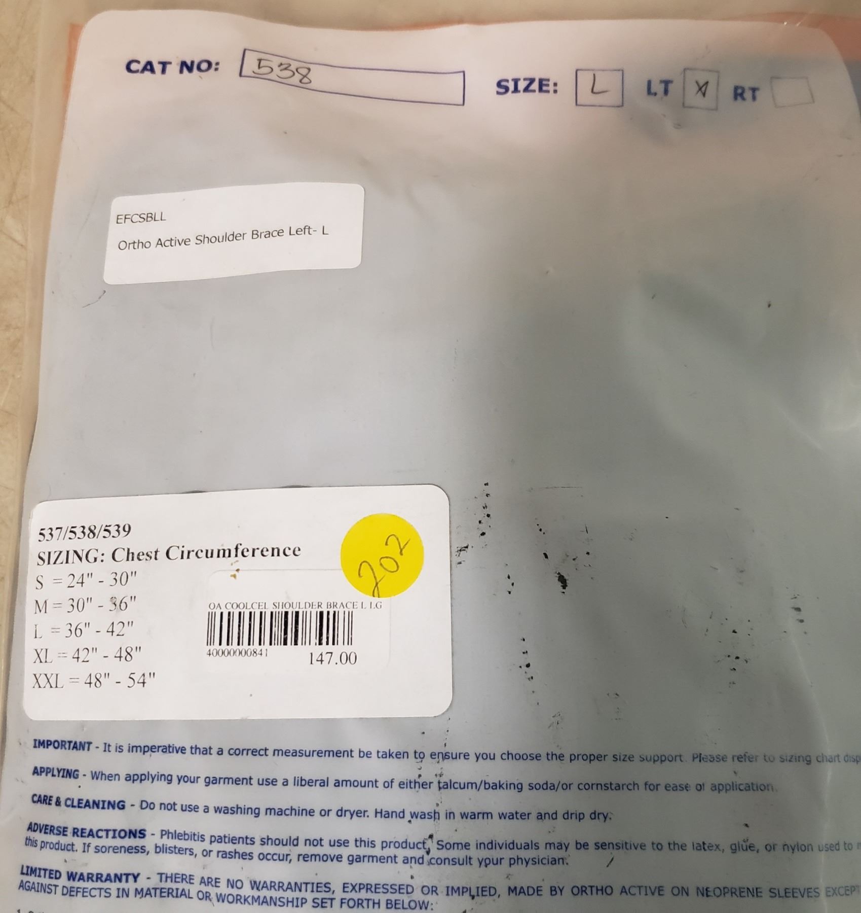 Ortho Active Shoulder Brace Left -L SRP $147.00