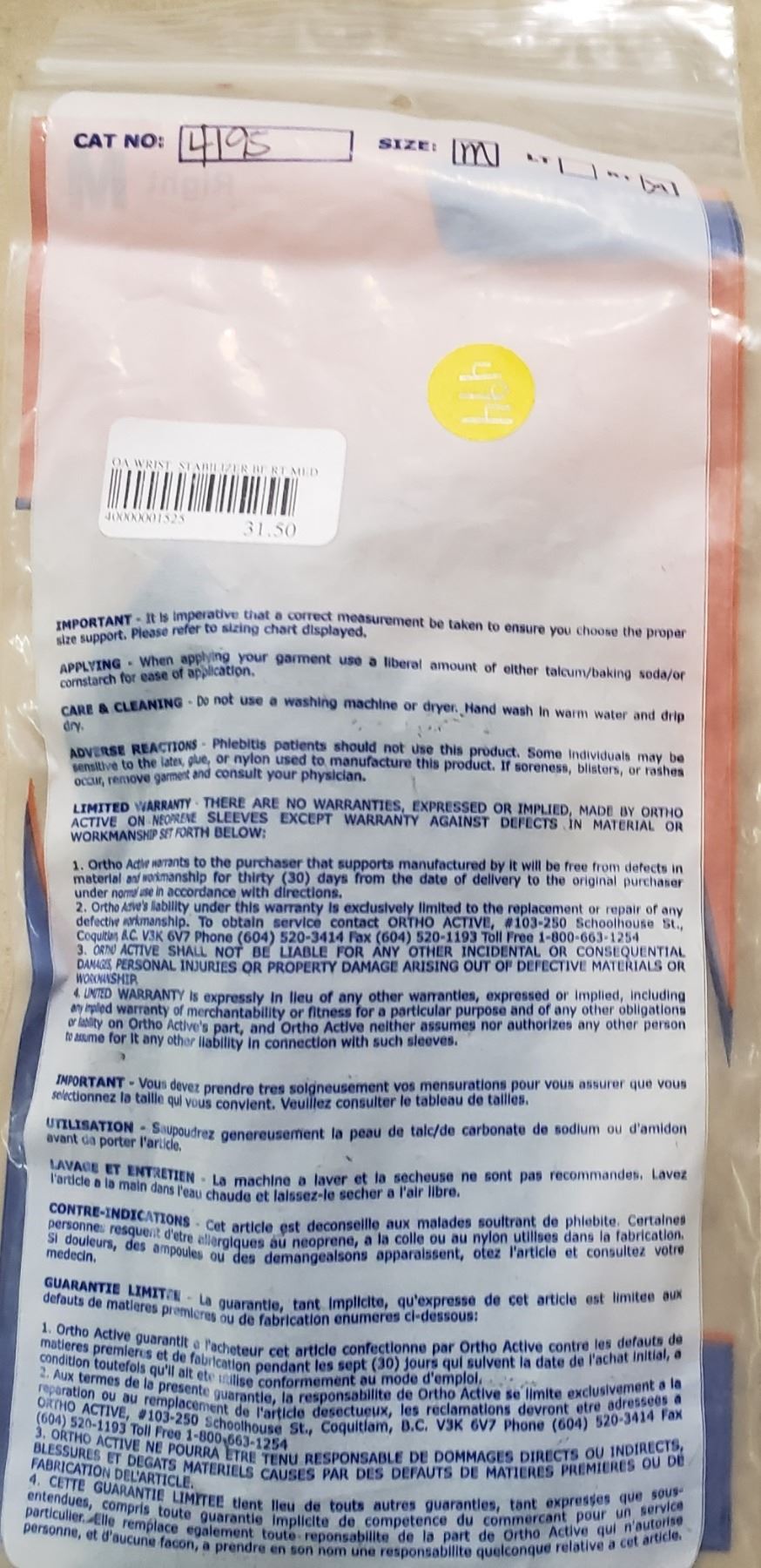Ortho Active Wrist Stabilizer BodyFlex RT MED SRP $31.50