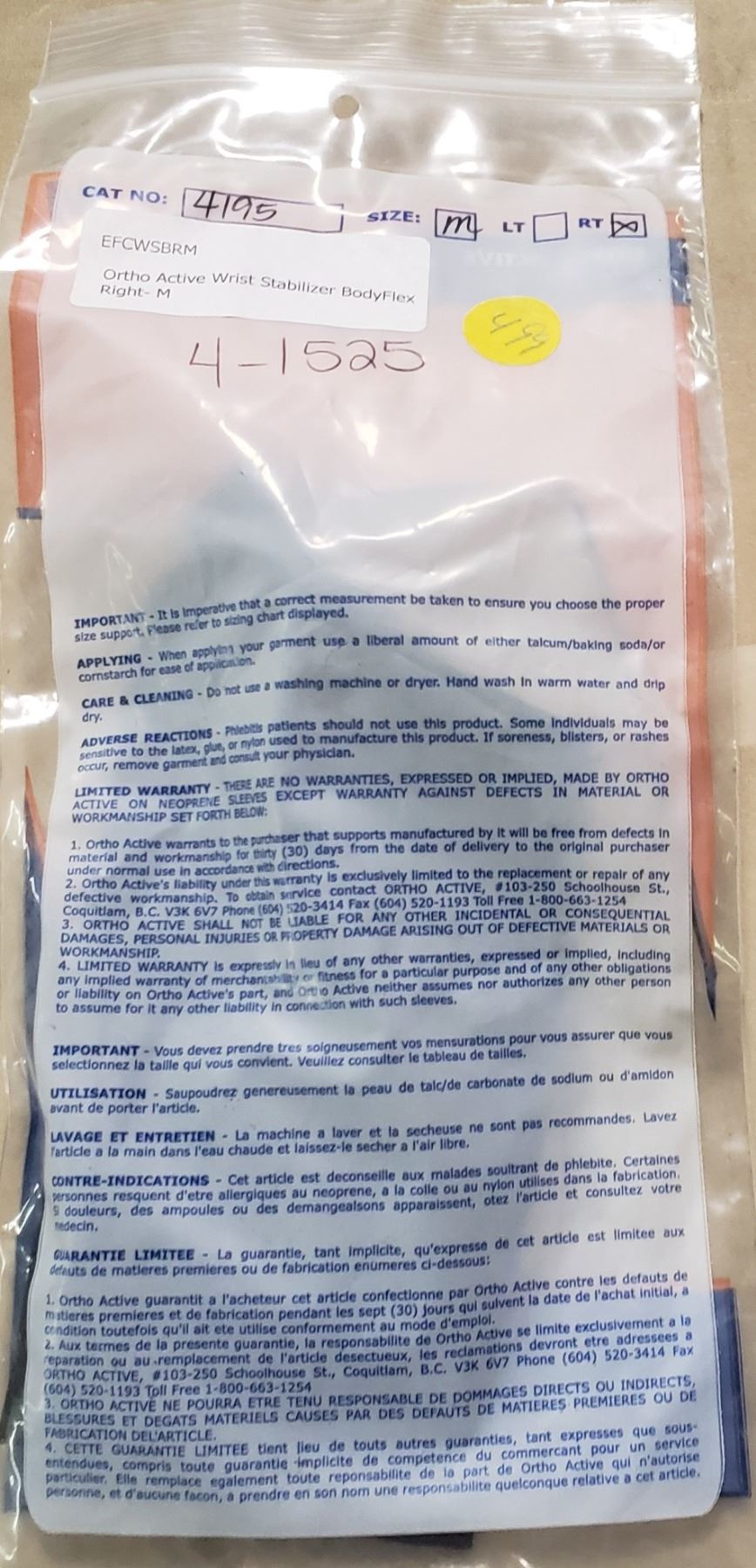 Ortho Active Wrist Stabilizer BodyFlex Right - Medium