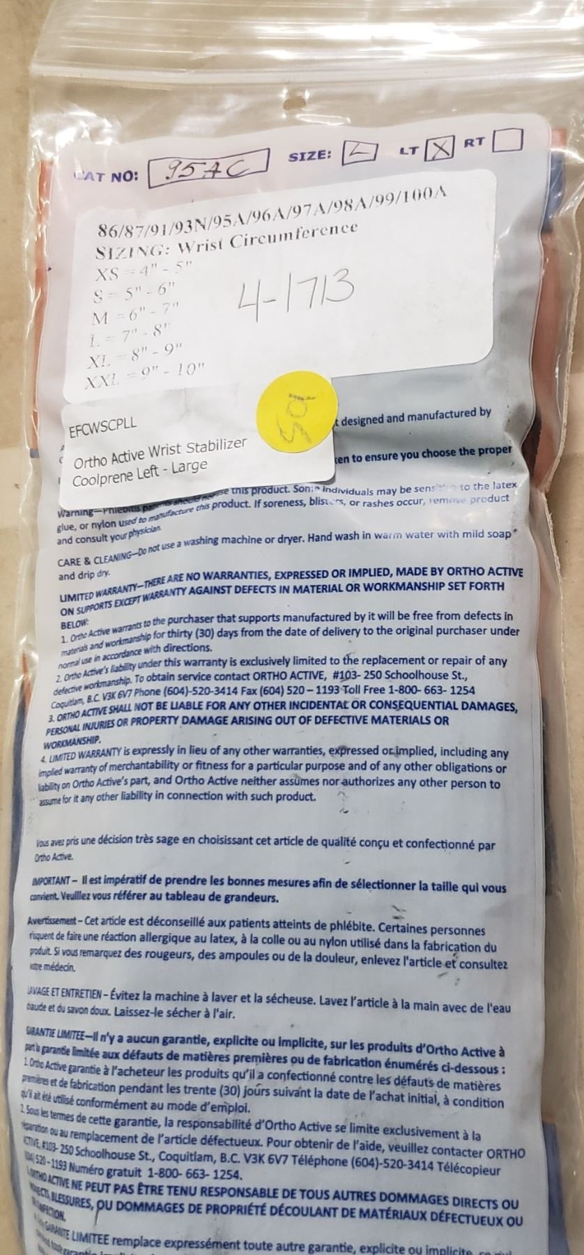 Ortho Active Wrist Stabilizer Coolprene Left - Large