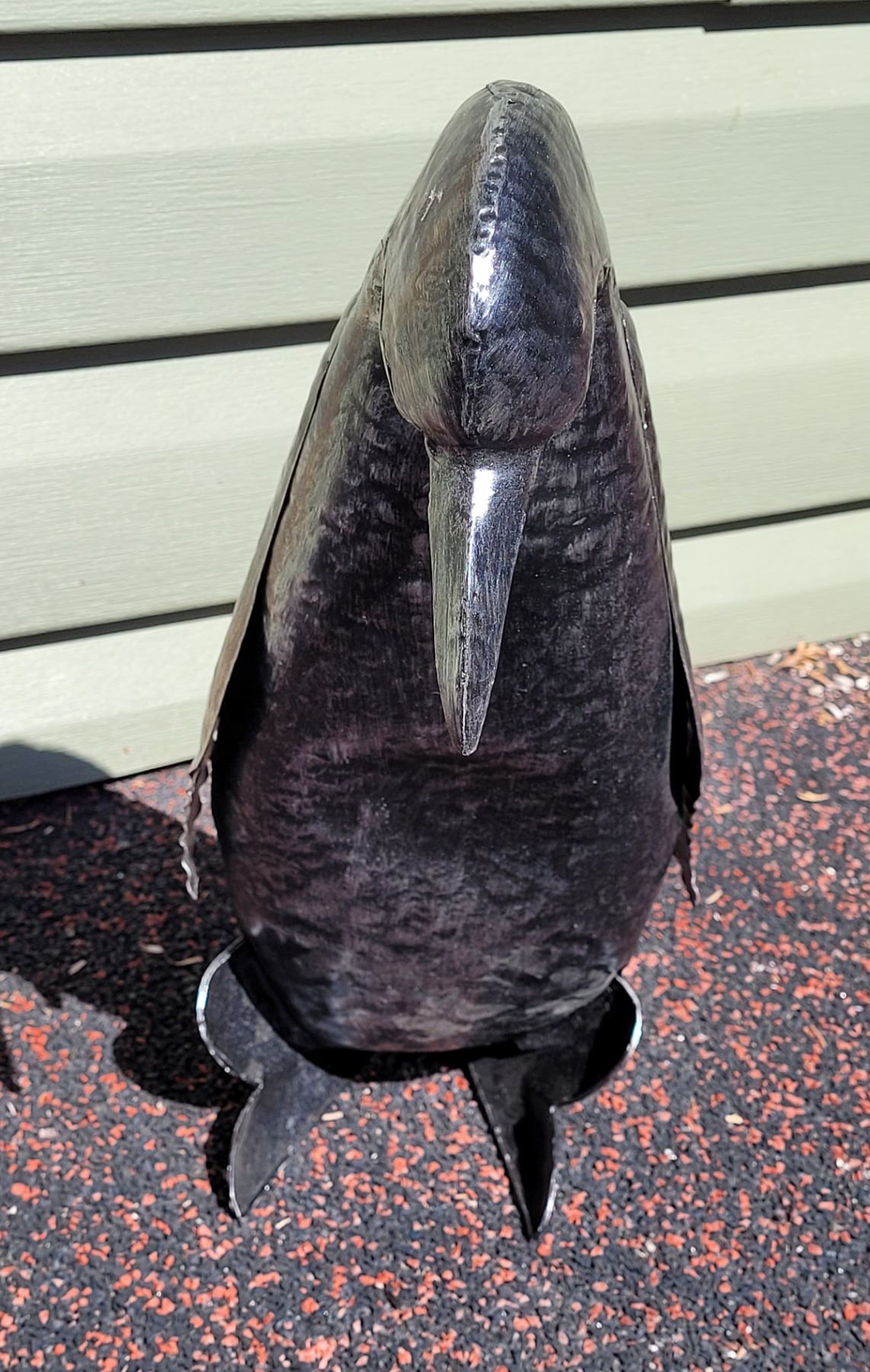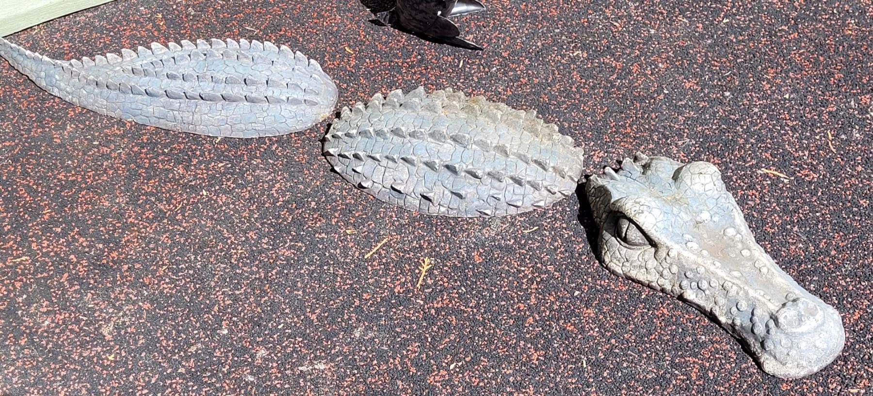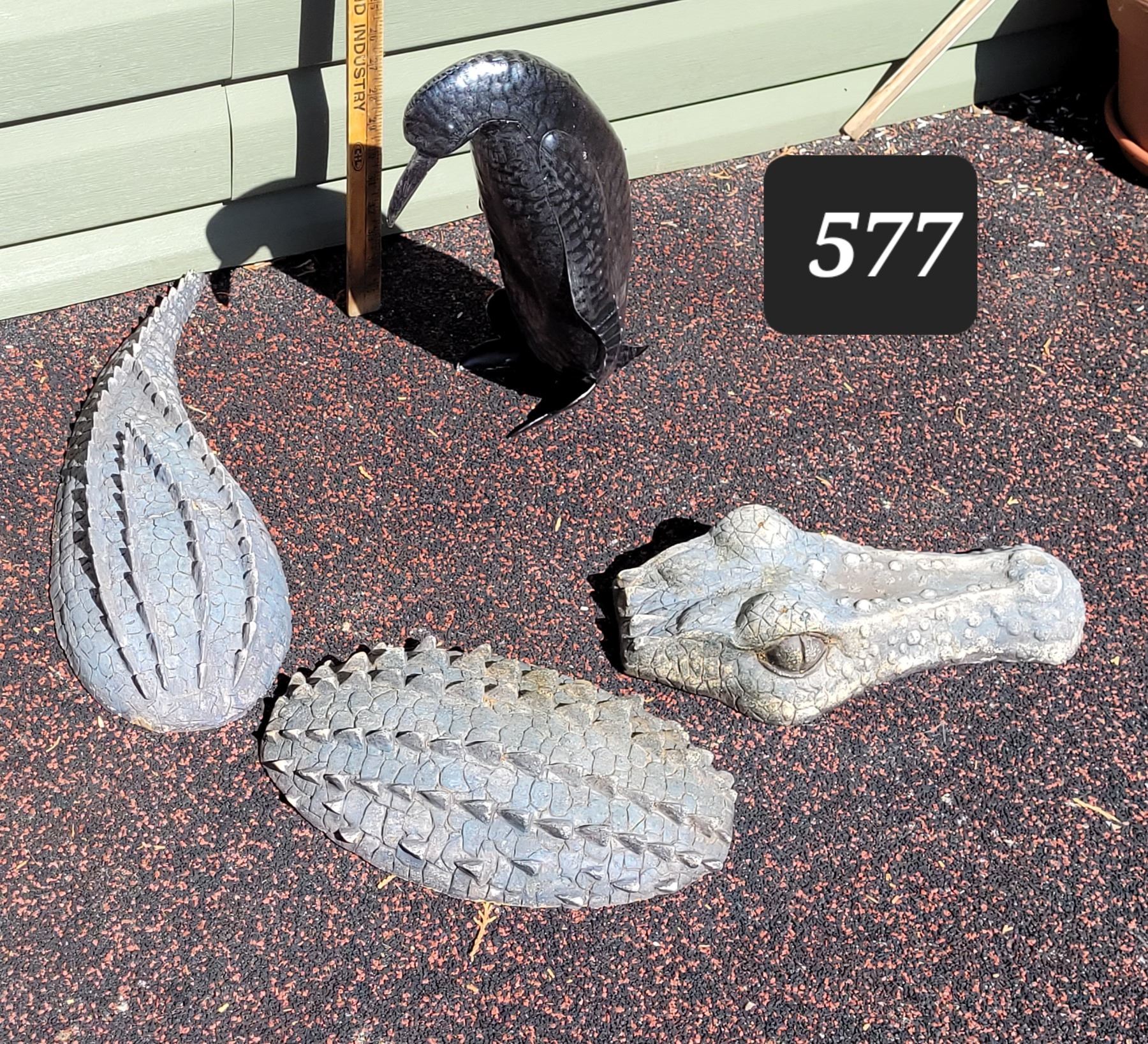 Outdoor metal penguin & 3 piece alligator.