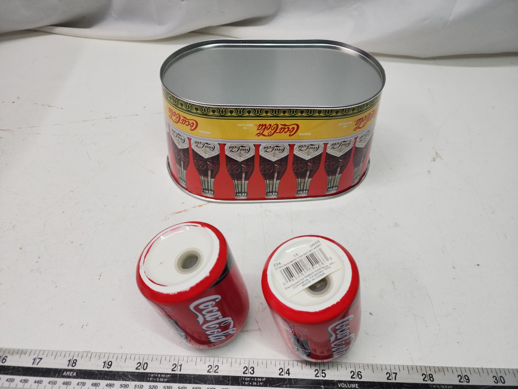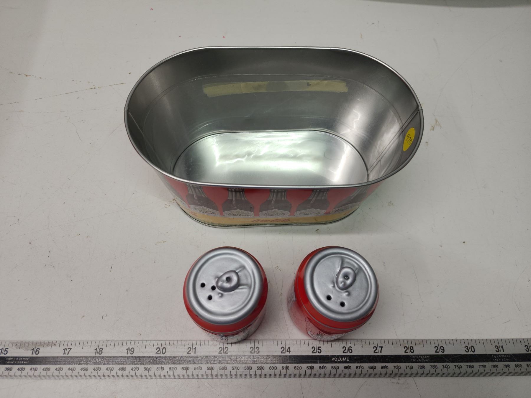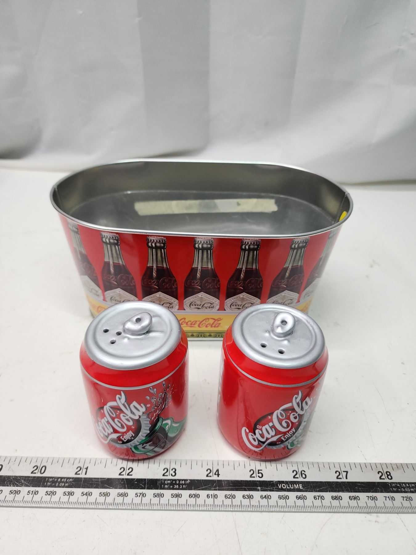 Oval COKE bucket and also ceramic COKE salt & pepper shakers