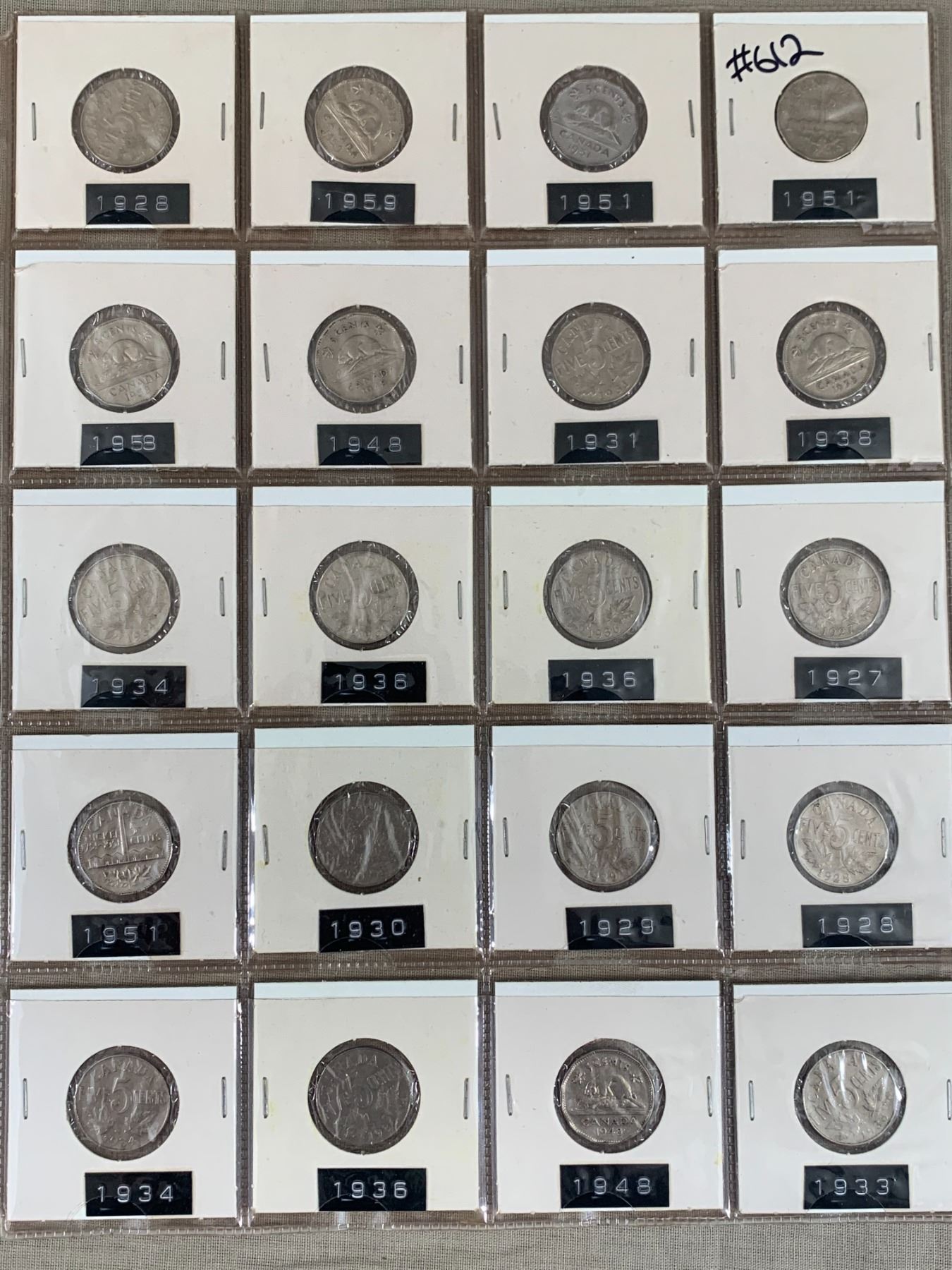 PAGE LOT OF 20 CANADIAN 5 CENT NICKELS
