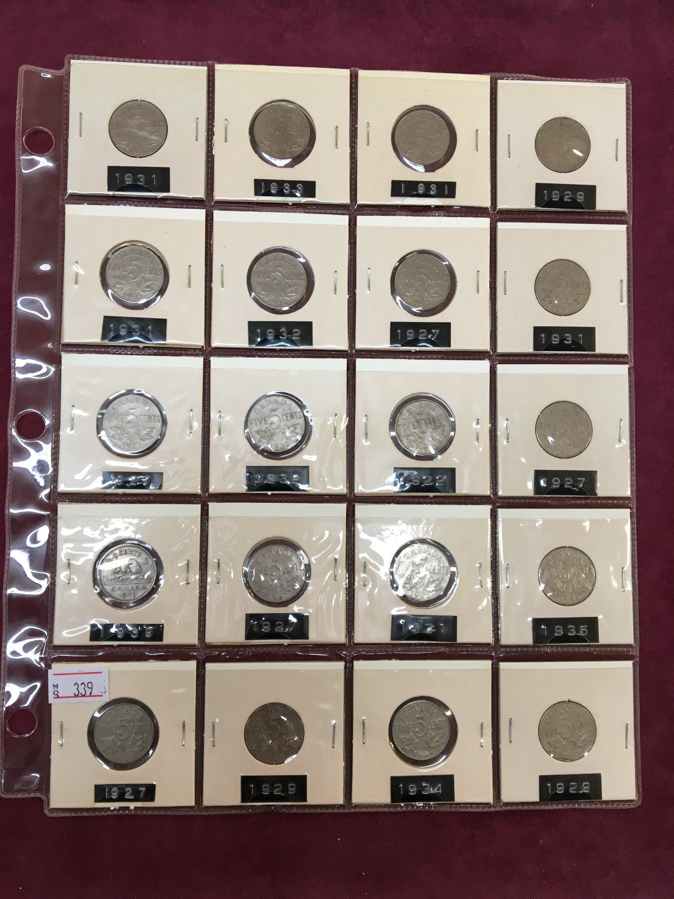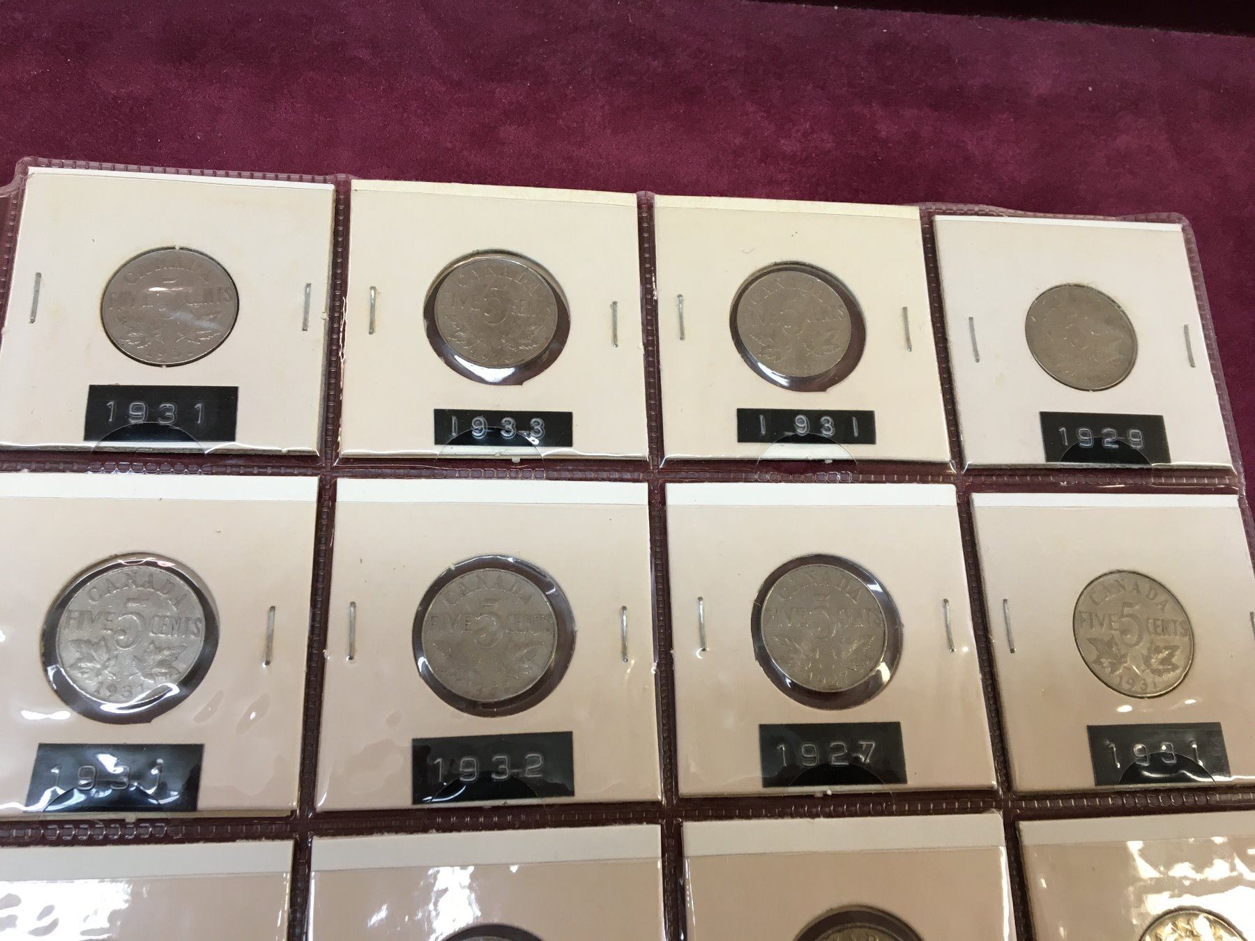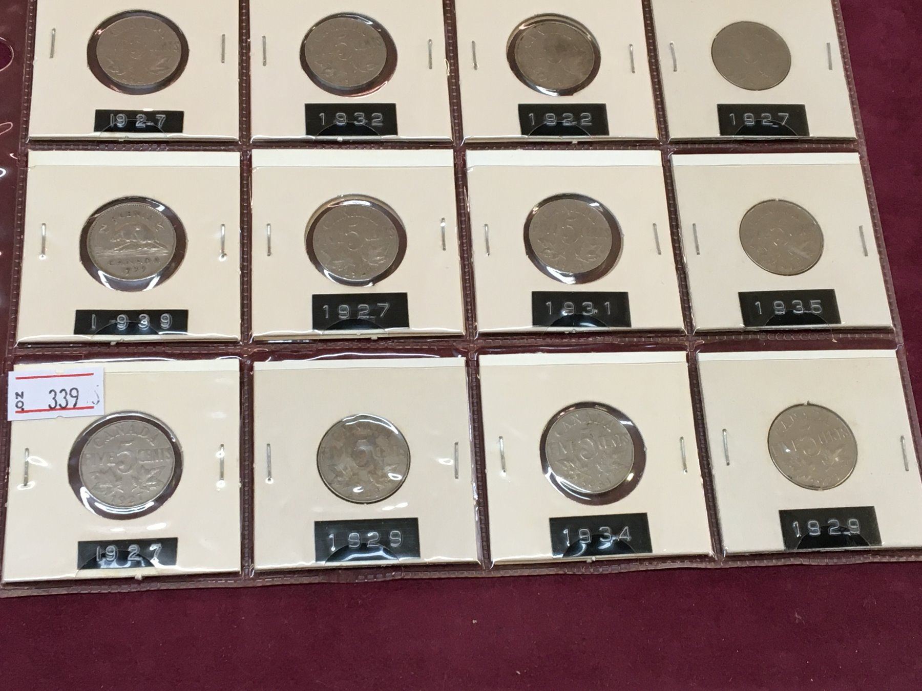 PAGE LOT OF 20 CANADIAN NICKELS BETWEEN 1922 AND 1939