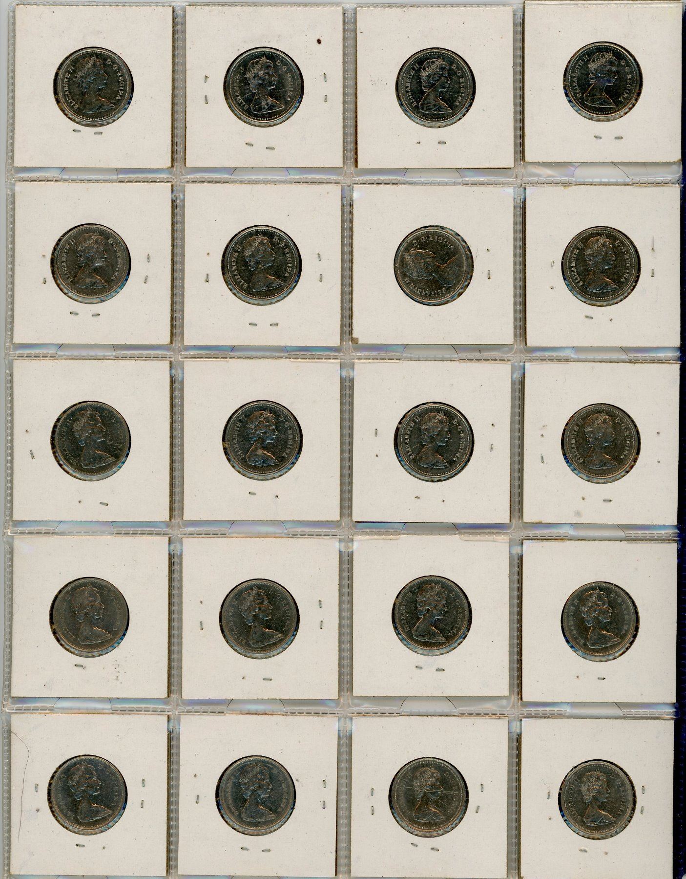 PAGE LOT OF 24- TWENTY FIVE CENT COINS (CANADA) *VARIOUS YEARS FROM 1967-2016*