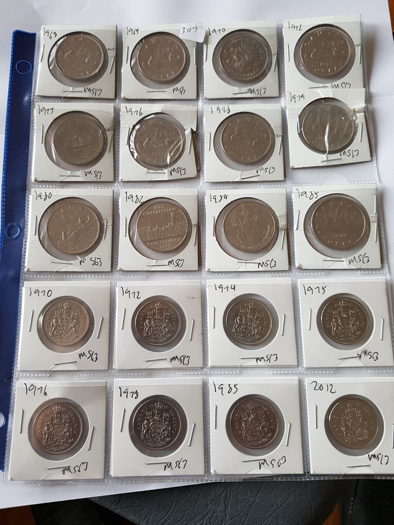PAGE OF 12 DOOLAR COINS & 8 $0.50