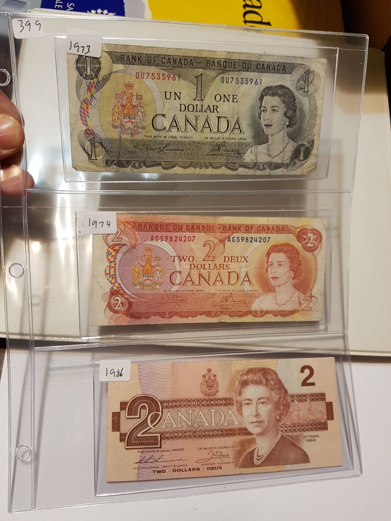 PAGE OF 1973 $1.00, 1974 & 1986 $2.00 BILLS