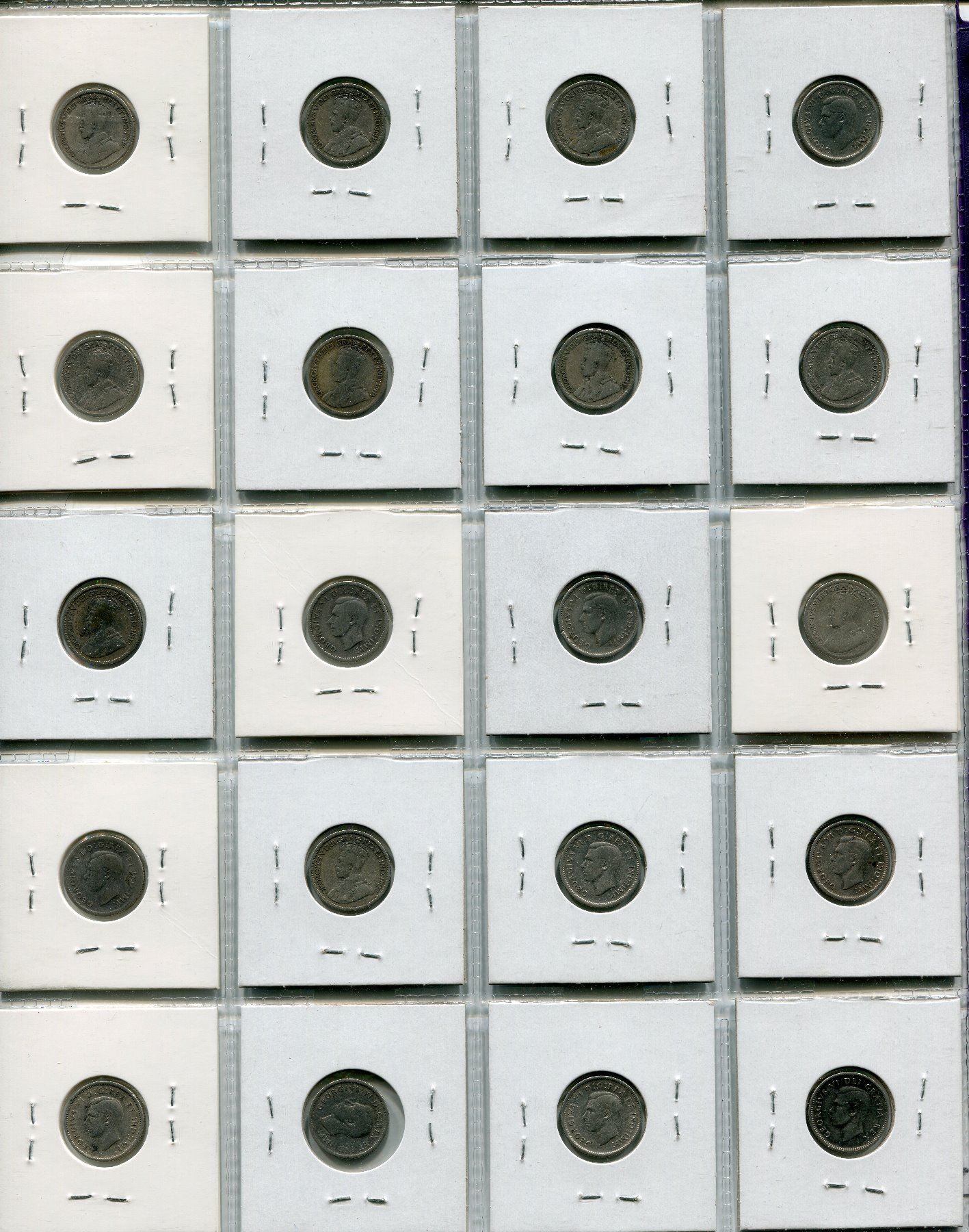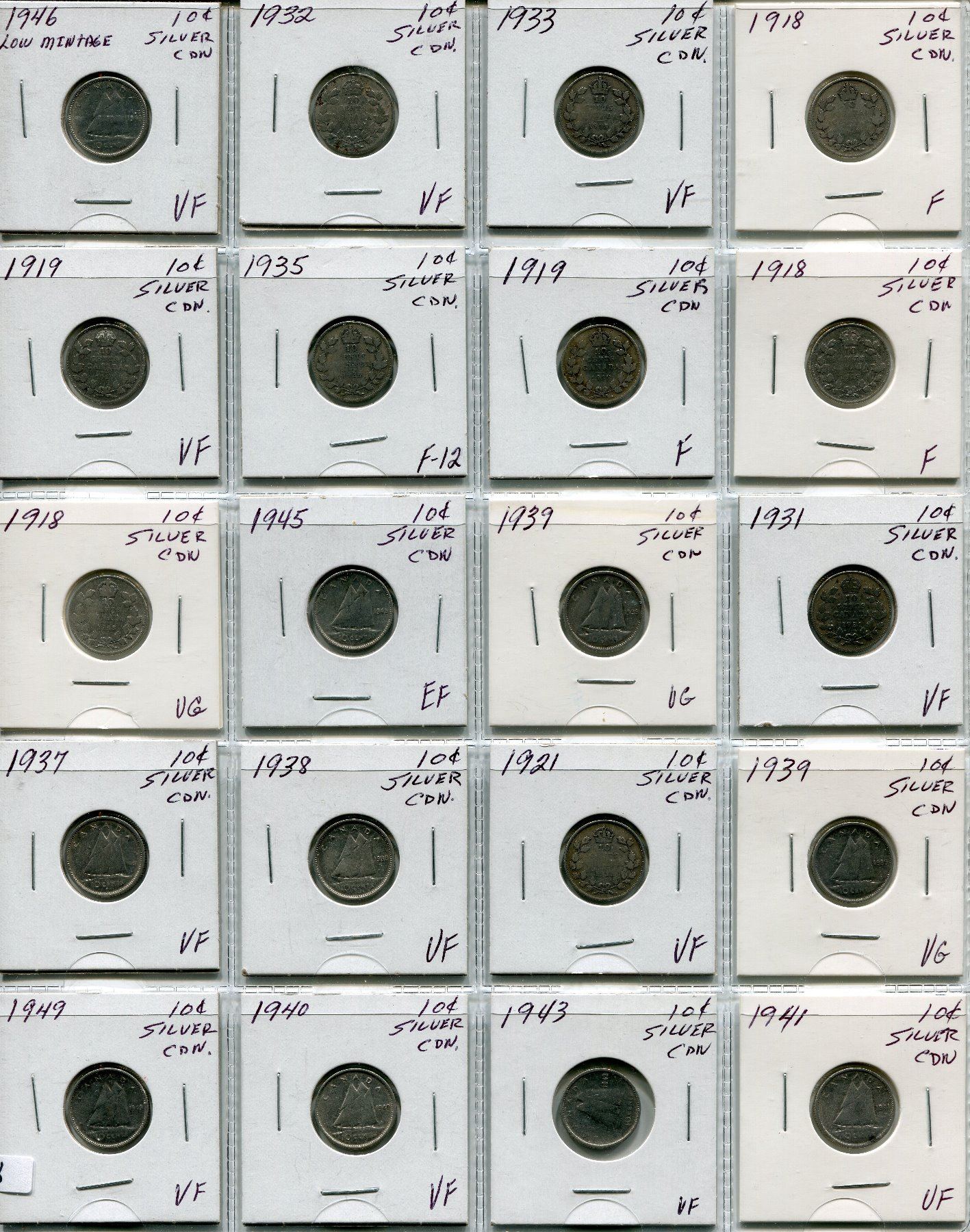 PAGE OF 20 CNDN SILVER DIMES 1918 - 1949