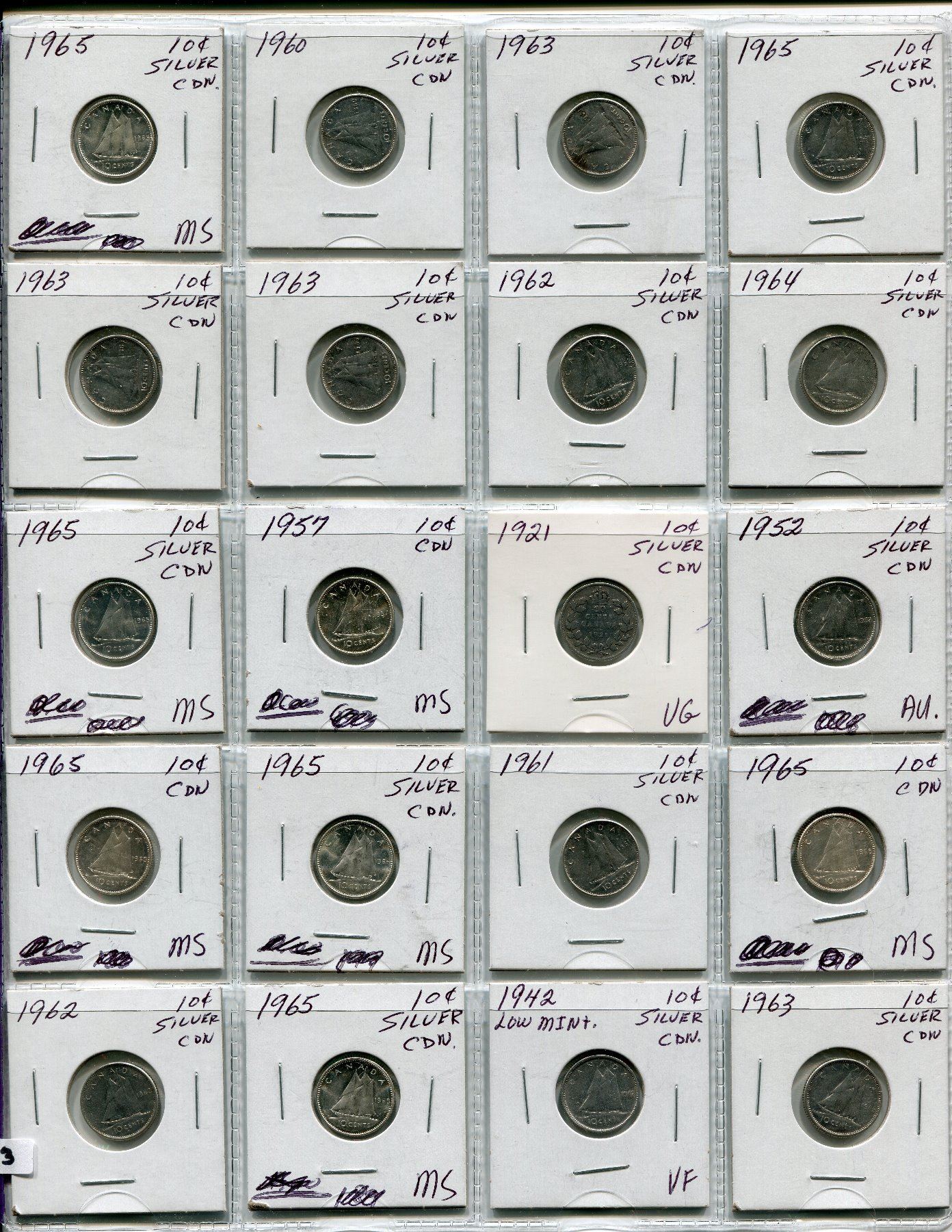 PAGE OF 20 CNDN SILVER DIMES 1921-1965