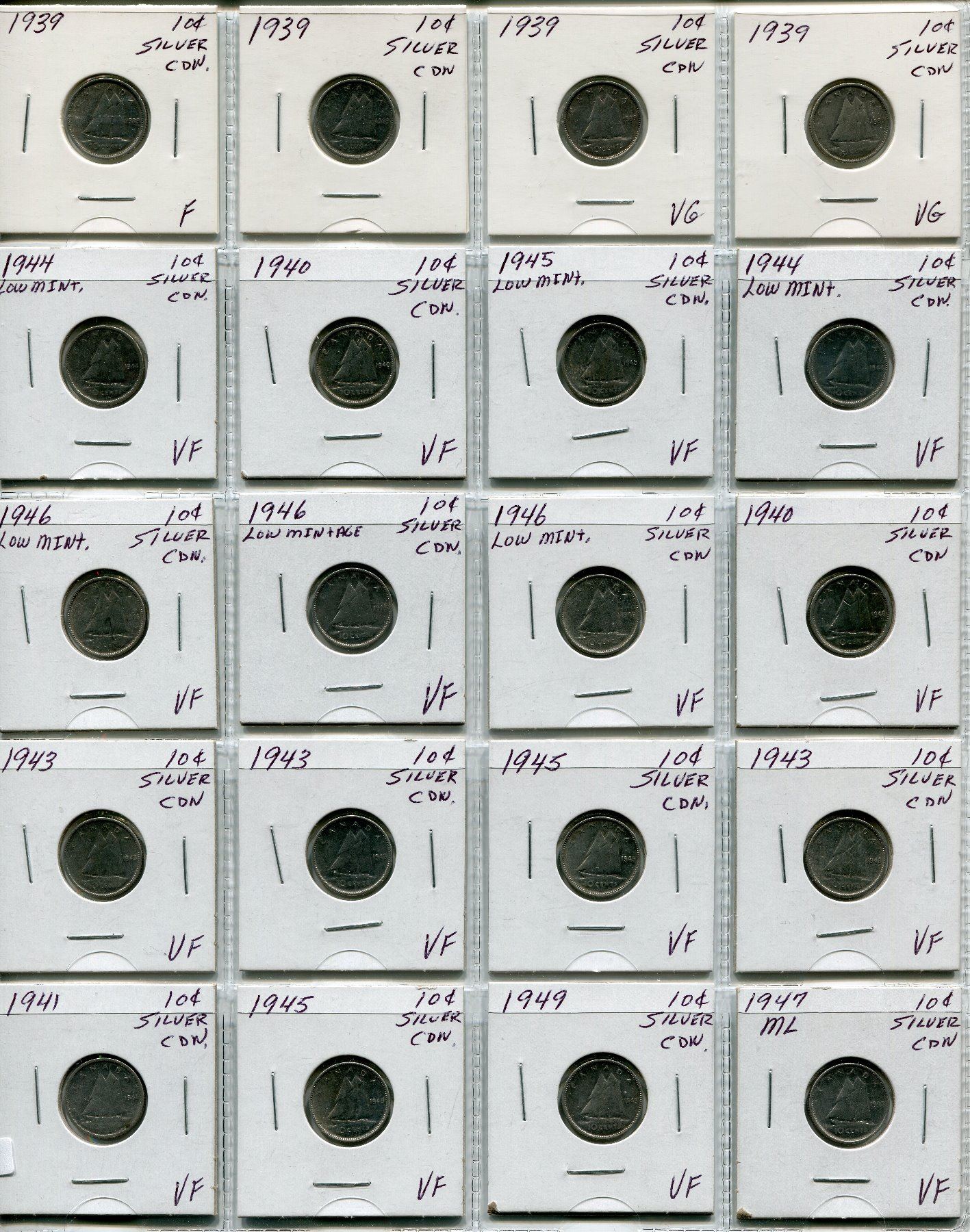 PAGE OF 20 CNDN SILVER DIMES 1939 - 1945