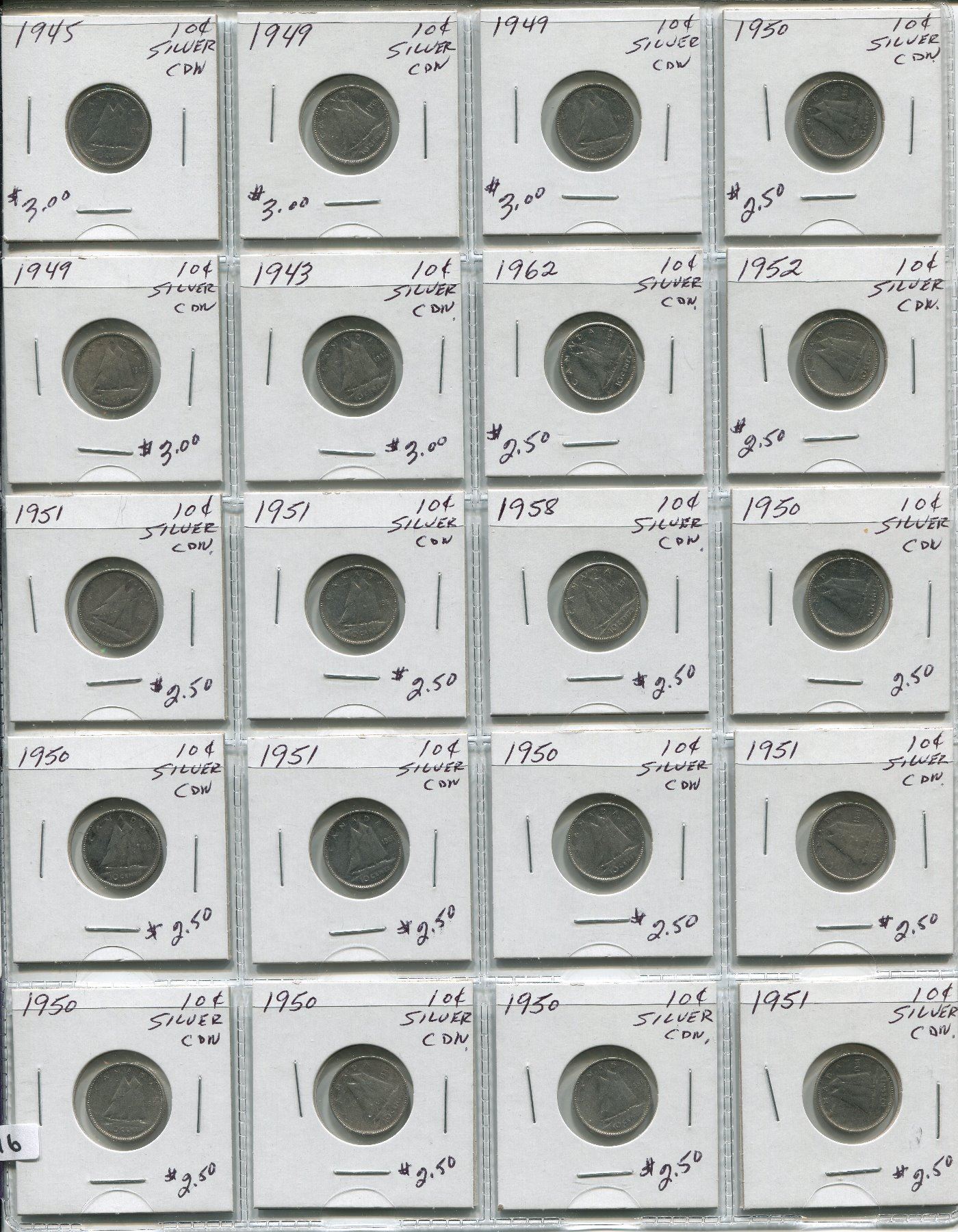 PAGE OF 20 CNDN SILVER DIMES 1945 - 1958