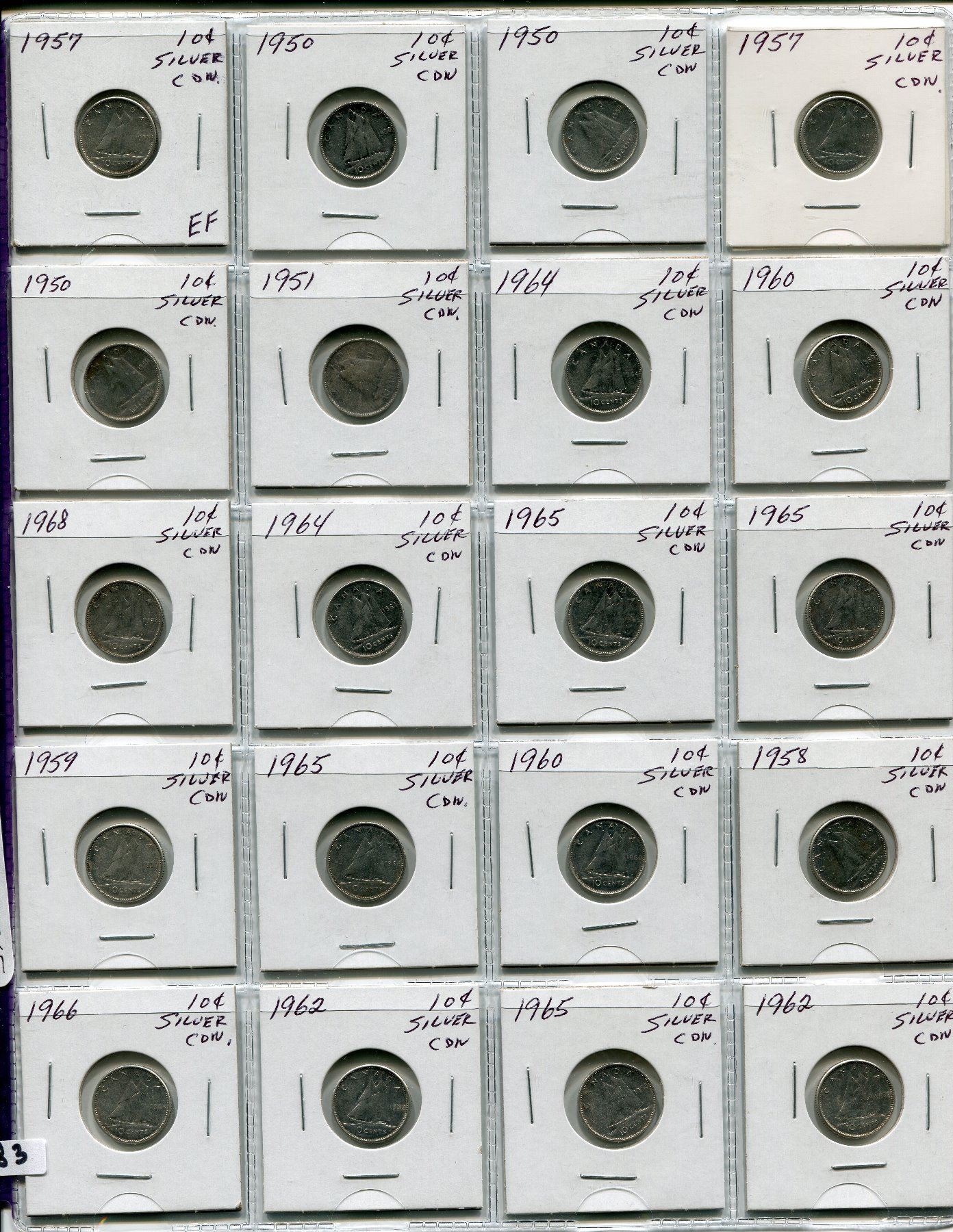 PAGE OF 20 CNDN SILVER DIMES1950-1968
