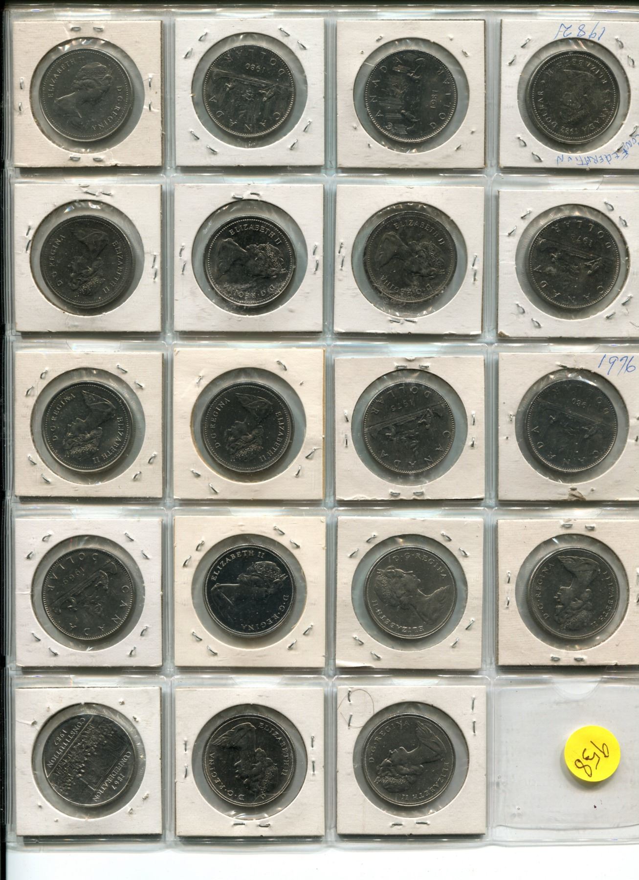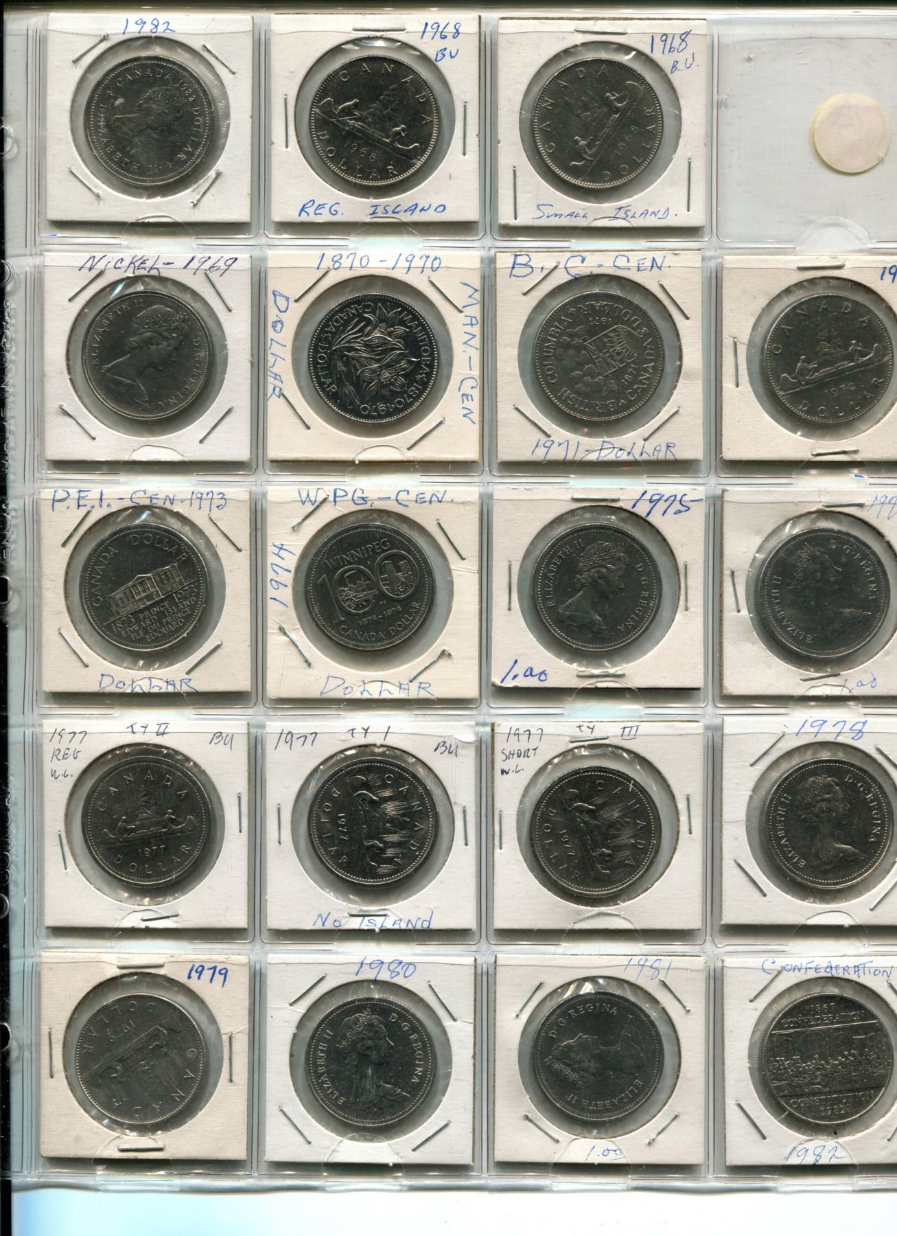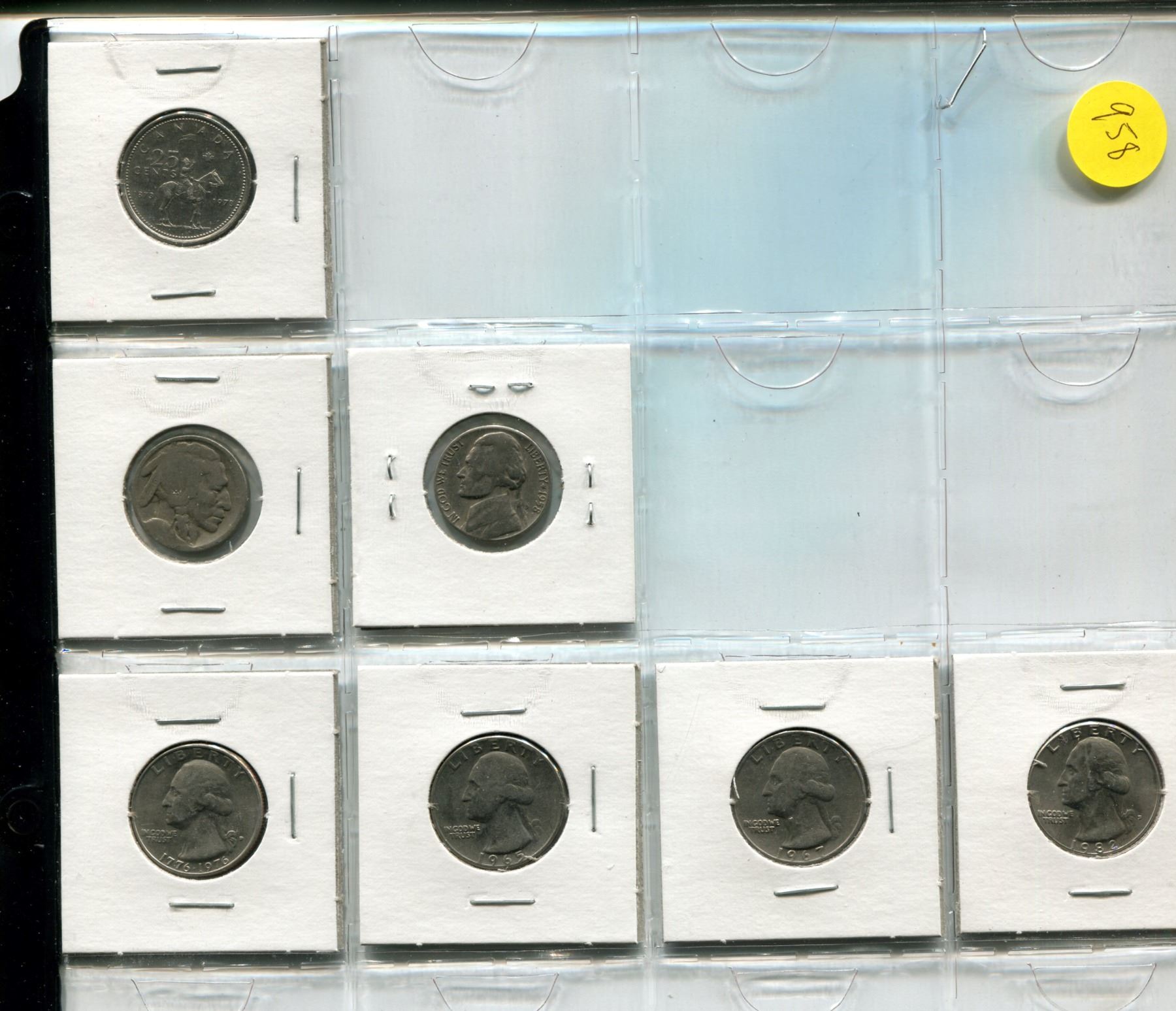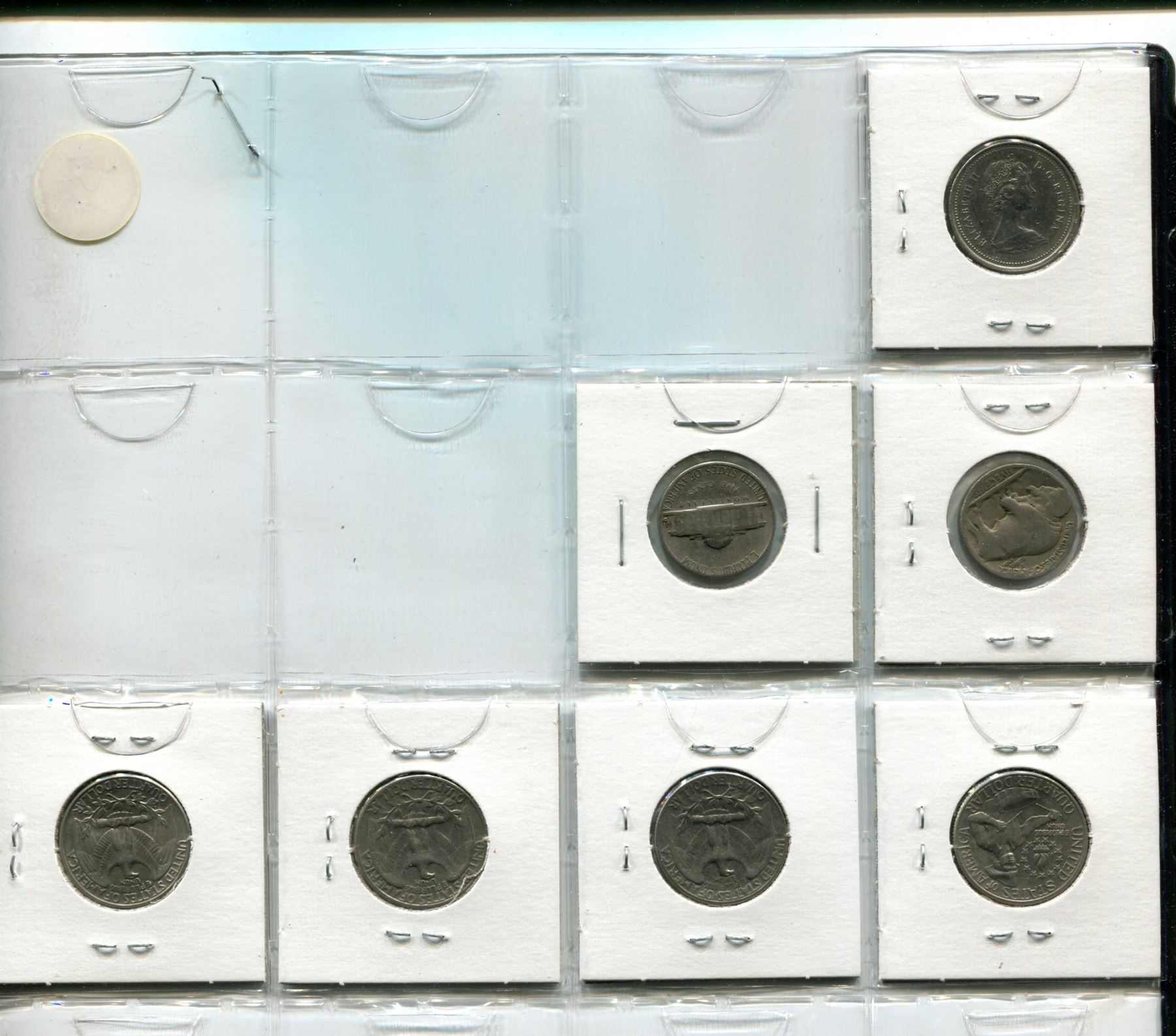 Page of Canadian Silver Dollars 1968-1982, 1973 Canadian Quarter, American Quarters & Buffalo Nickel
