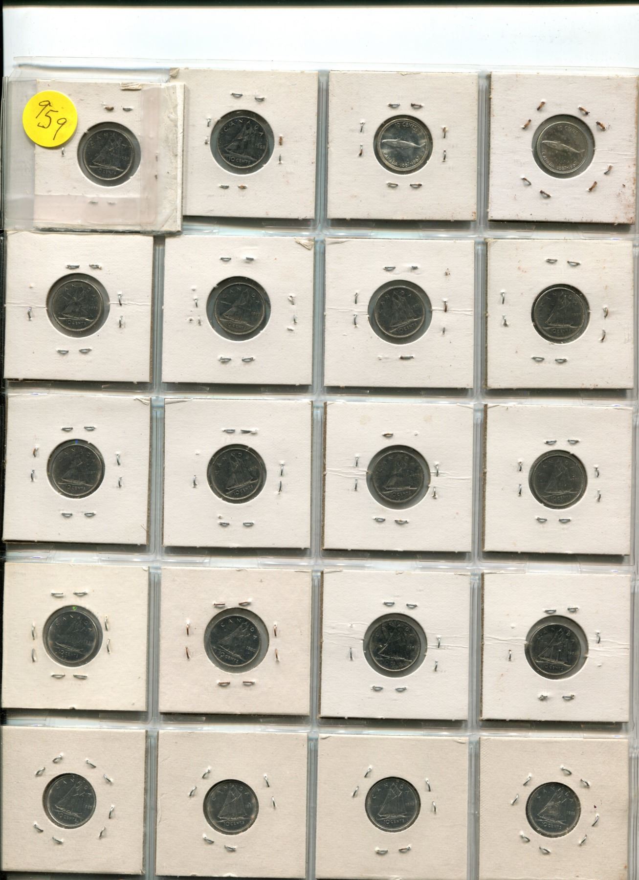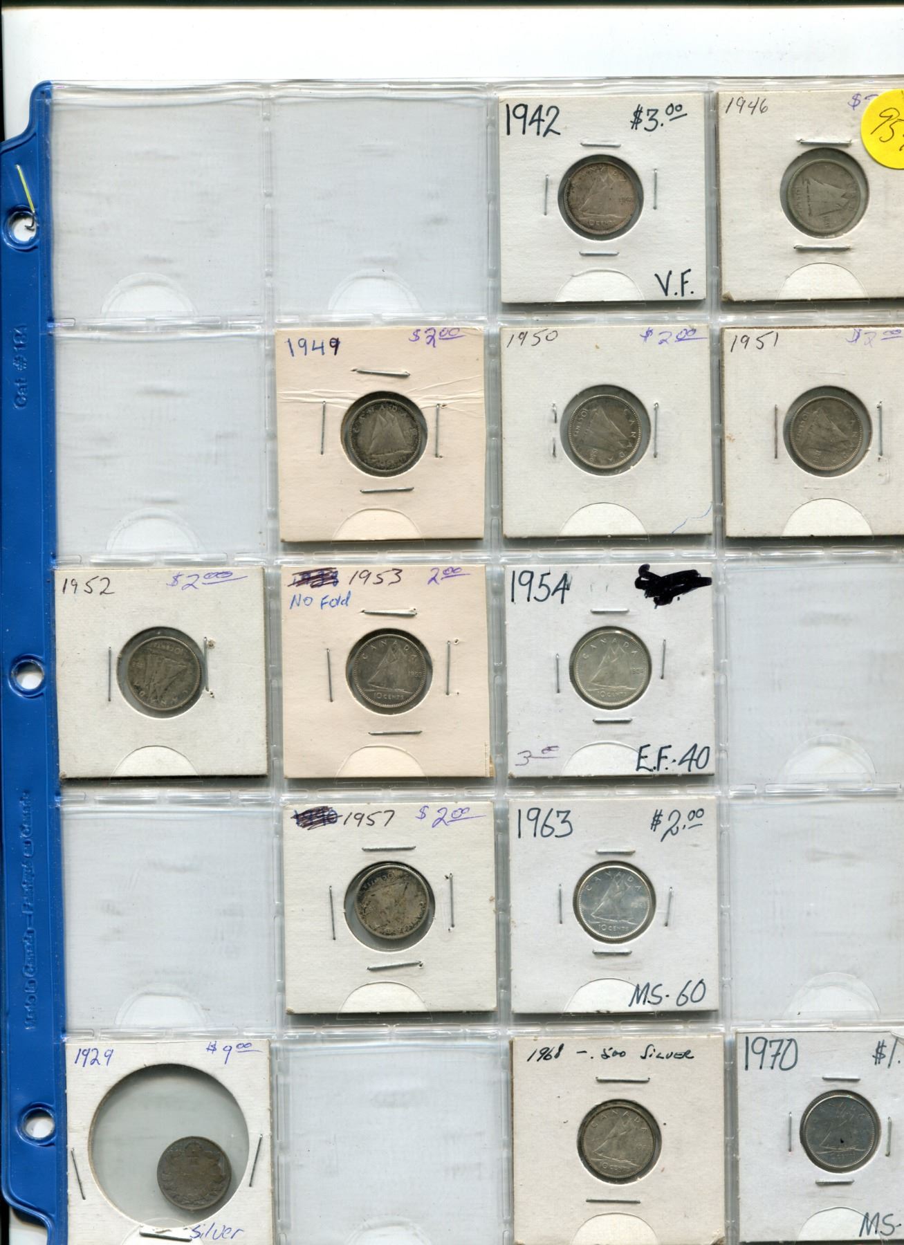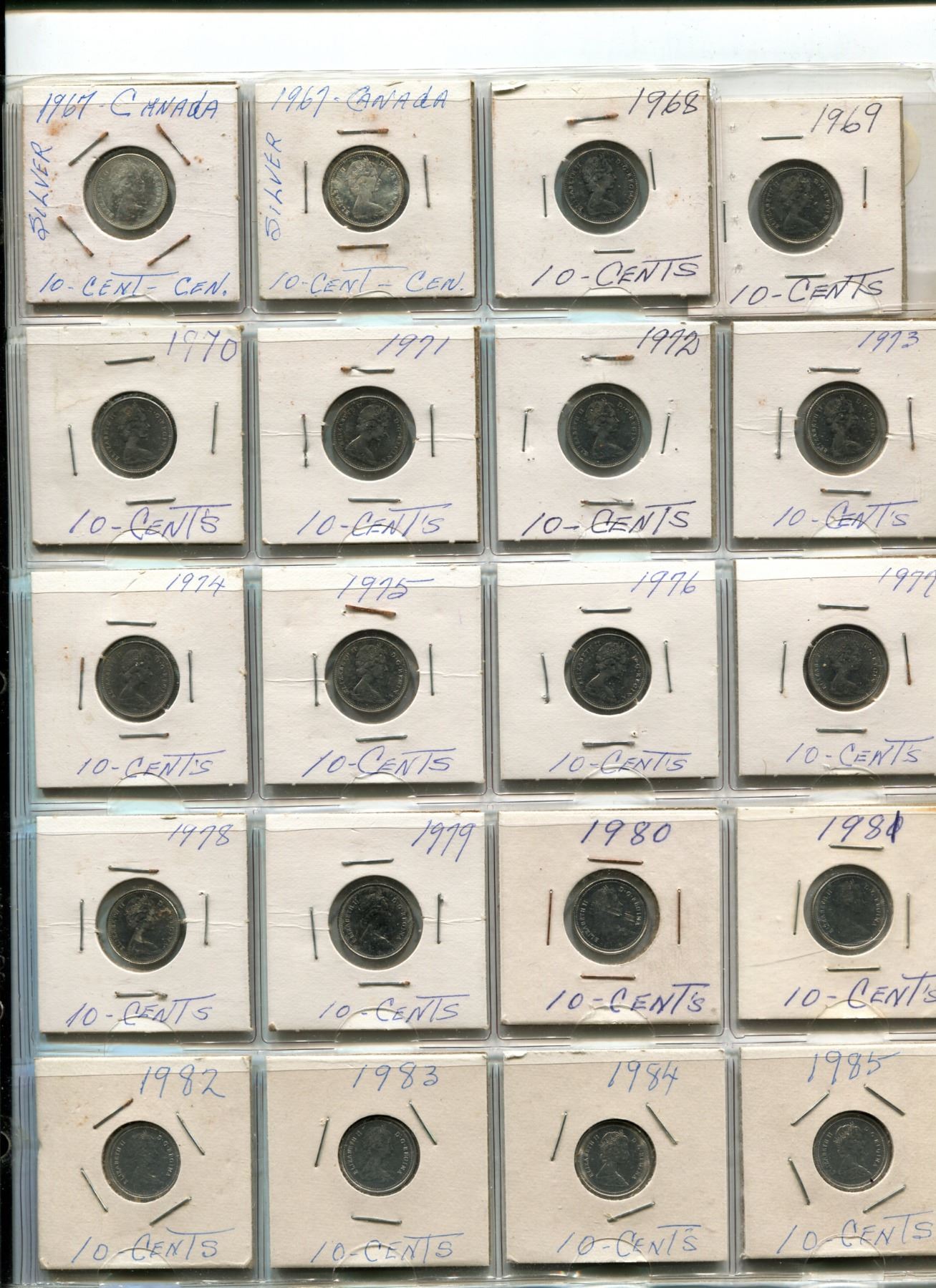 Page of Canadian Silver Ten Cent Coins 1942-1970, 1967-1985