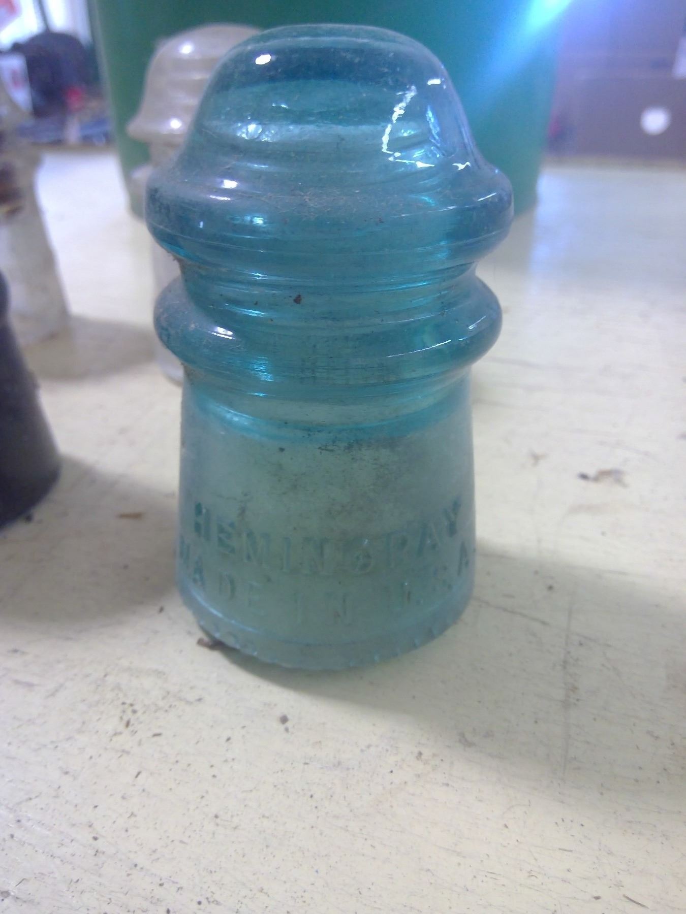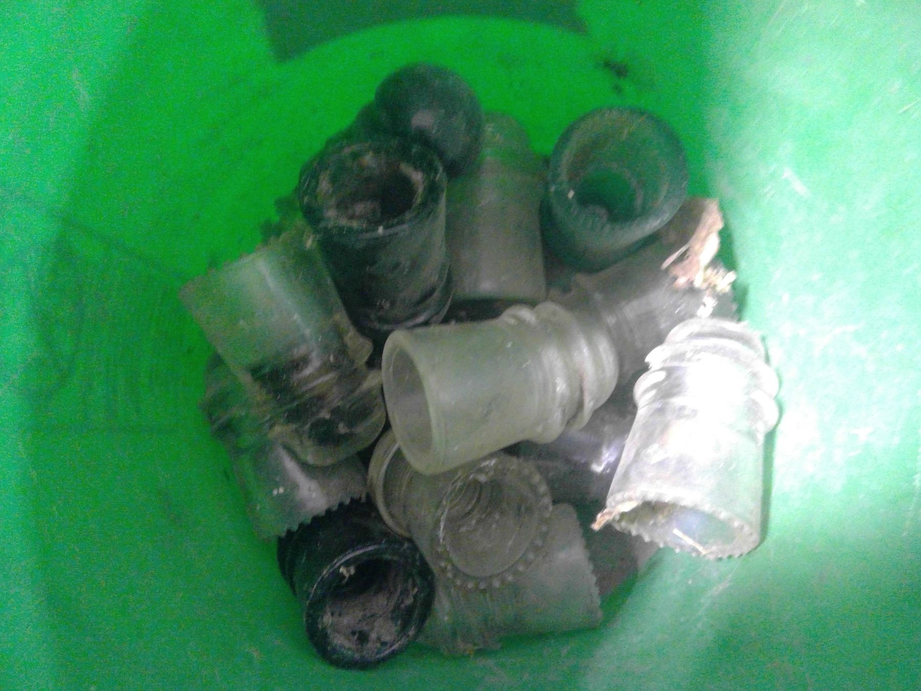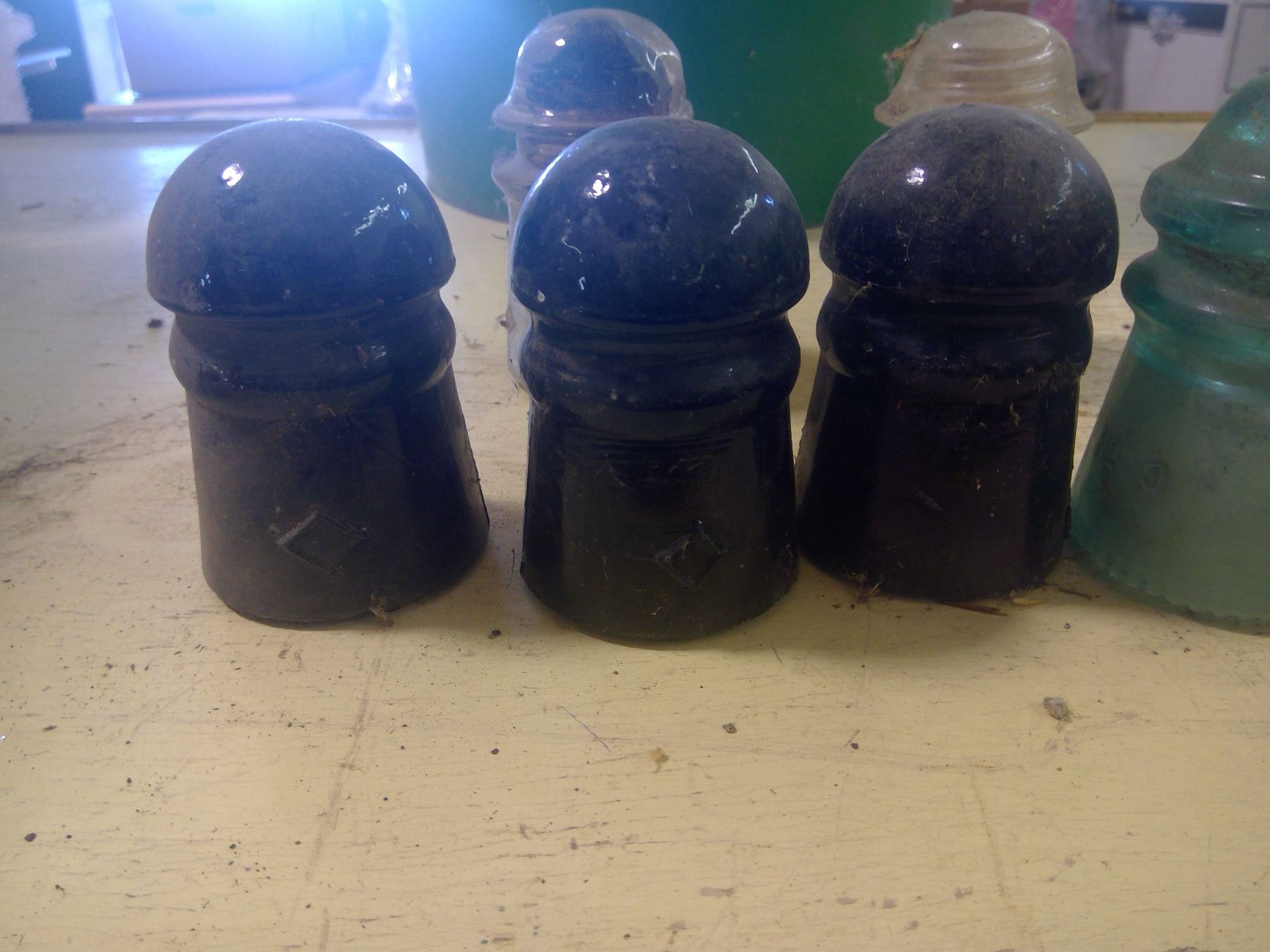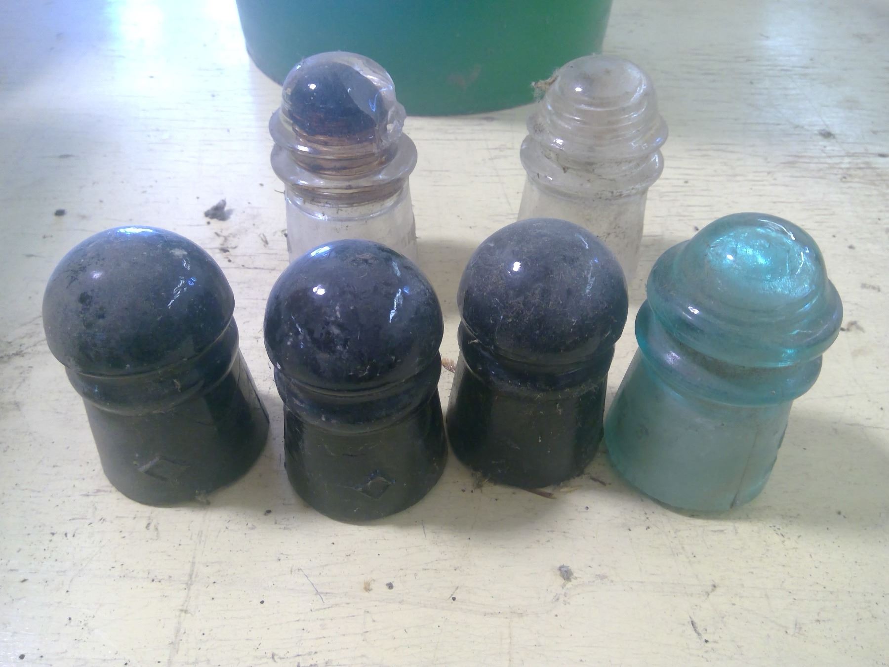 PAIL W/ INSULATORS (SOME CRACKED)
