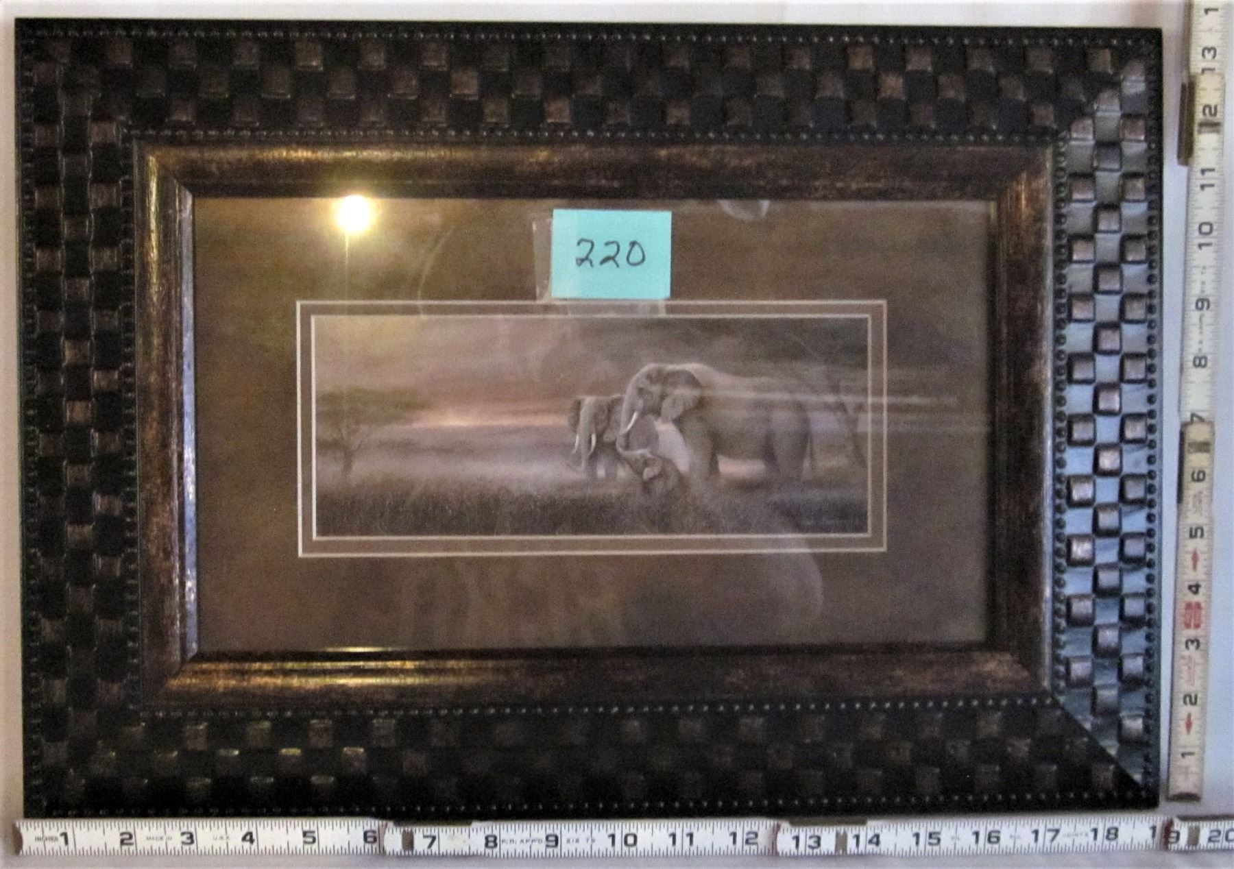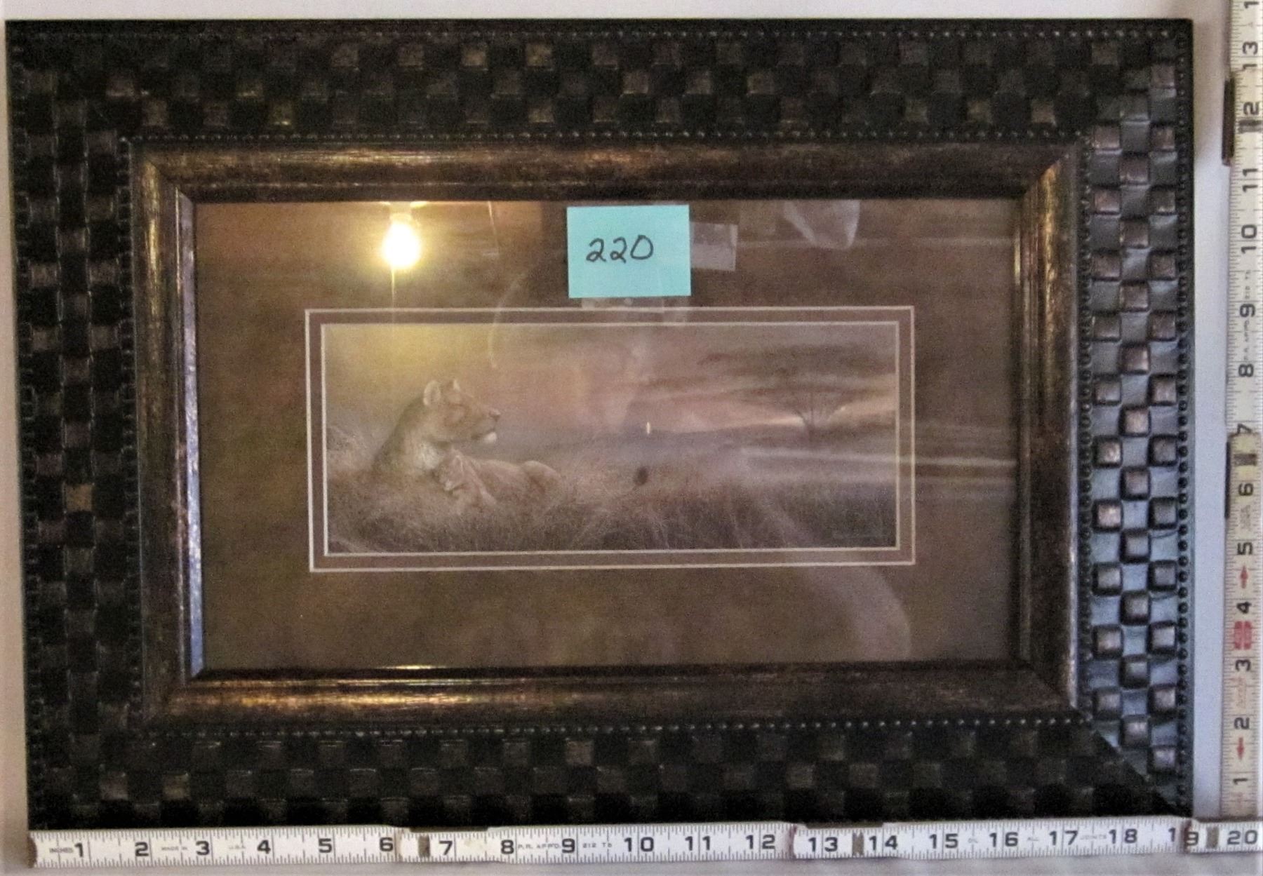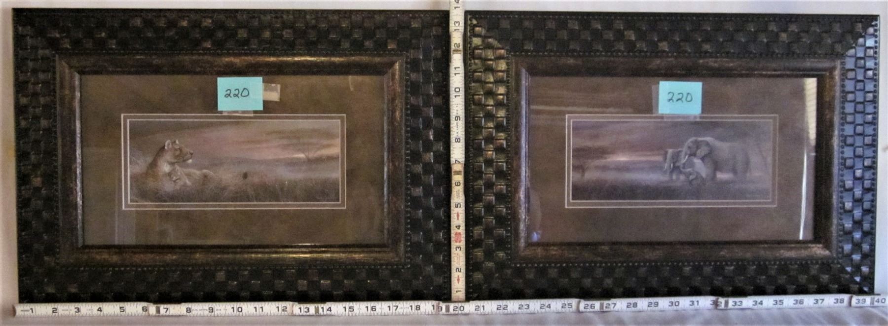 PAIR 10"x4" FRAMED/MATTED "AFRICAN" LION AND ELEPHANT PRINTS