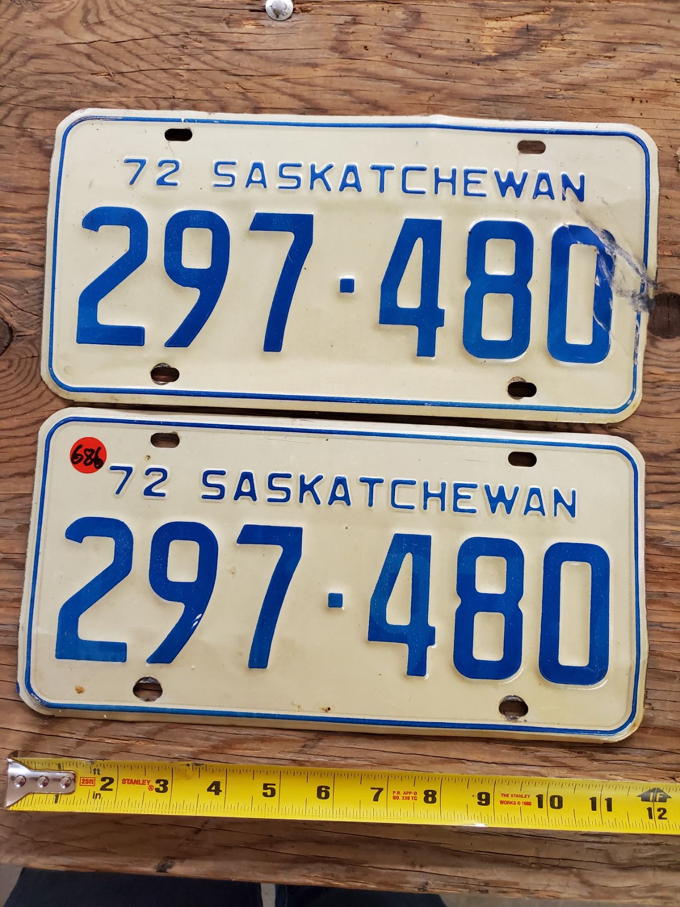 PAIR 1972 SASKATCHEWAN LICENSE PLATES