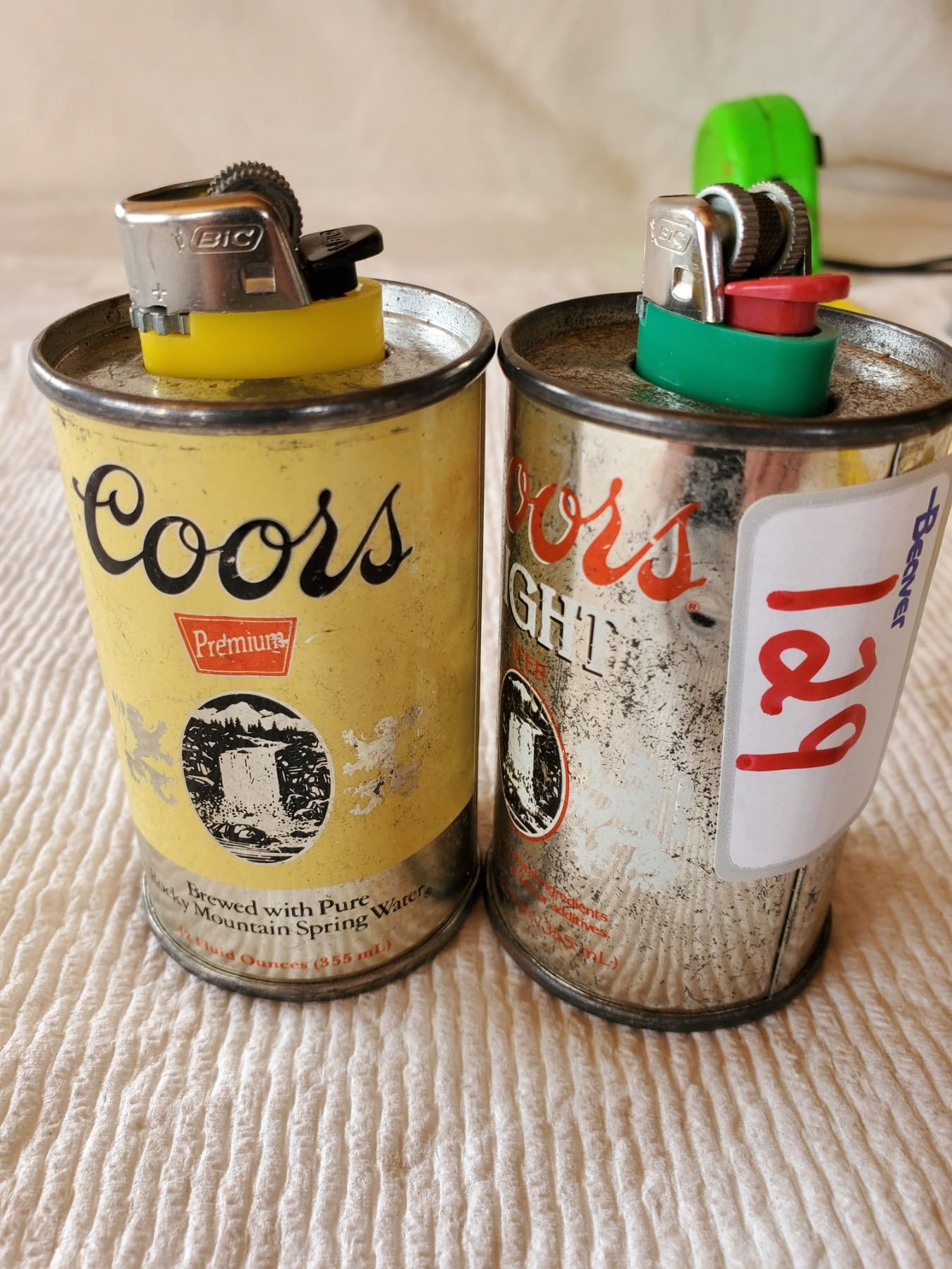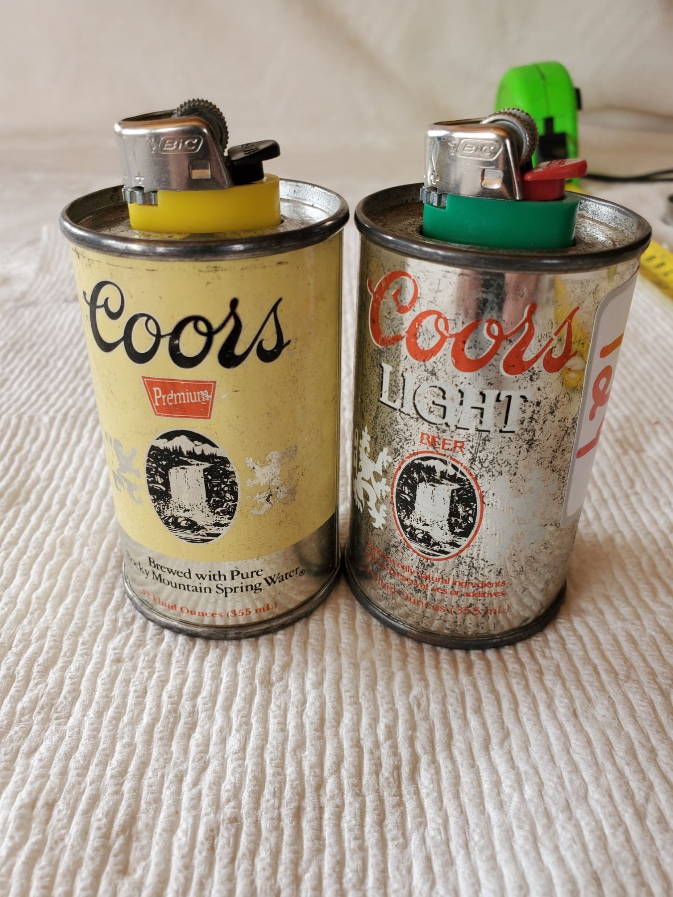 PAIR OF MINIATURE BAR ROOM BEER CAN LIGHTER HOLDERS- COORS & COORS LIGHT