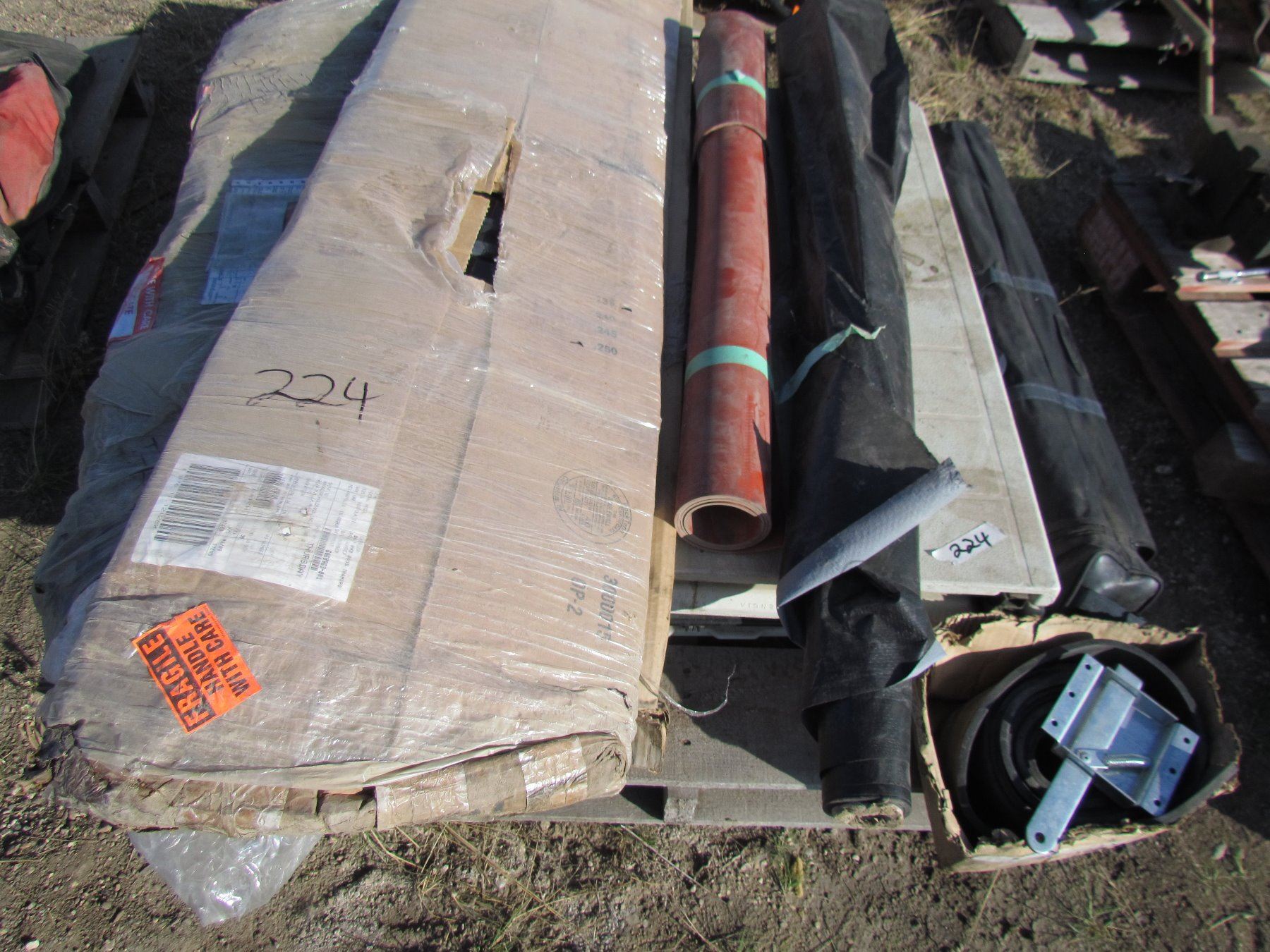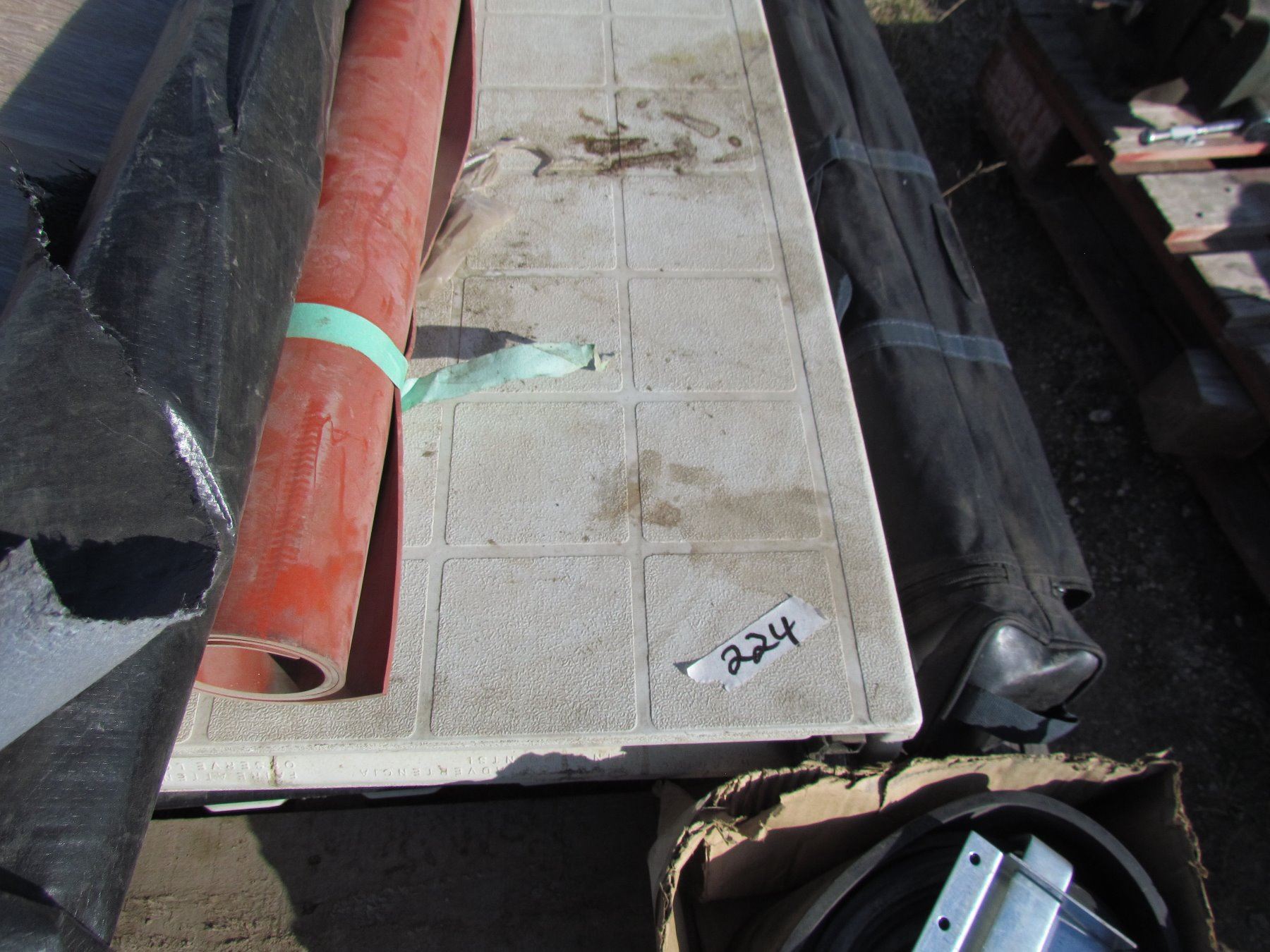PALLET CONTAINING, 2 FOLDING TABLES, REAR WINDOWS, RUBBER ON ROLL