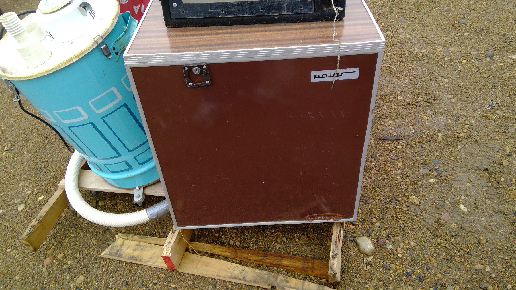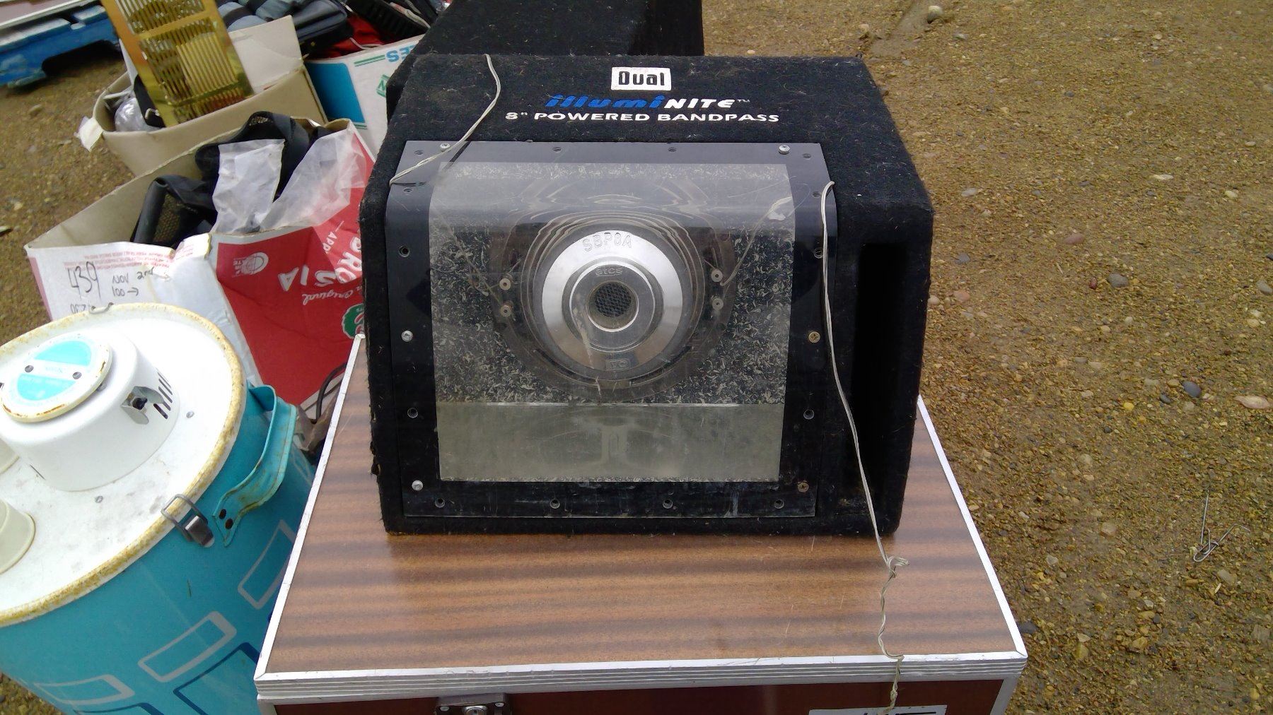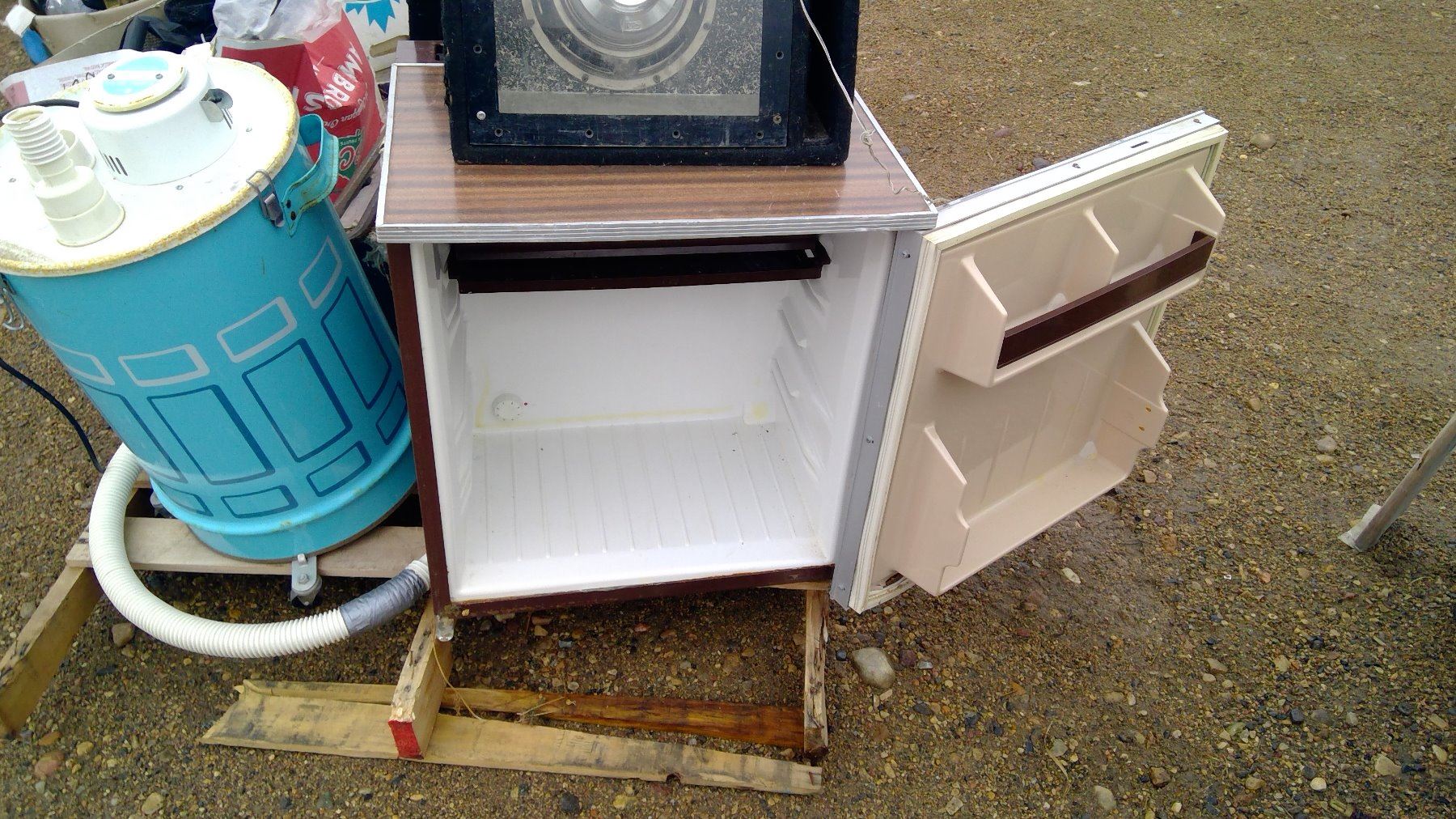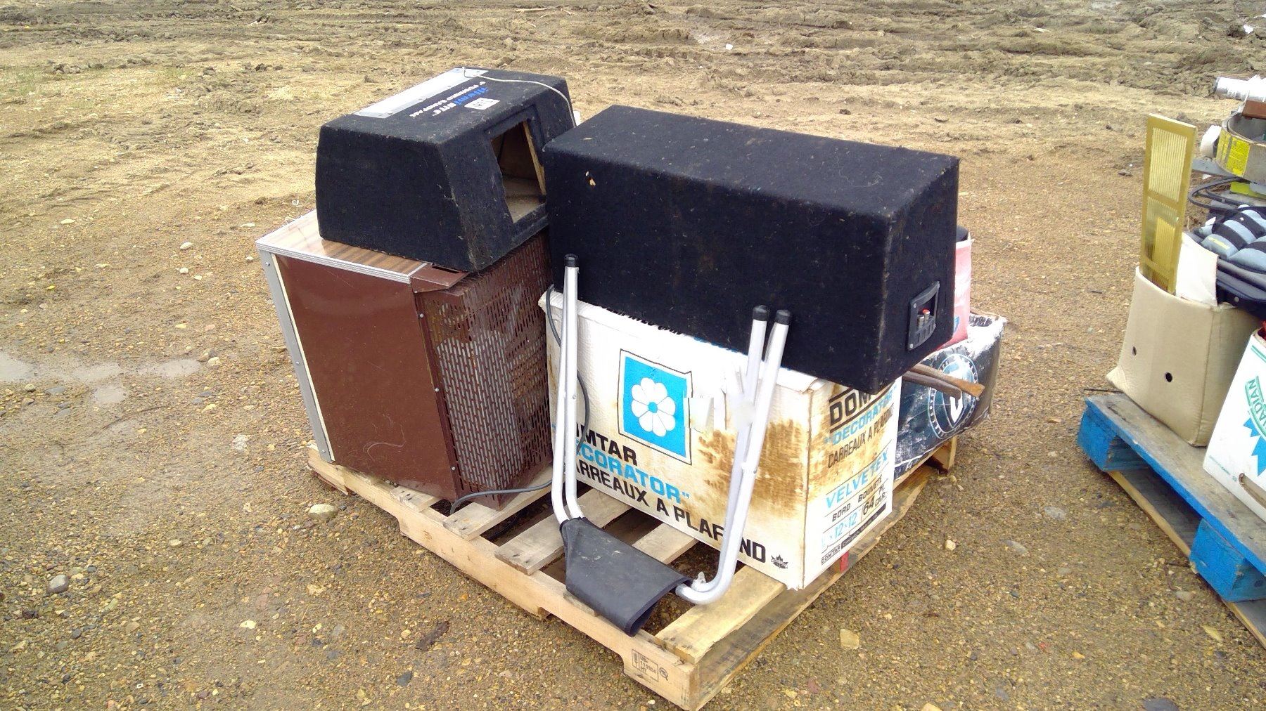 PALLET OF ASSORTED ITEMS - SPEAKER BOXES, MINI FRIDGE, ETC.