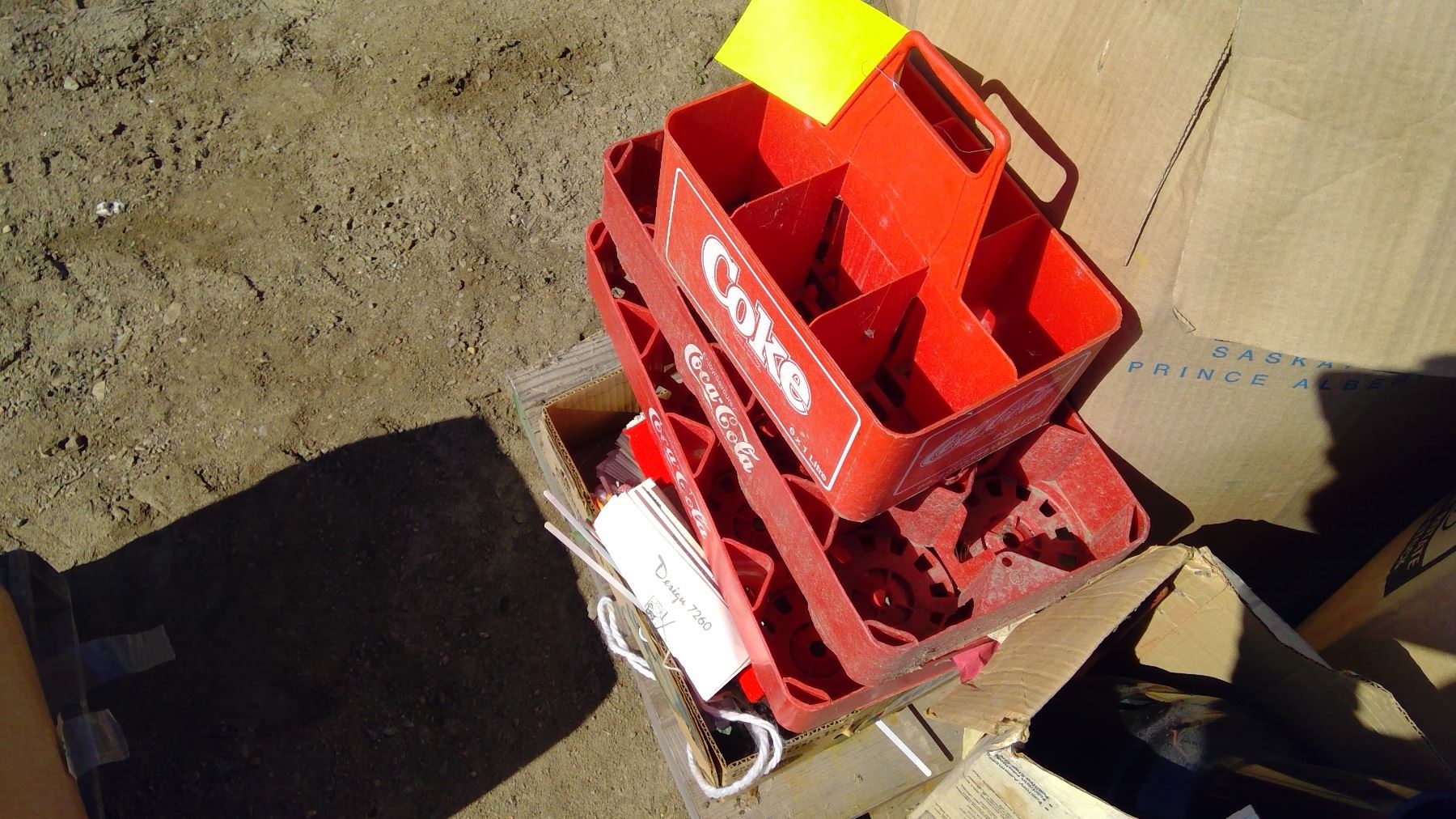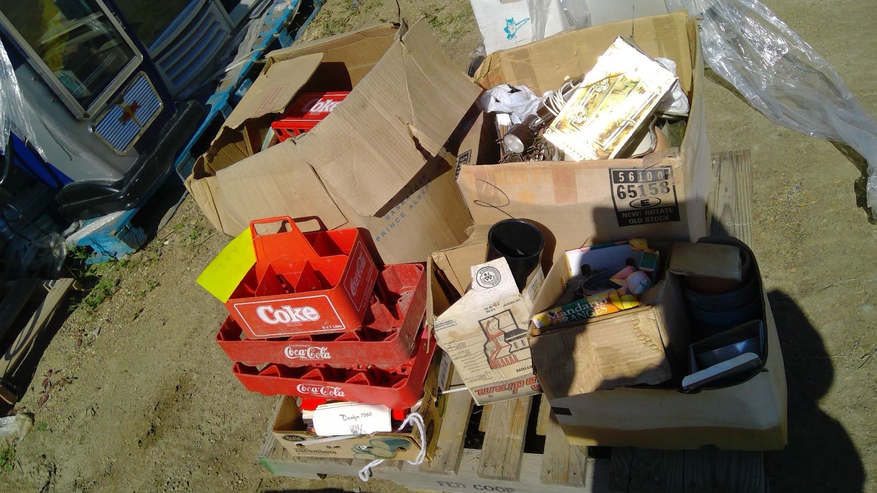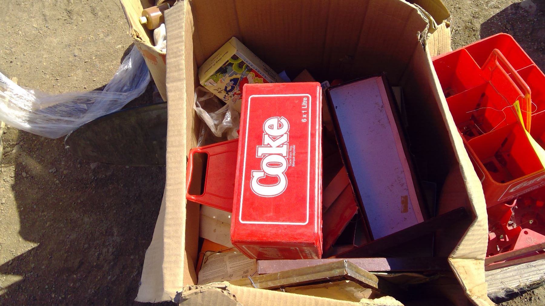 PALLET OF COKE CRATES, DESK LAMPS, ECT.